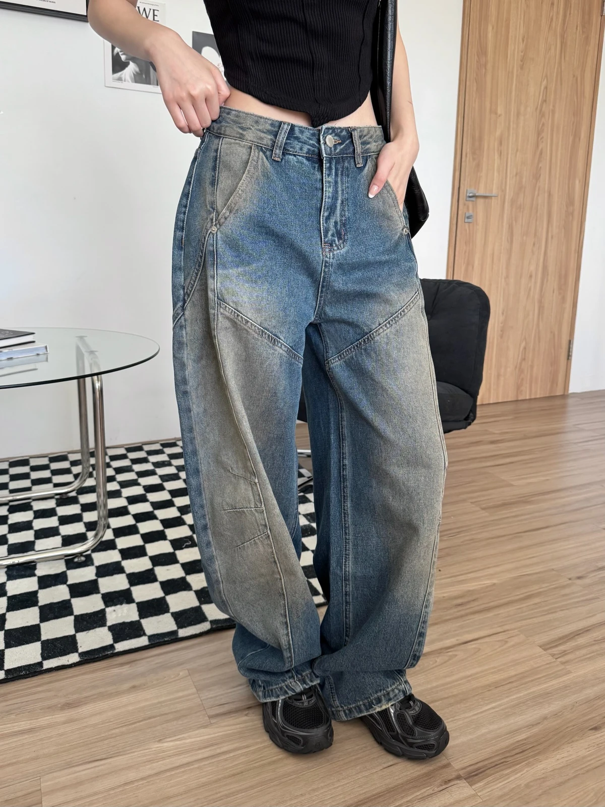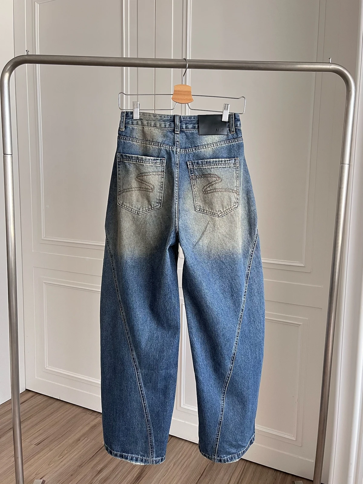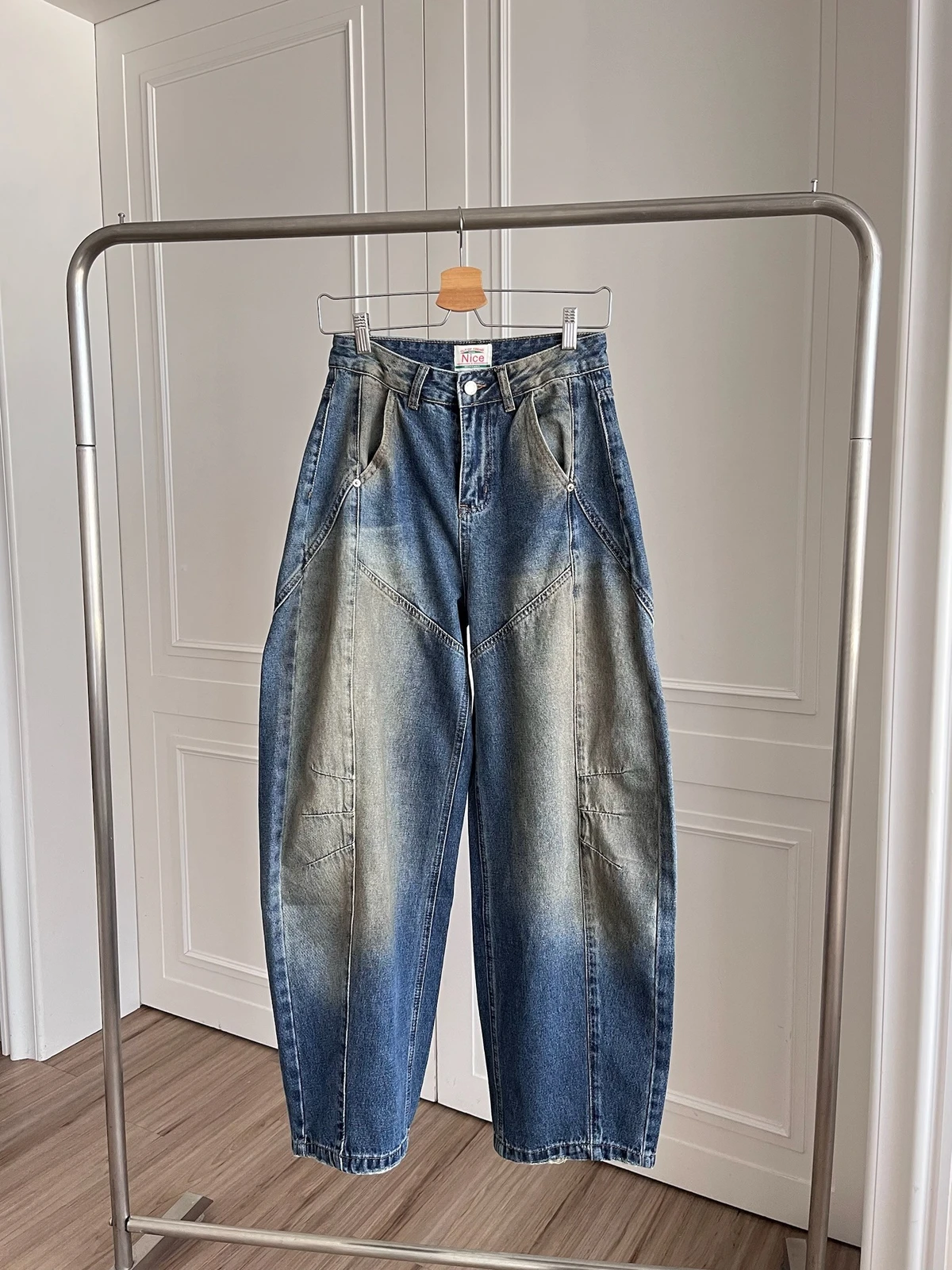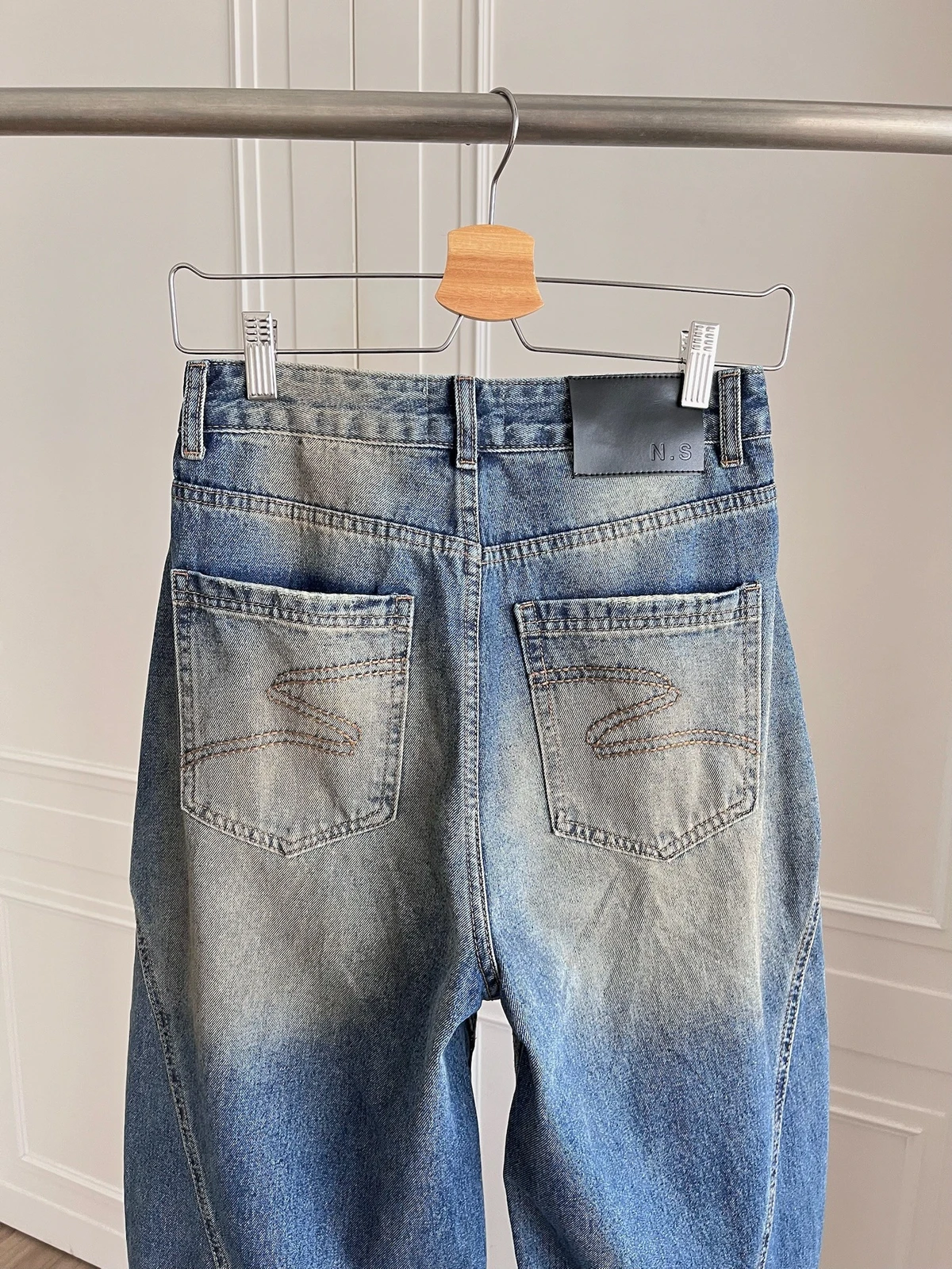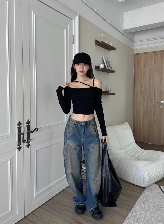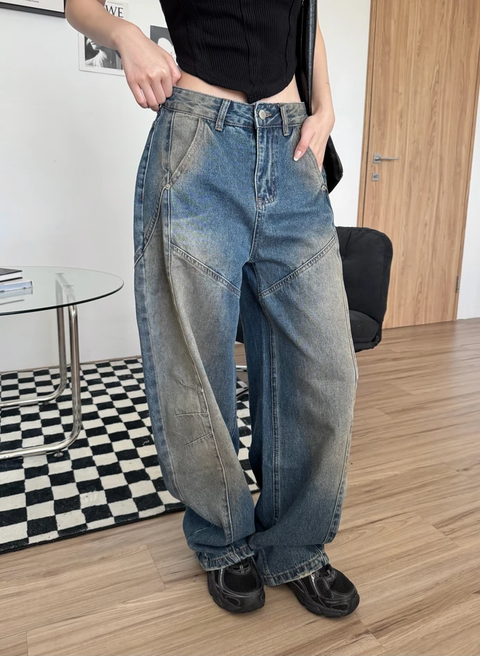 車線刷色微彎刀牛仔褲
