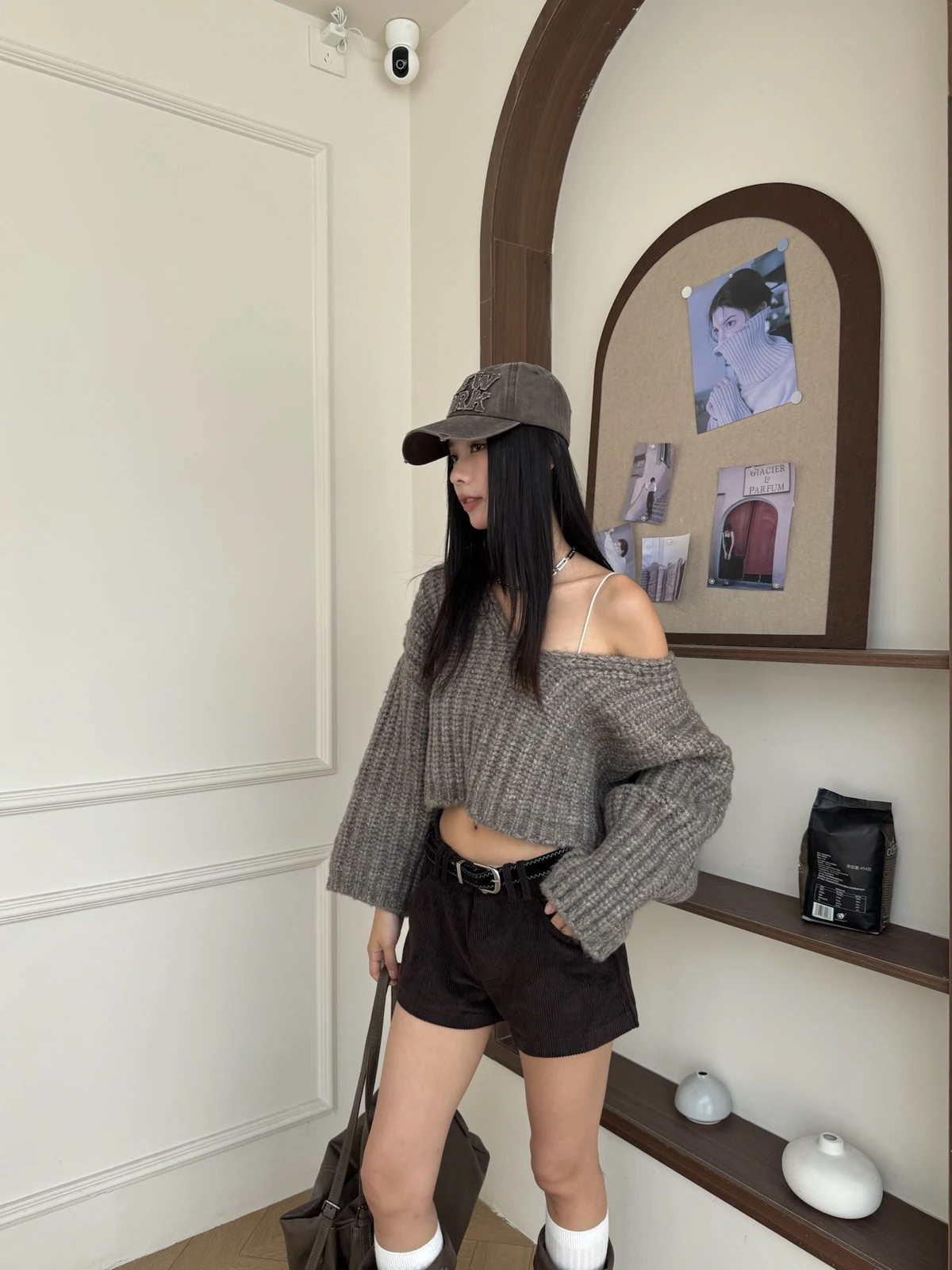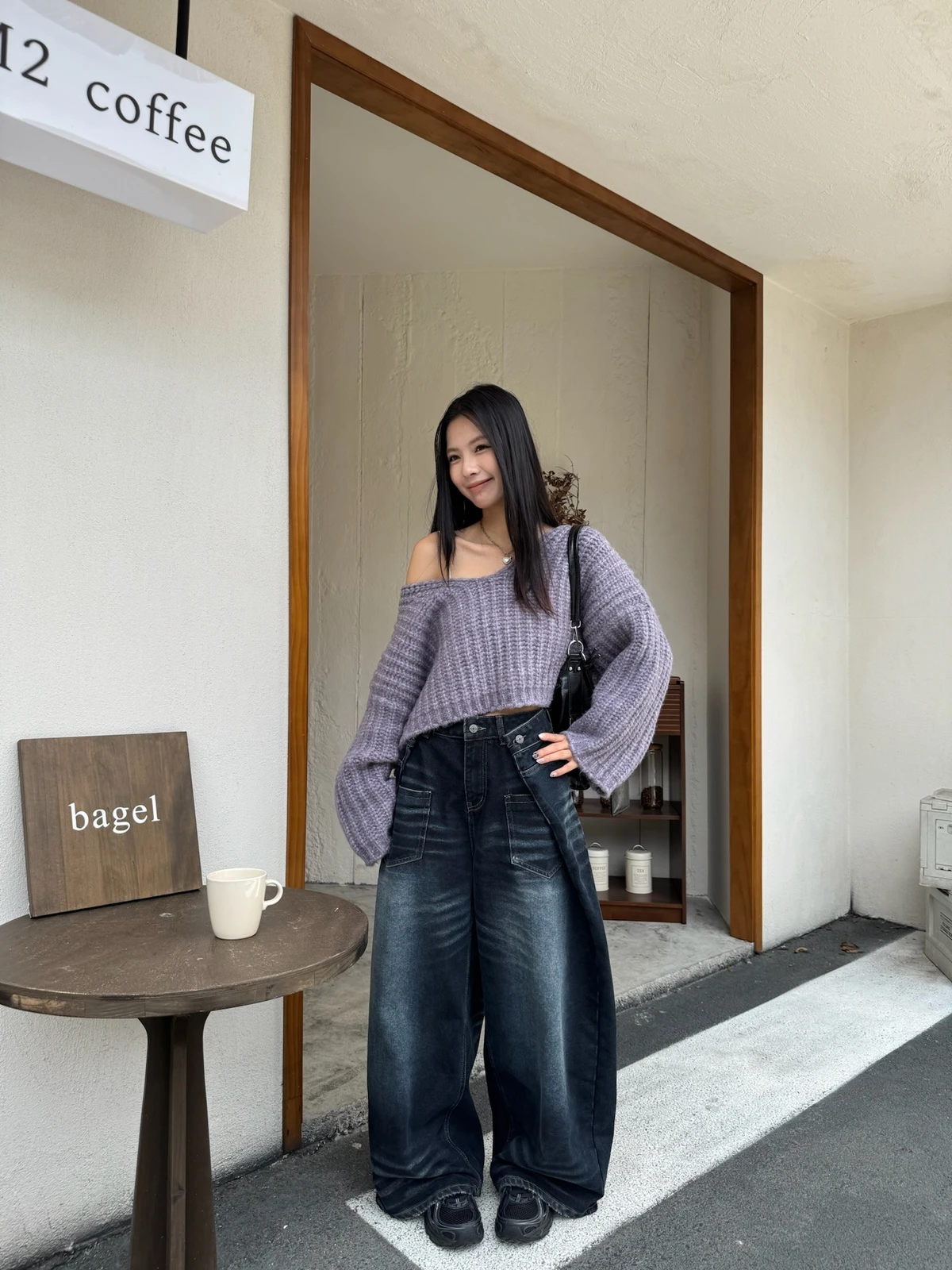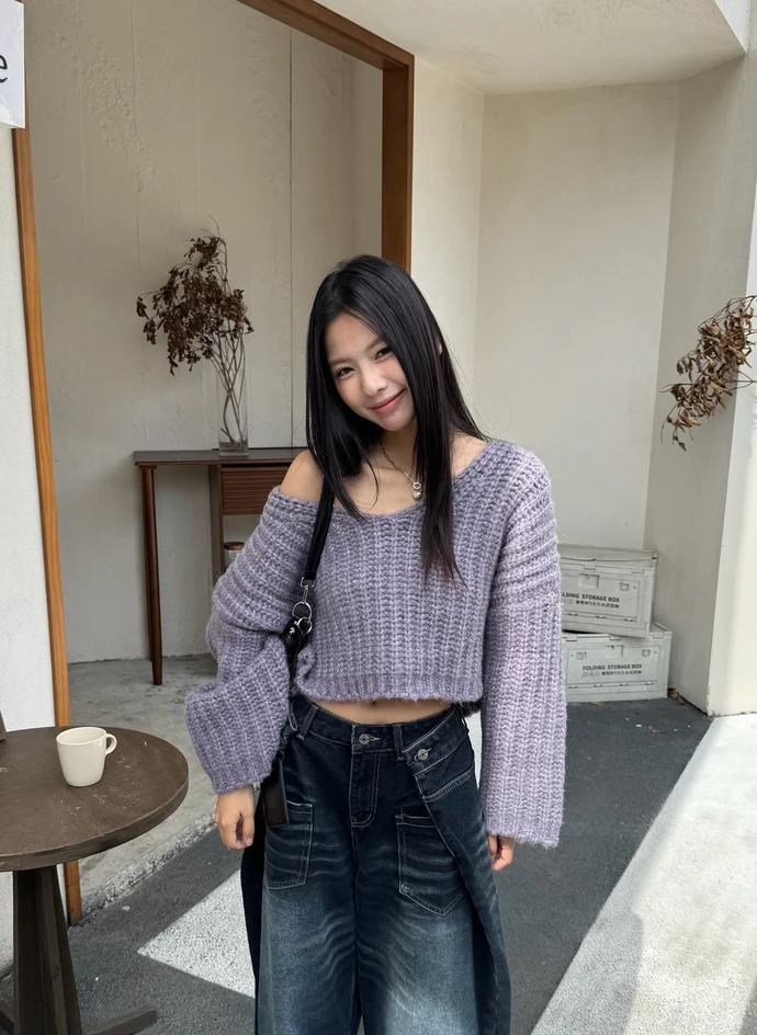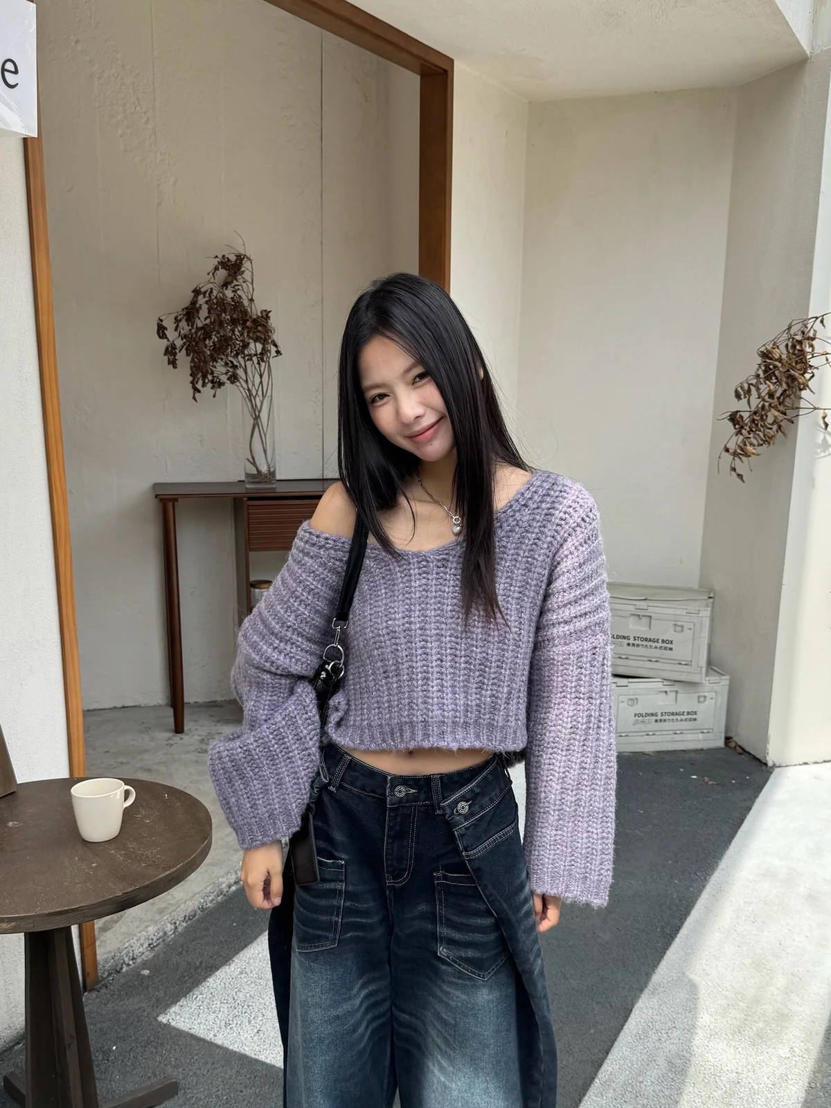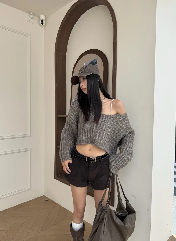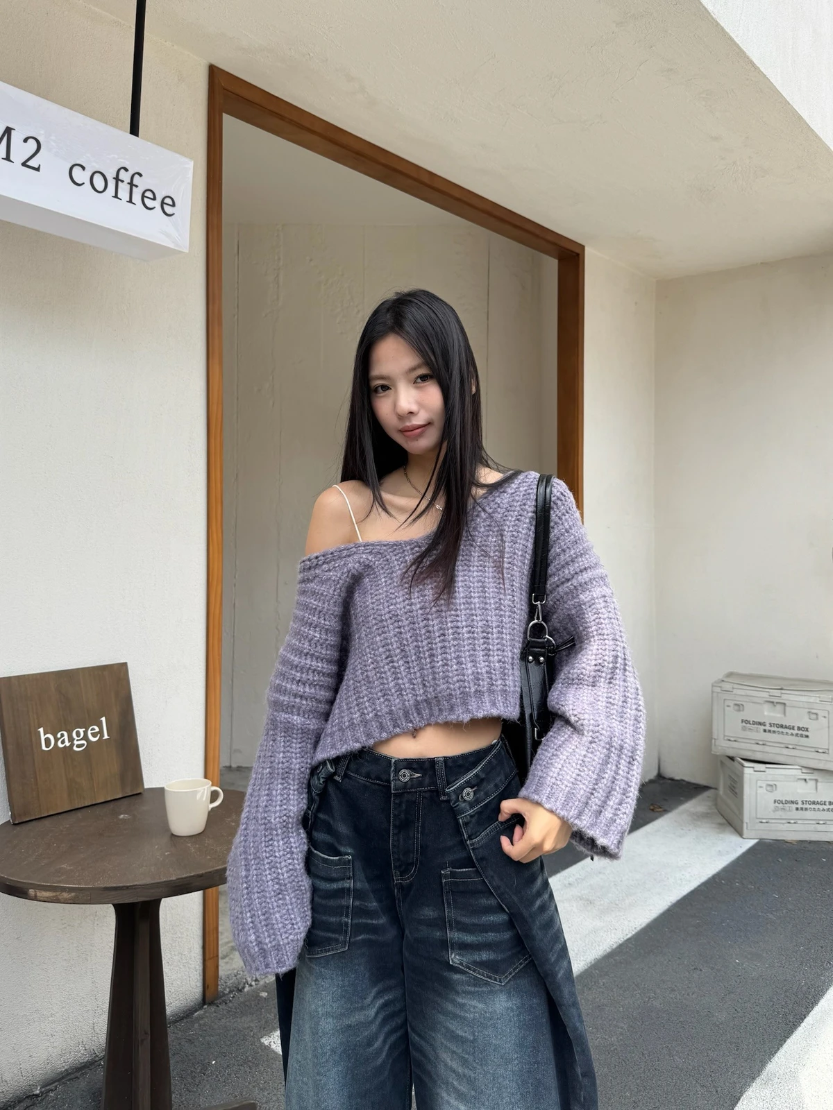 自留款推薦!短版粗針織斜肩毛衣/2colors