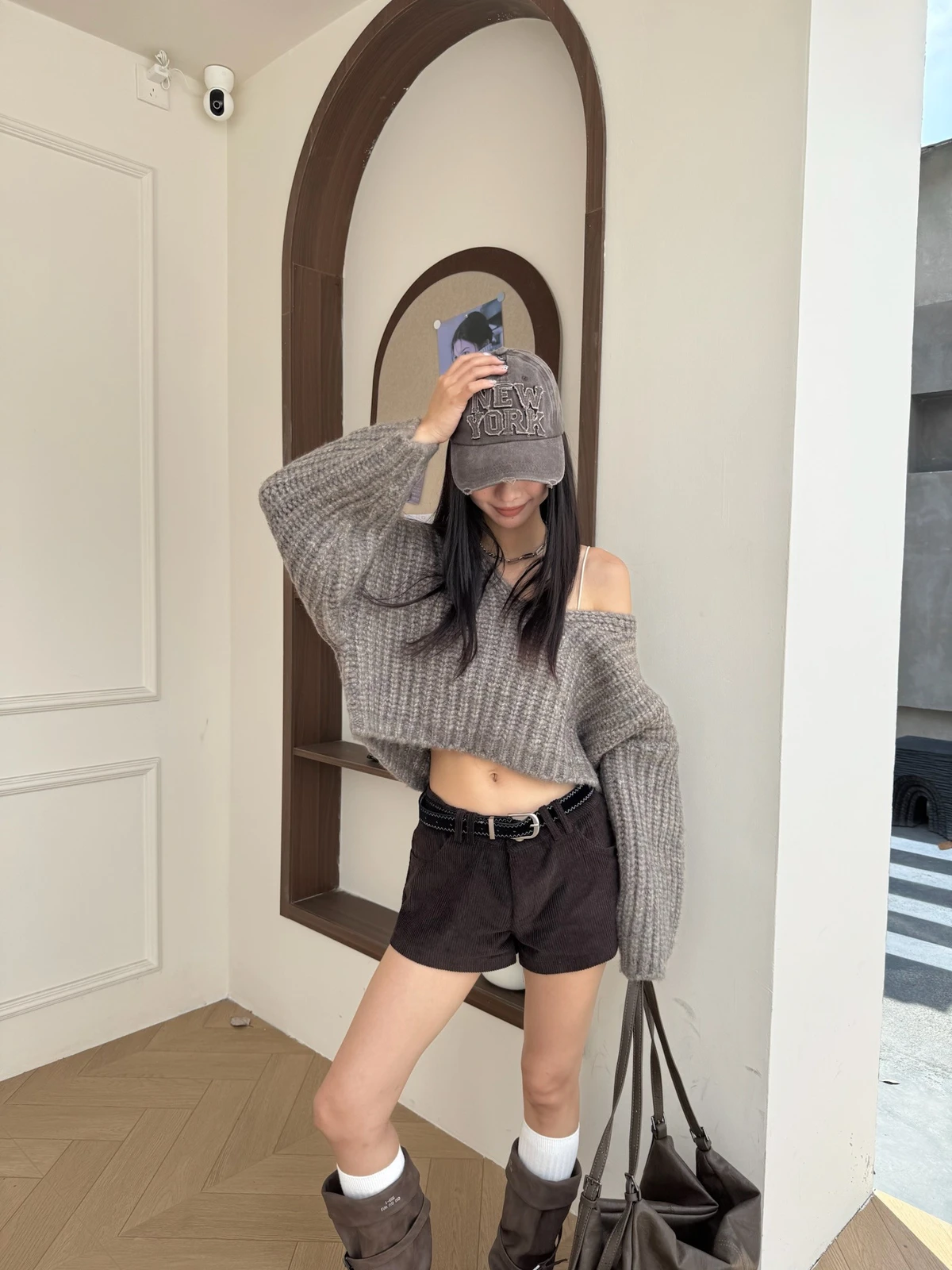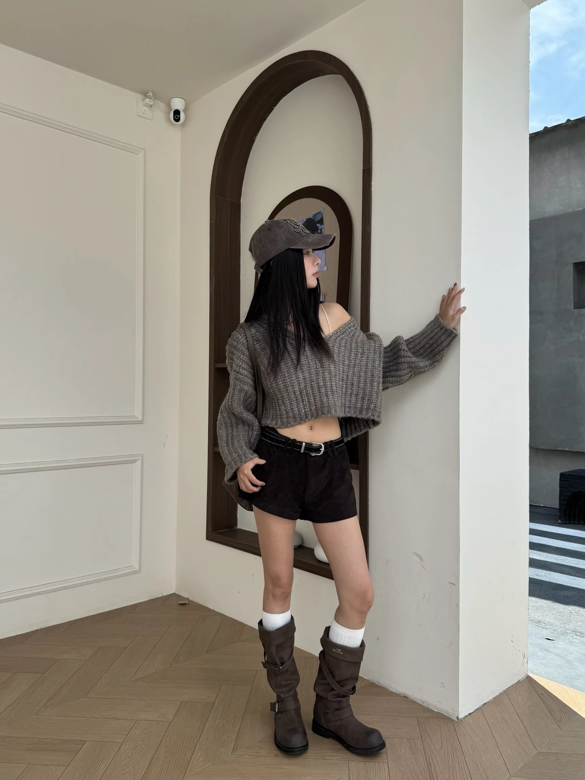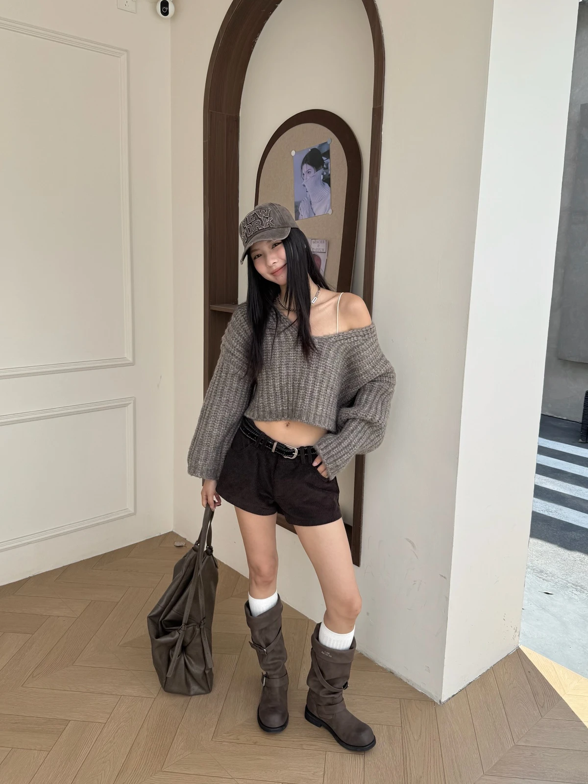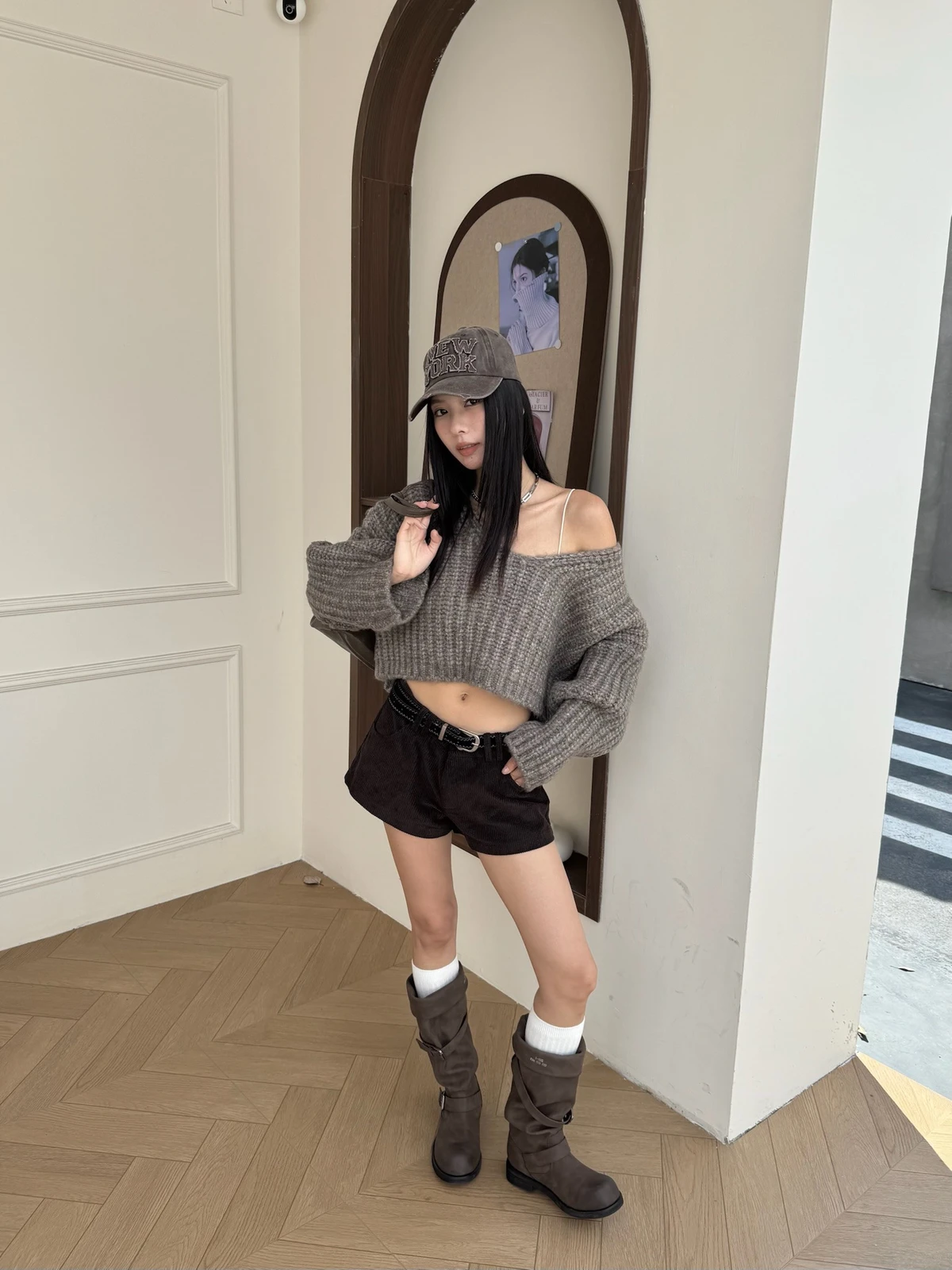自留款推薦!短版粗針織斜肩毛衣/2colors