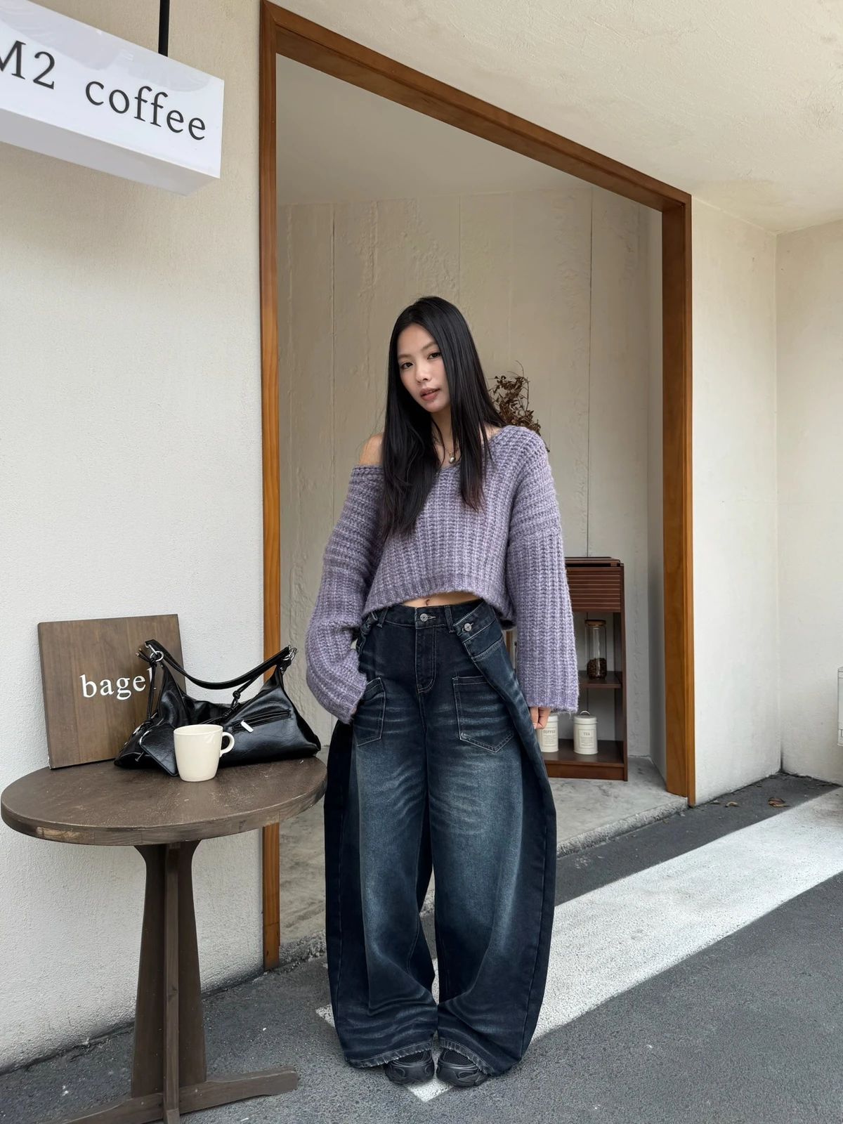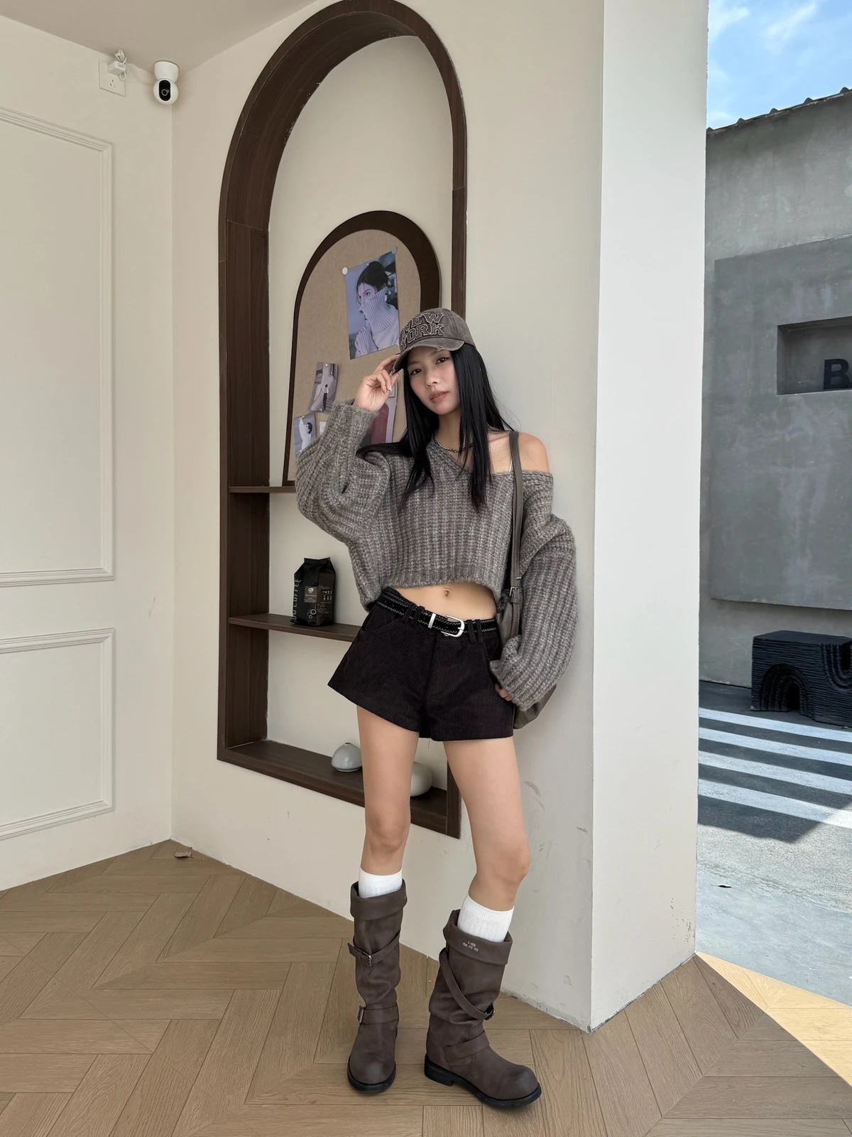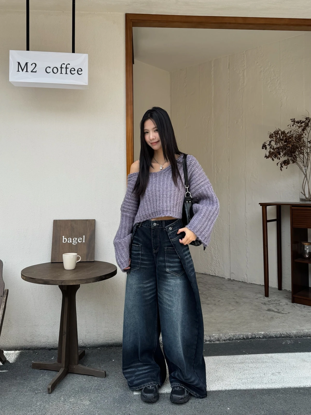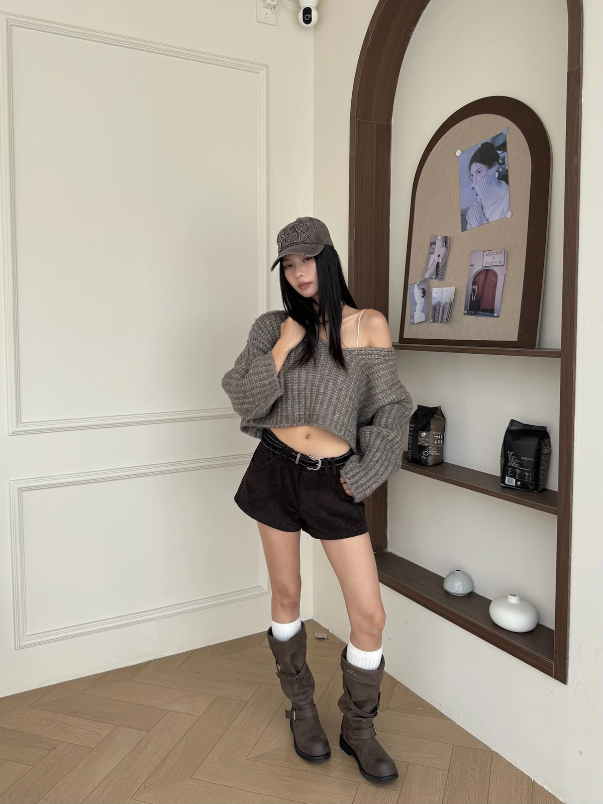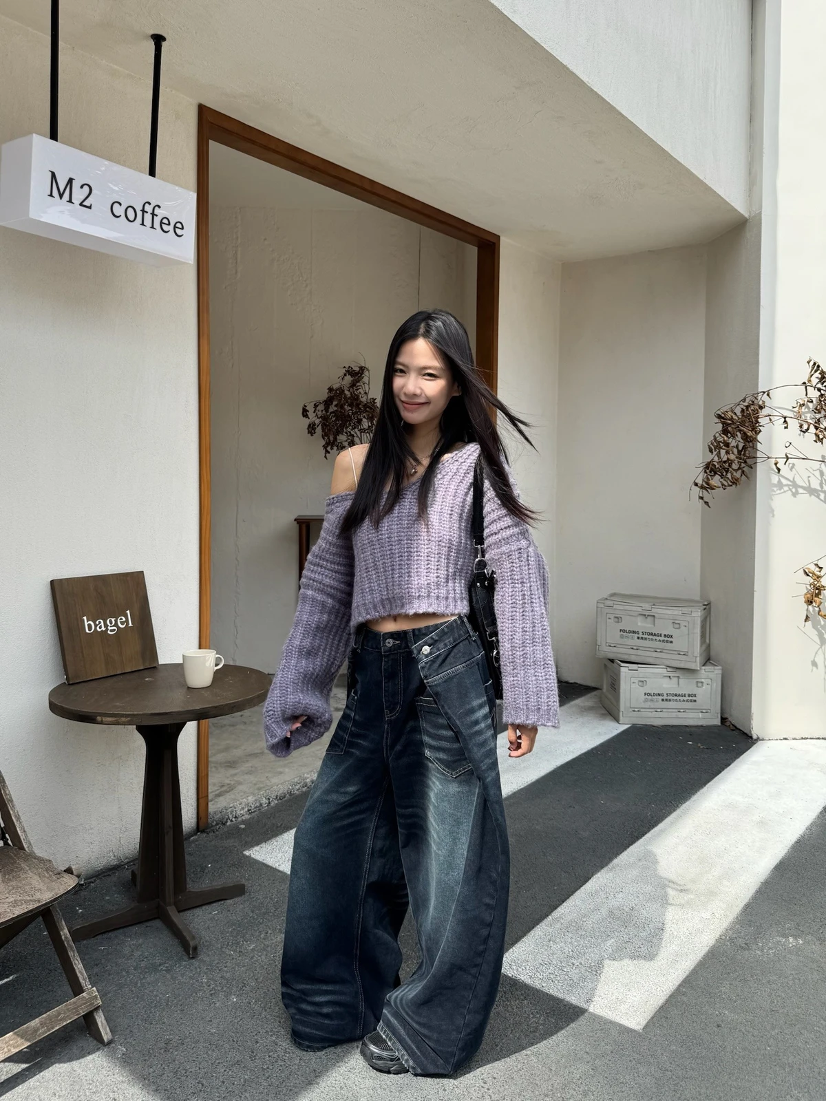 自留款推薦!短版粗針織斜肩毛衣/2colors