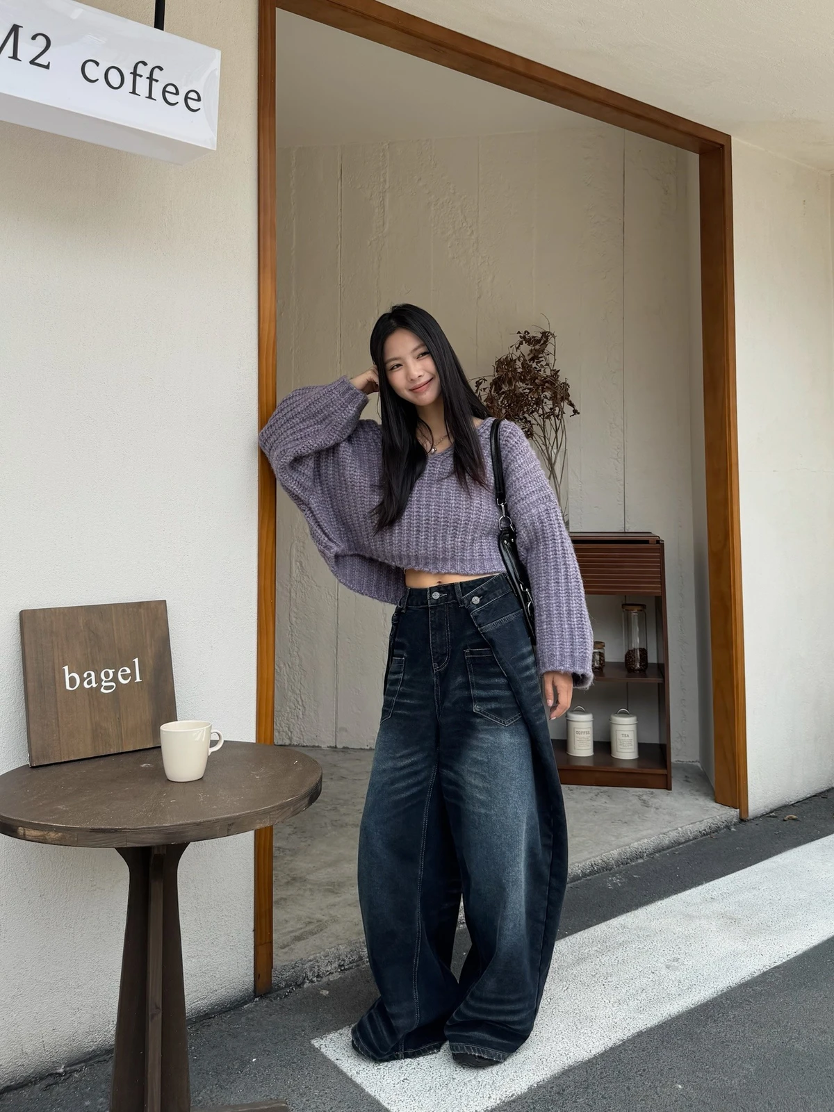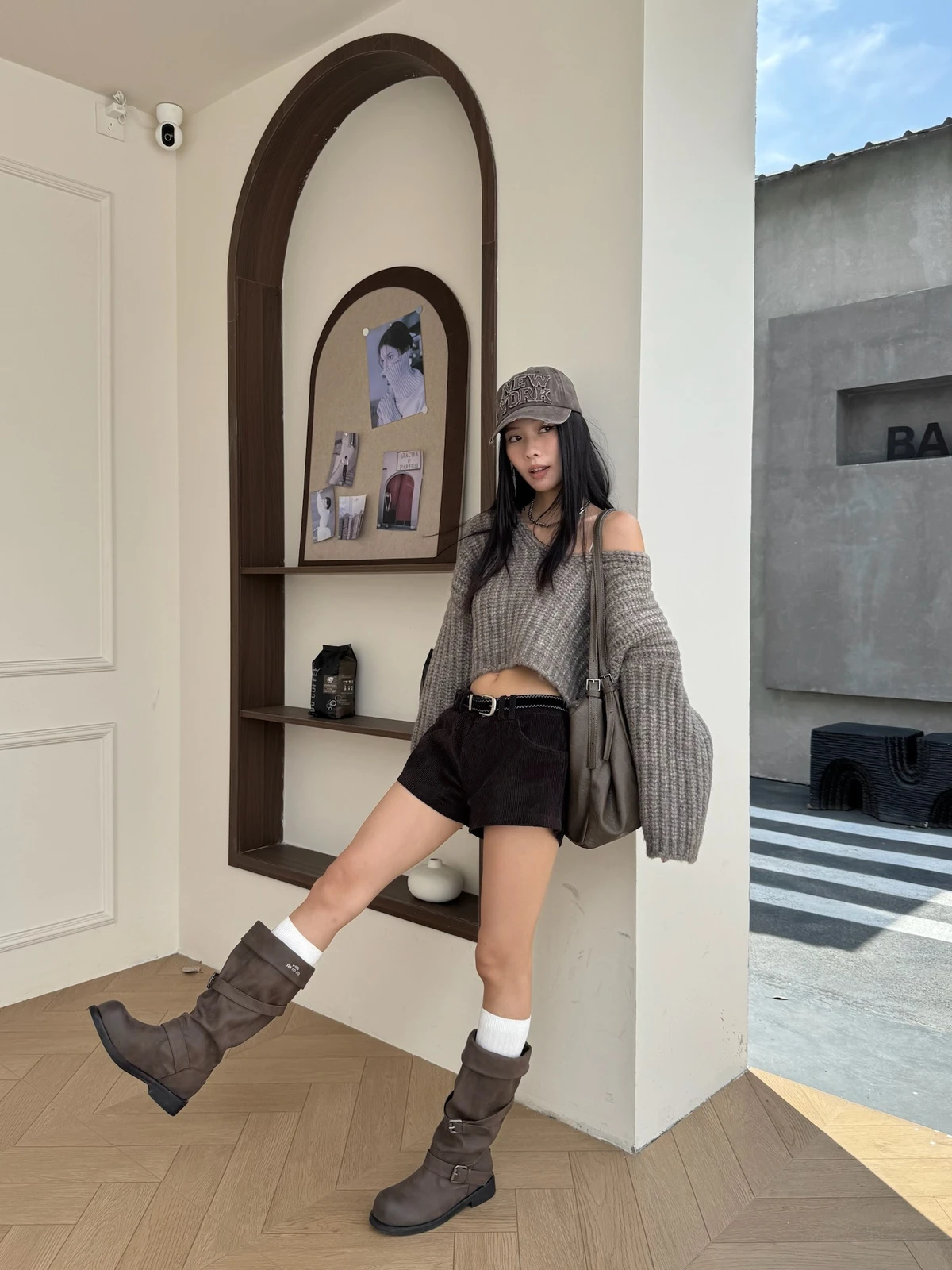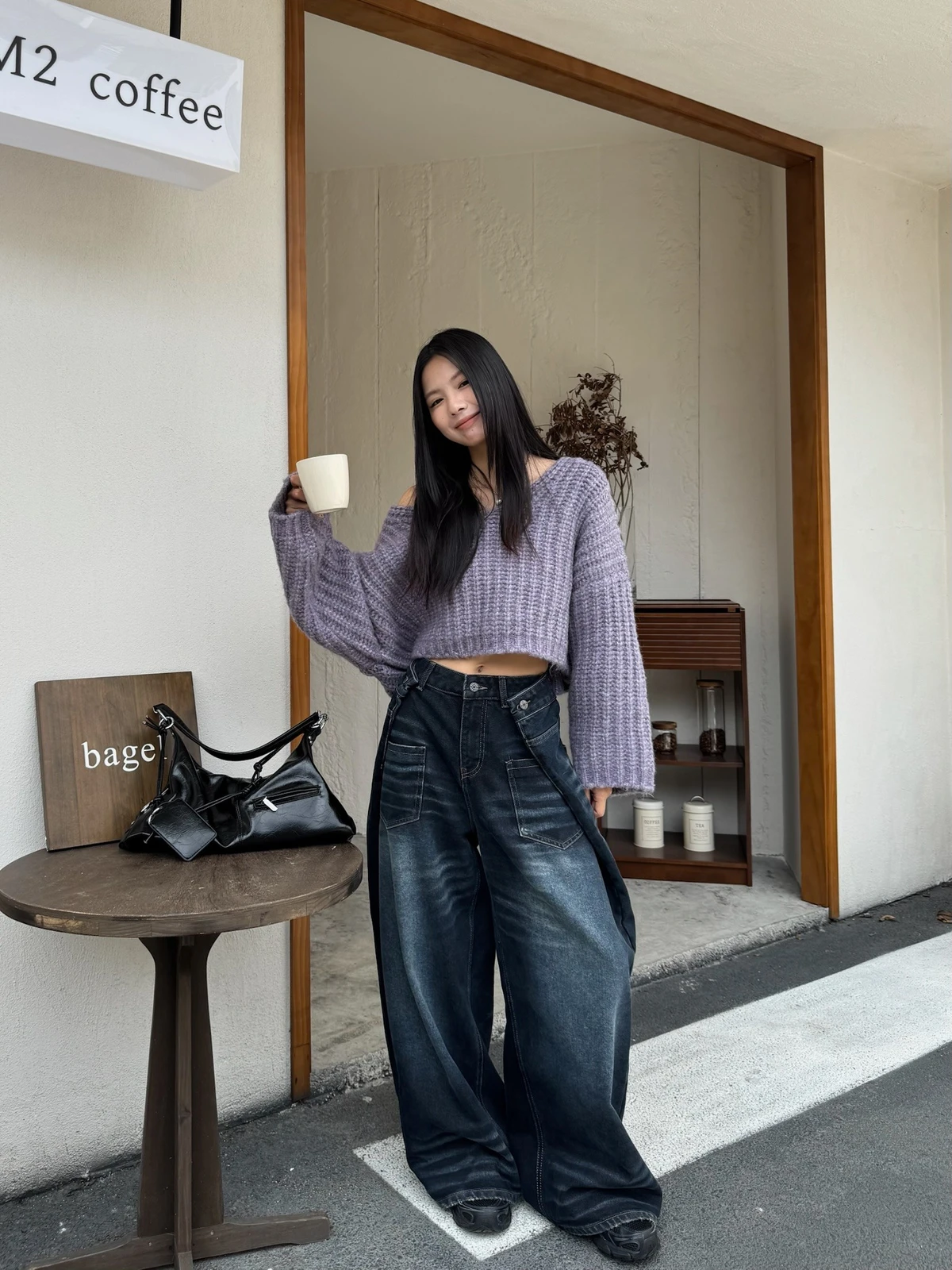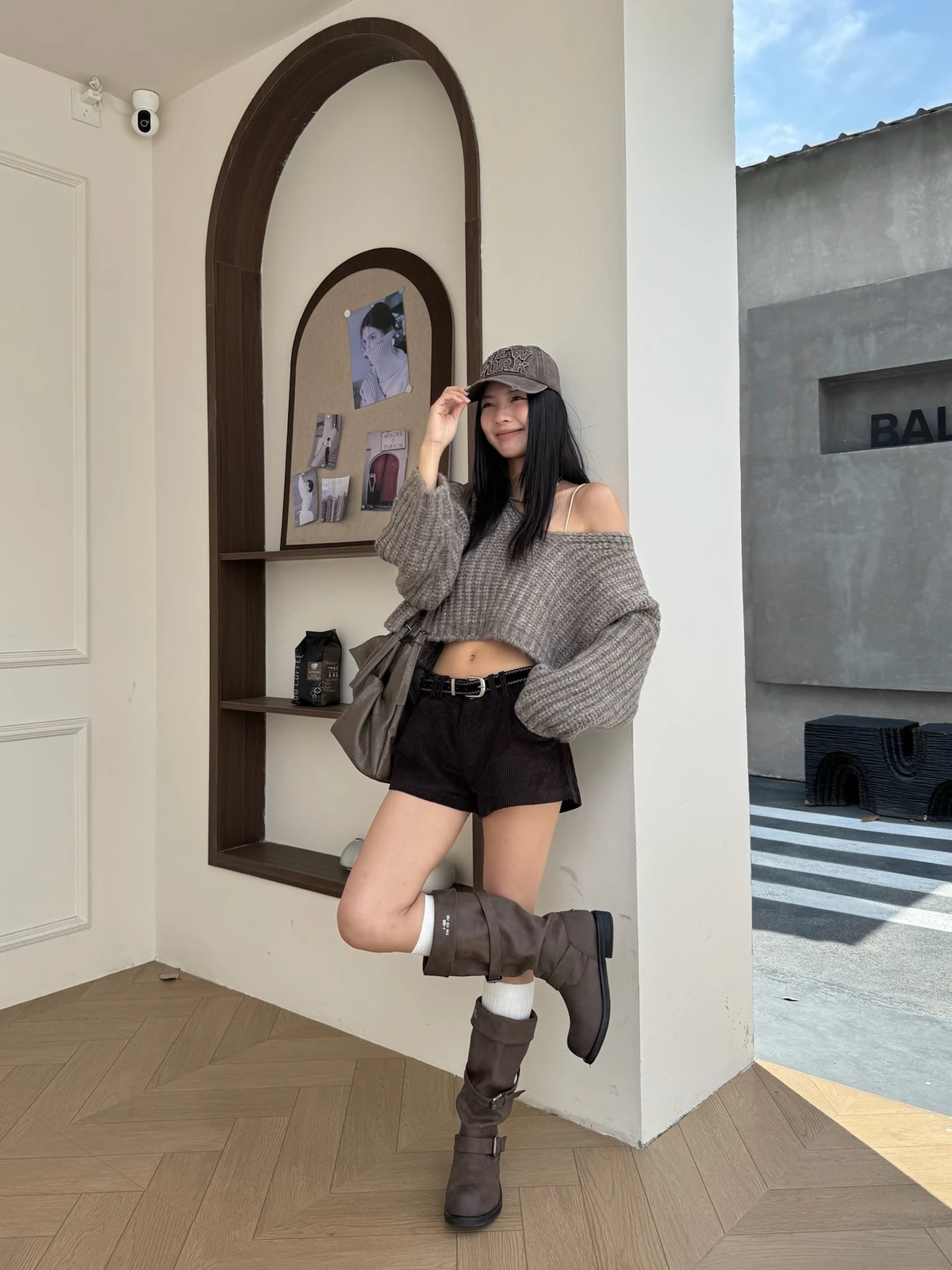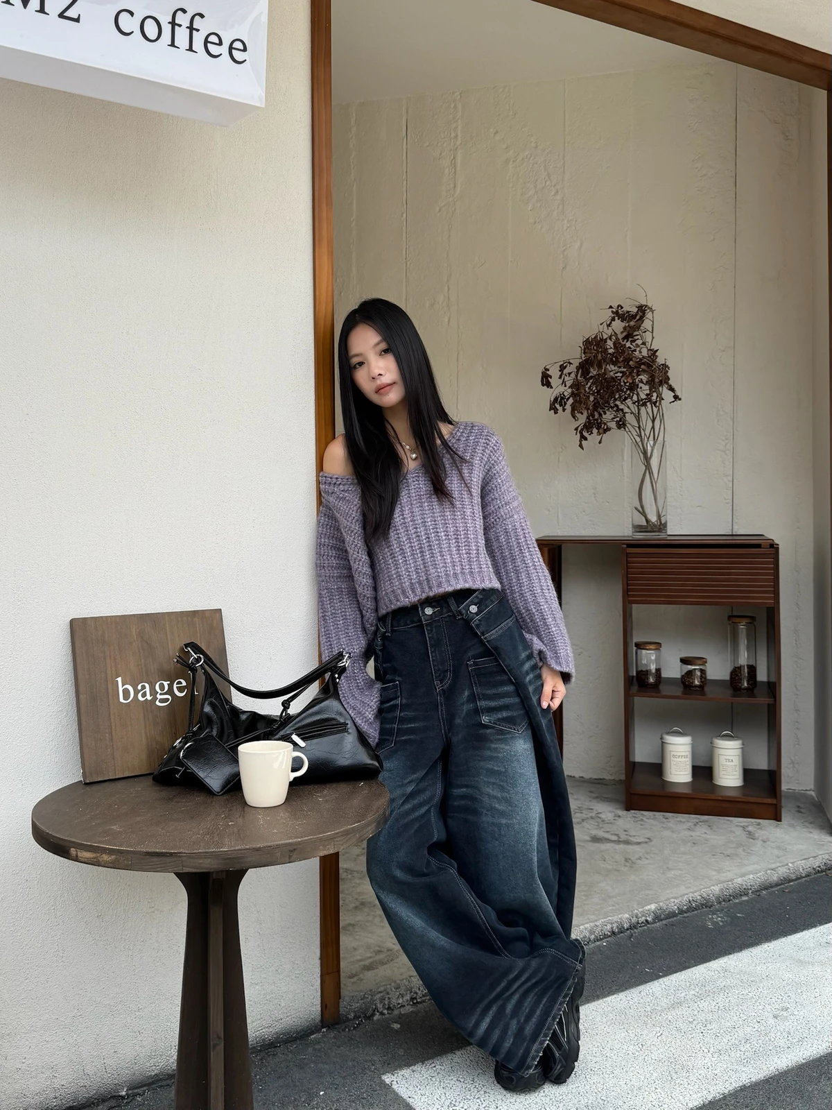 自留款推薦!短版粗針織斜肩毛衣/2colors