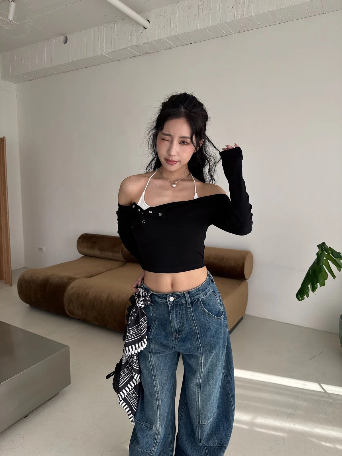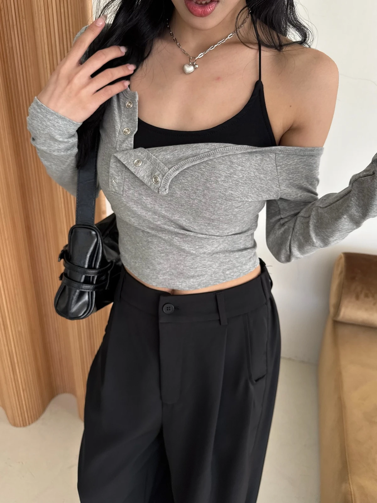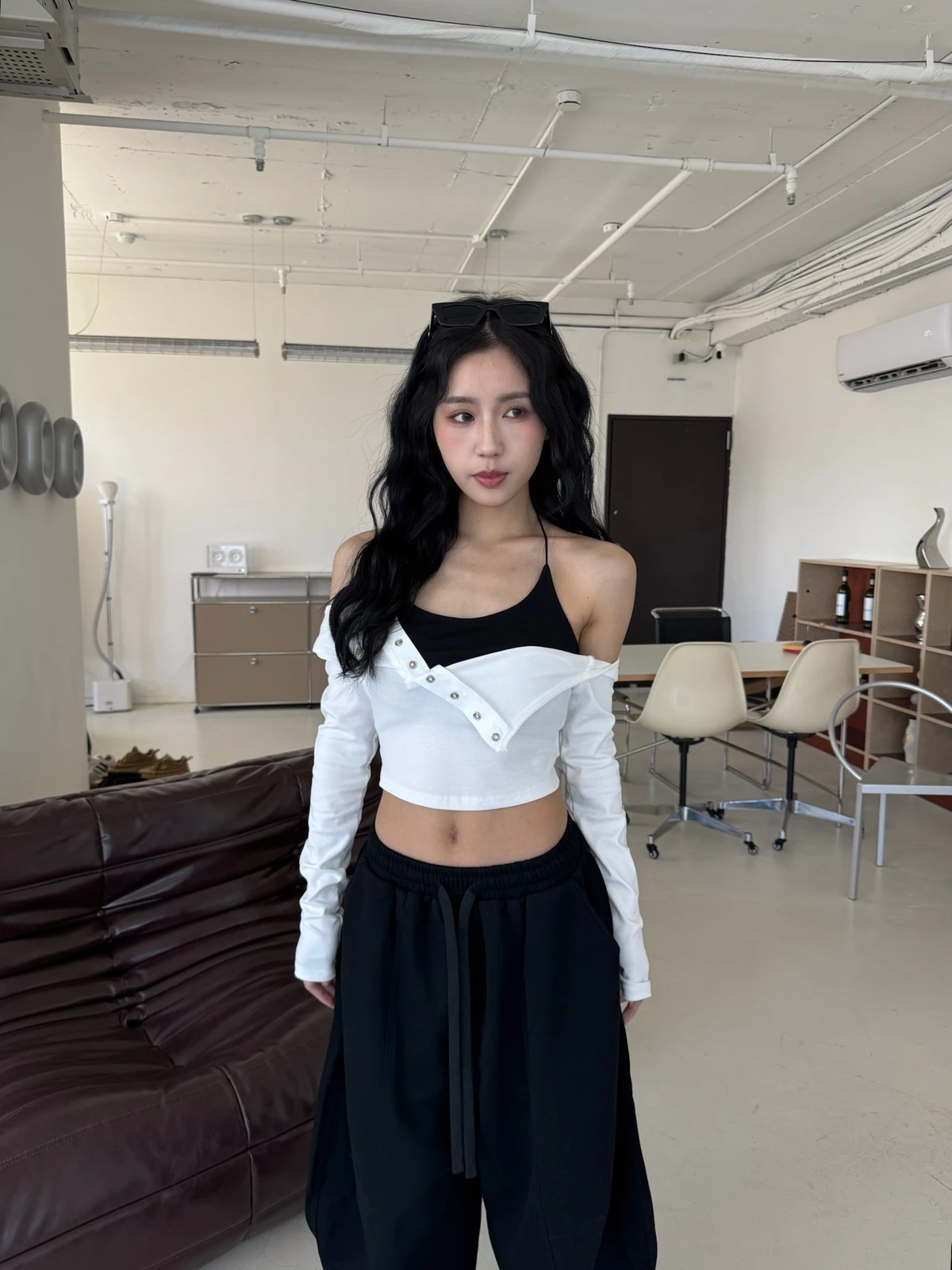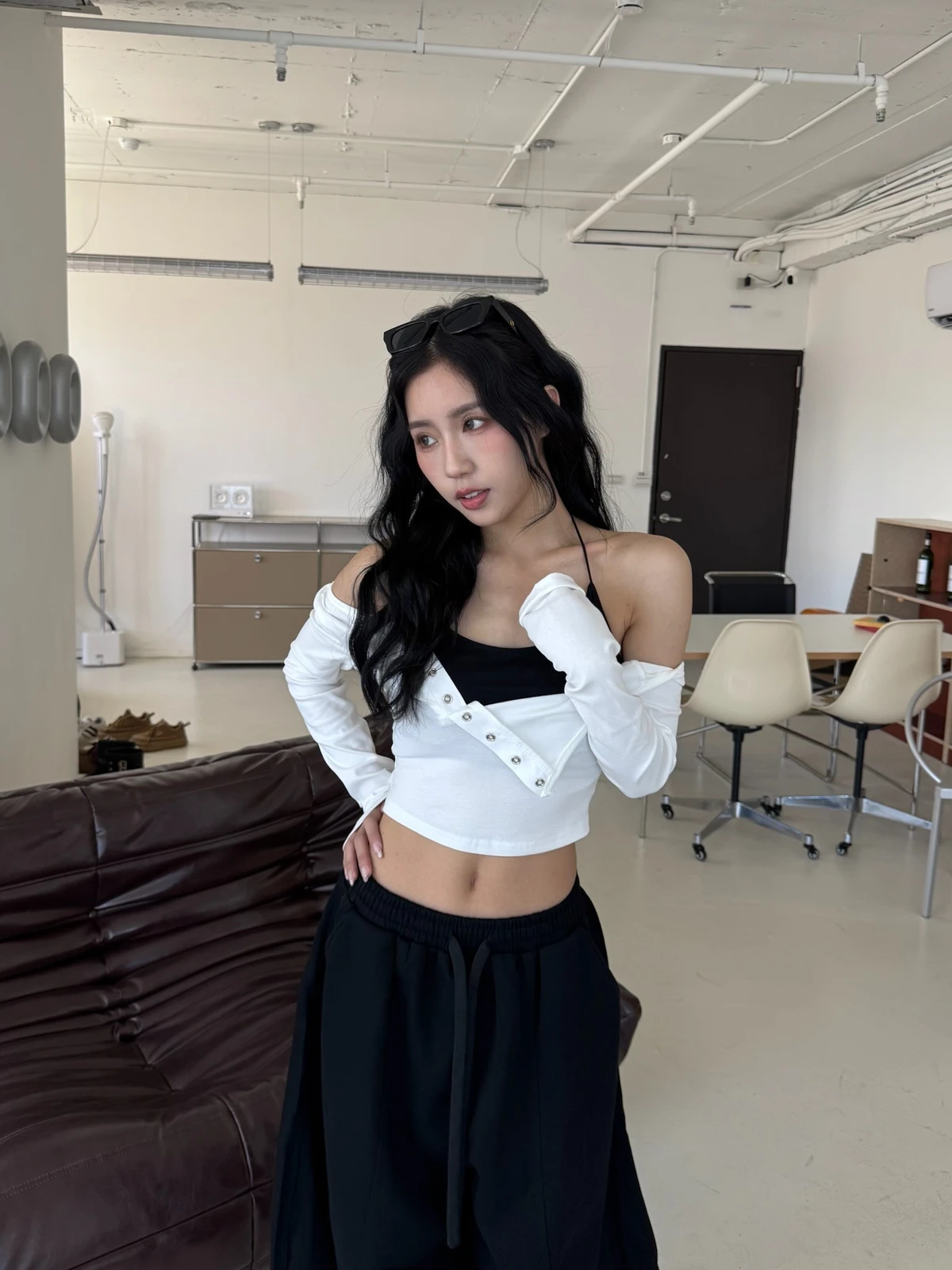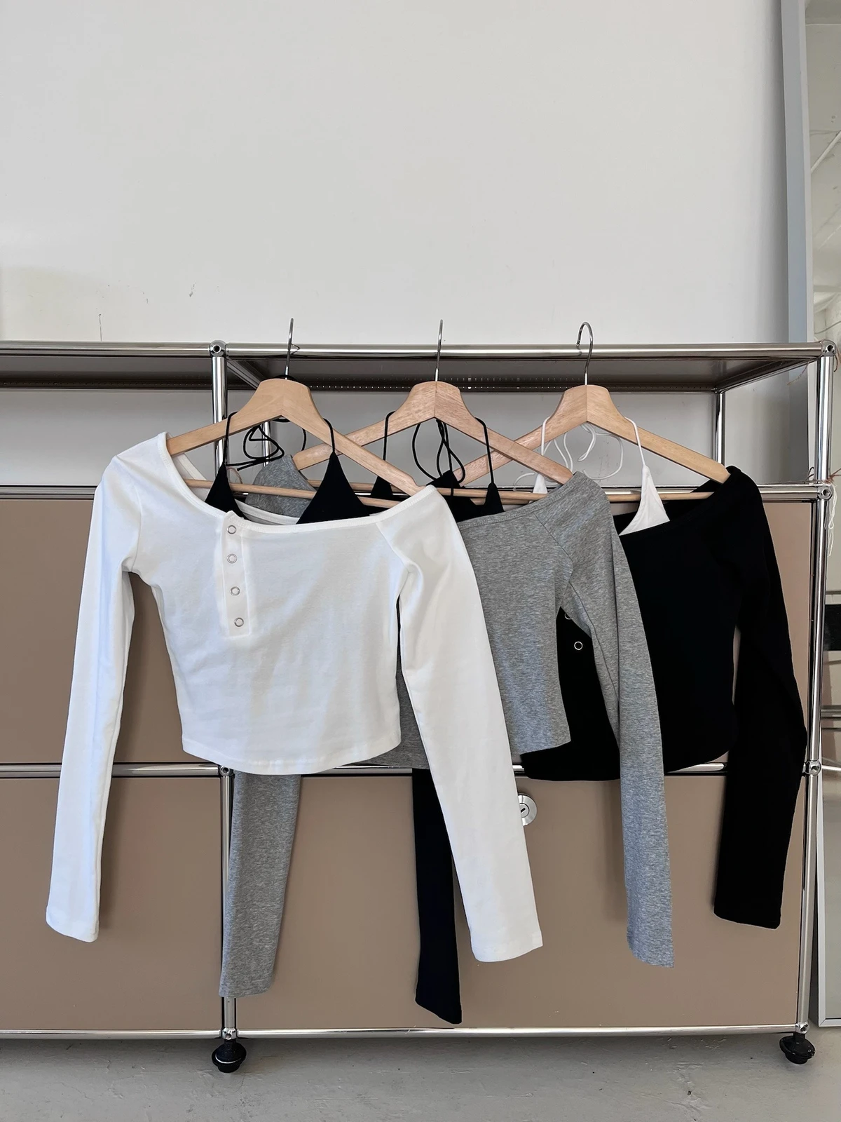 本期推薦!側壓釦斜肩掛脖Bra兩件式上衣/3colors