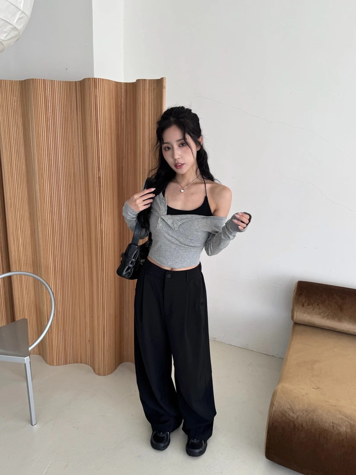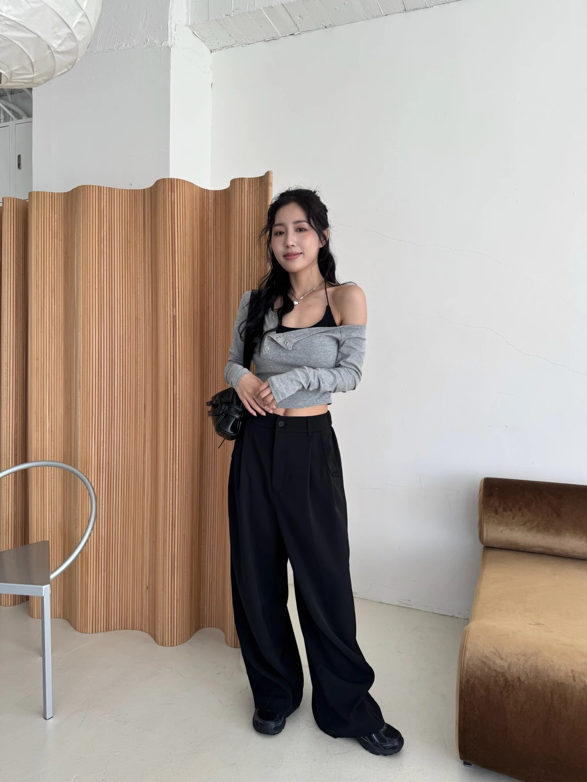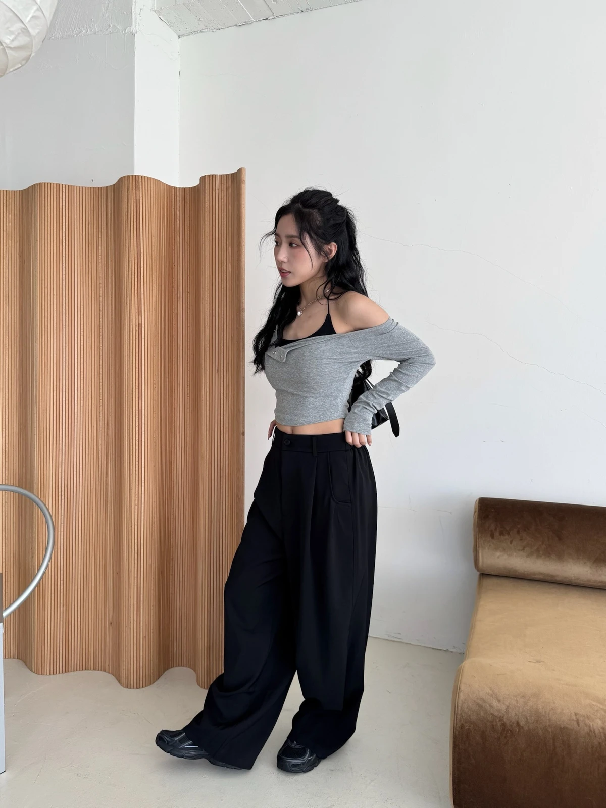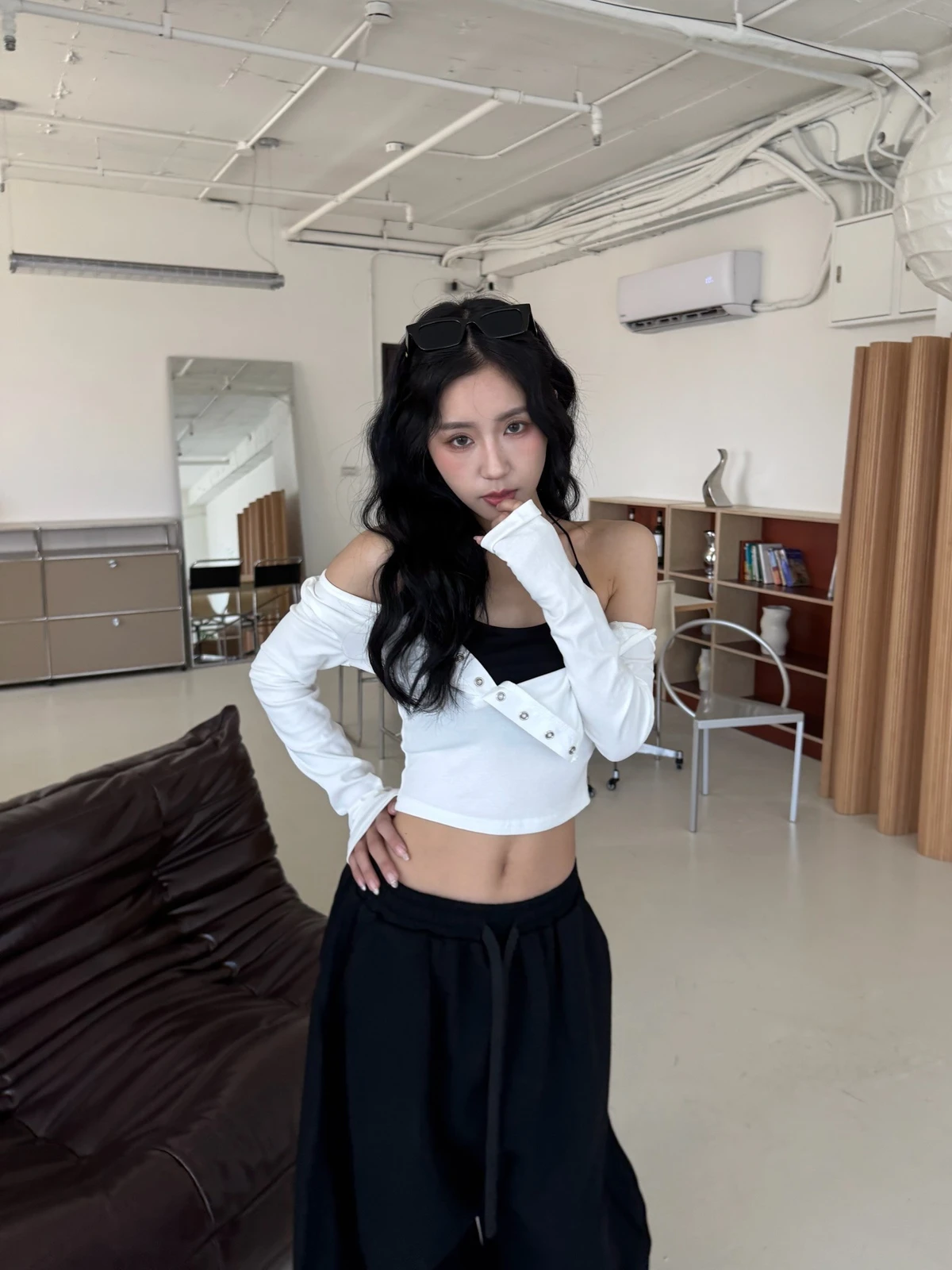 本期推薦!側壓釦斜肩掛脖Bra兩件式上衣/3colors