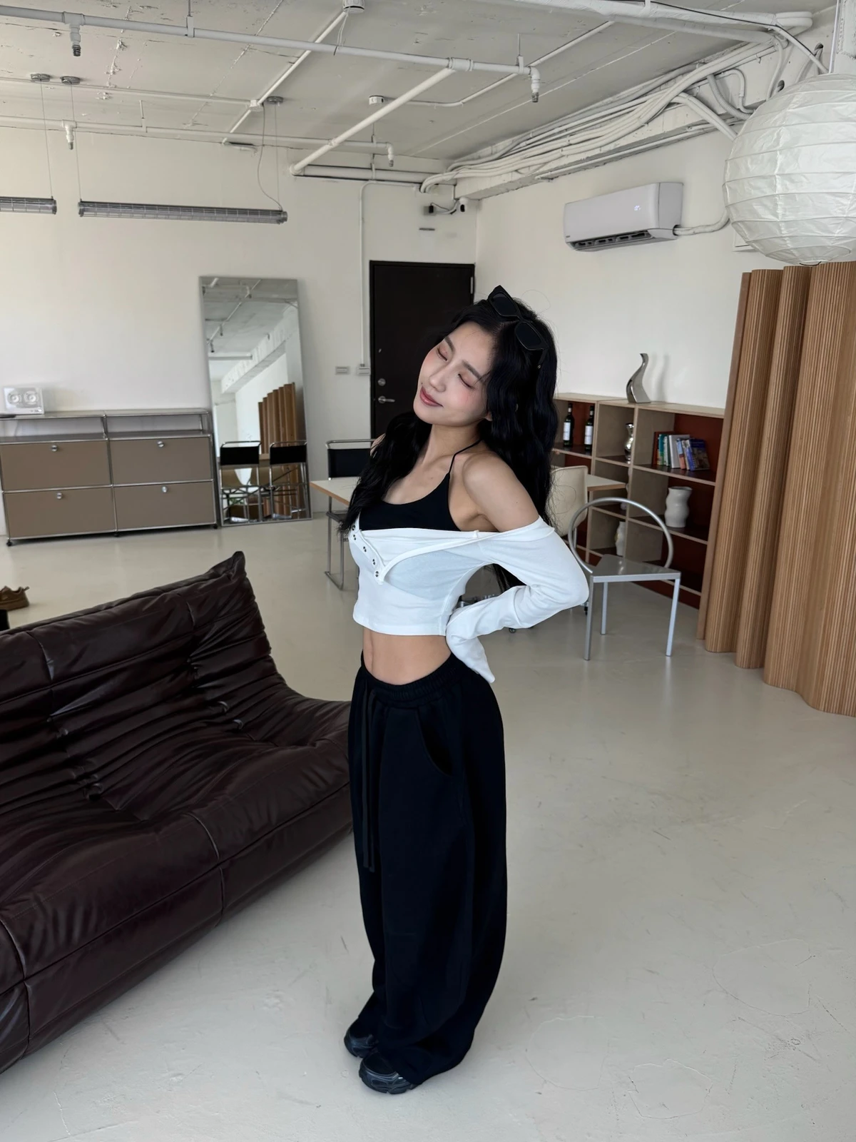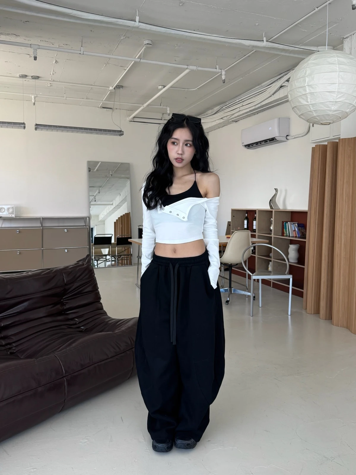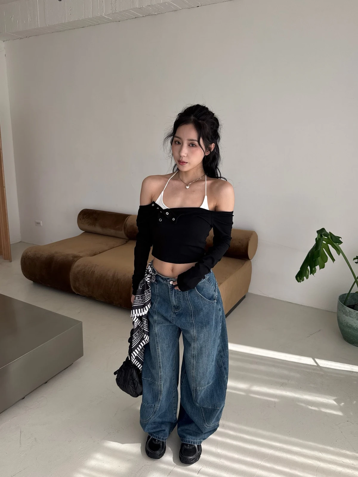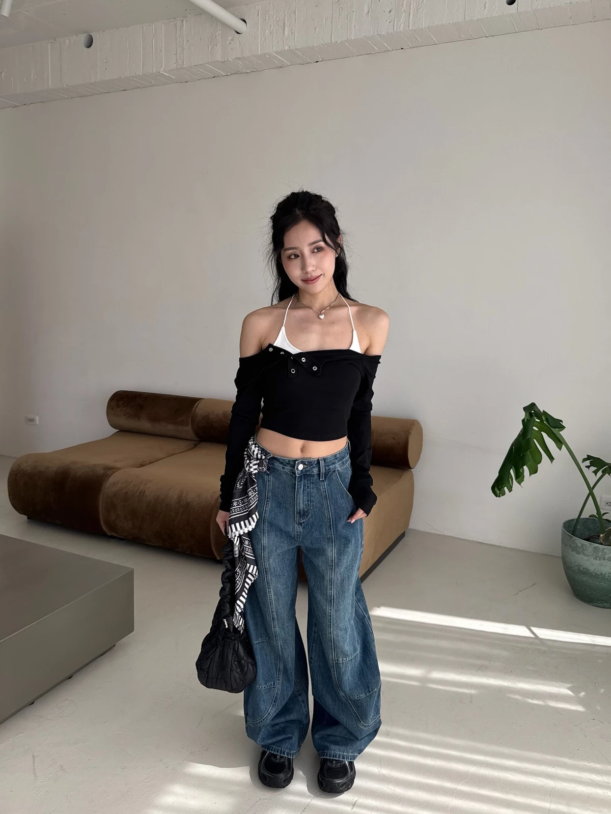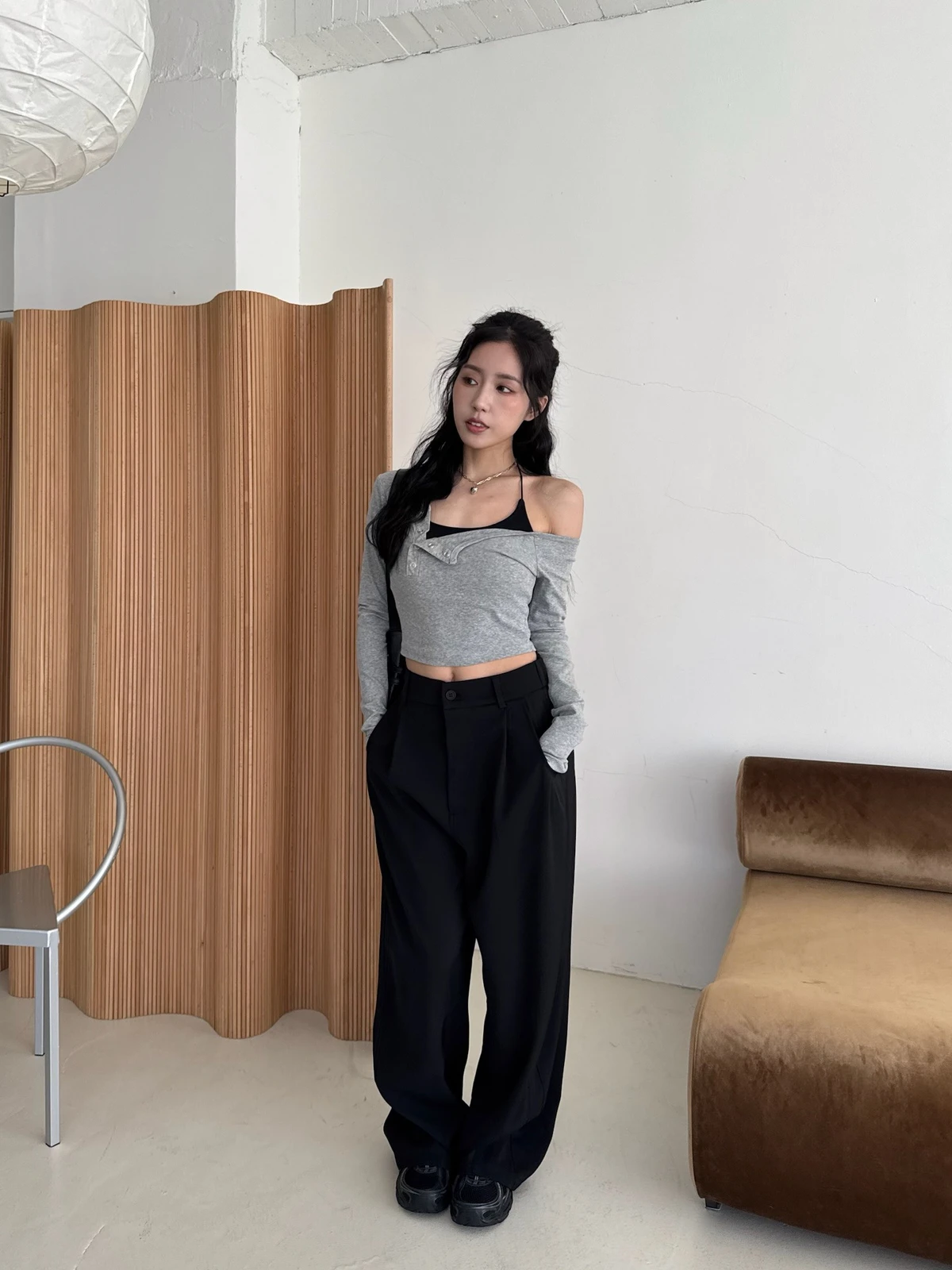 本期推薦!側壓釦斜肩掛脖Bra兩件式上衣/3colors