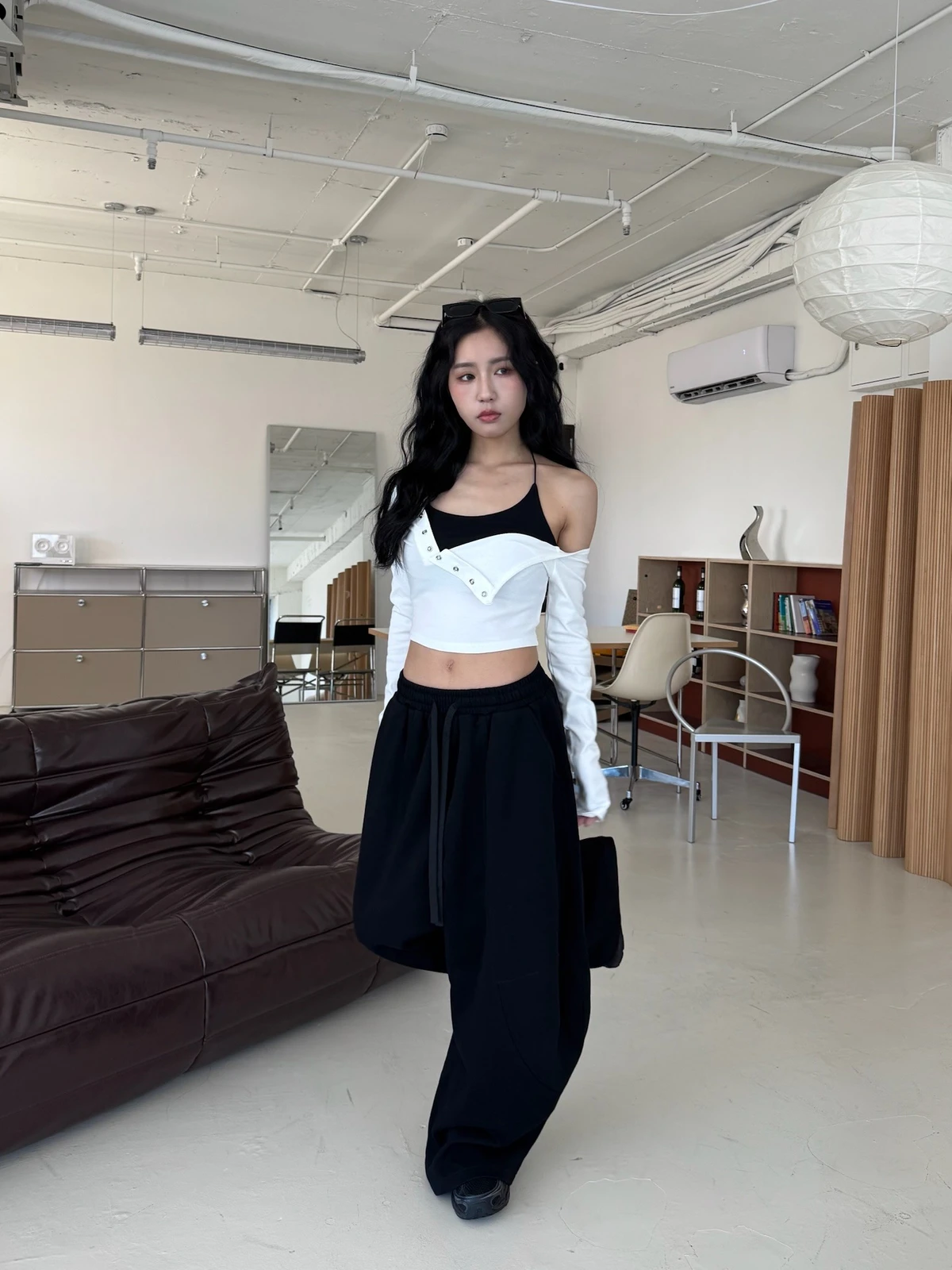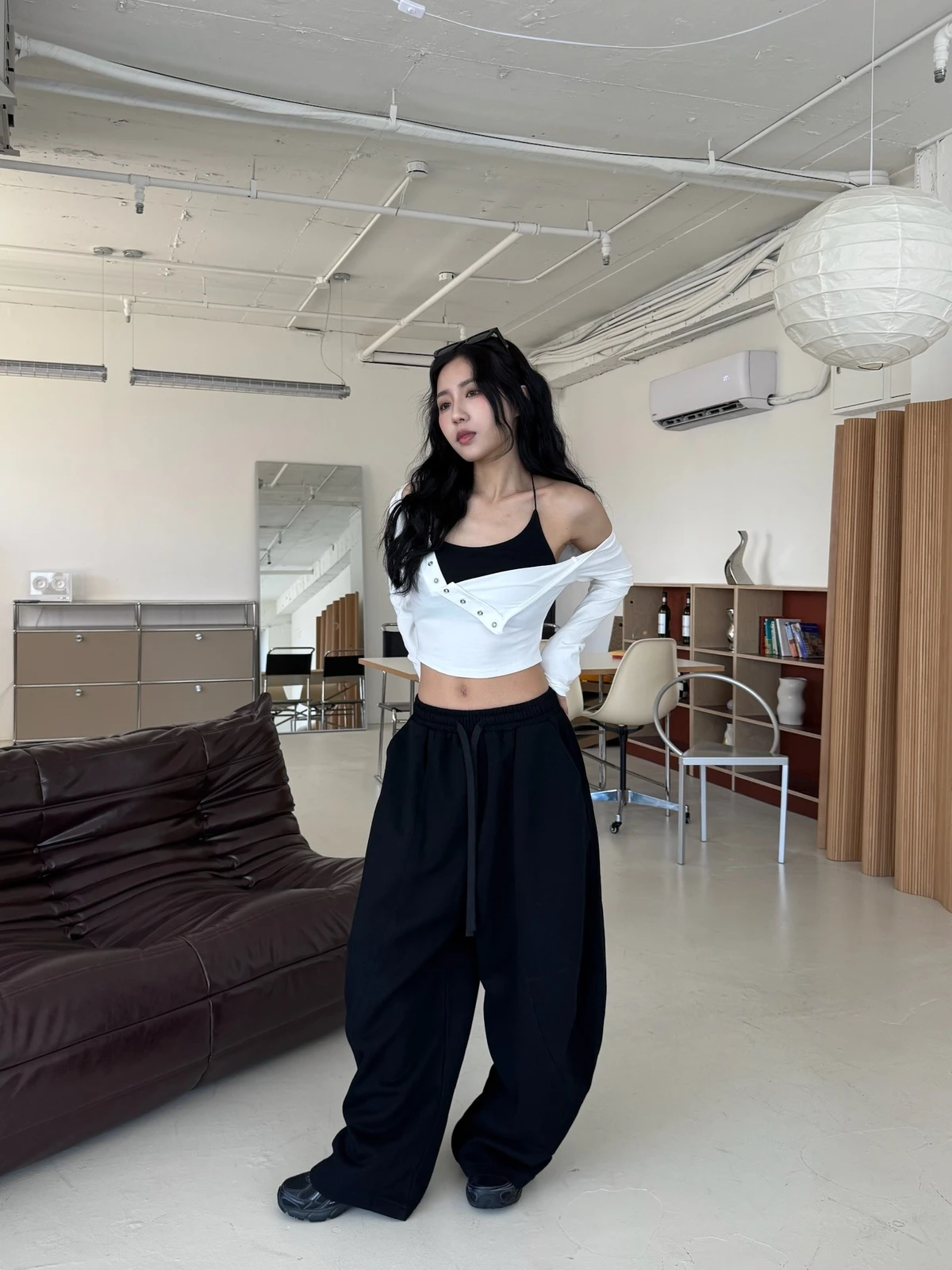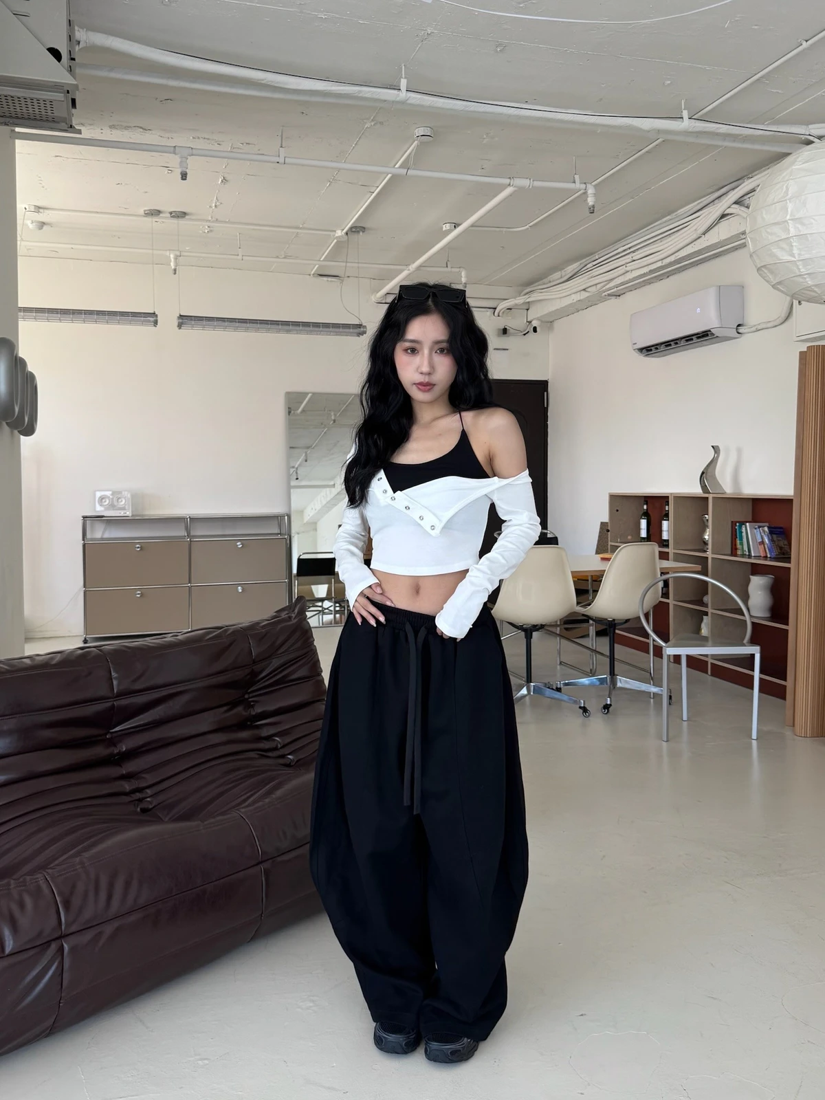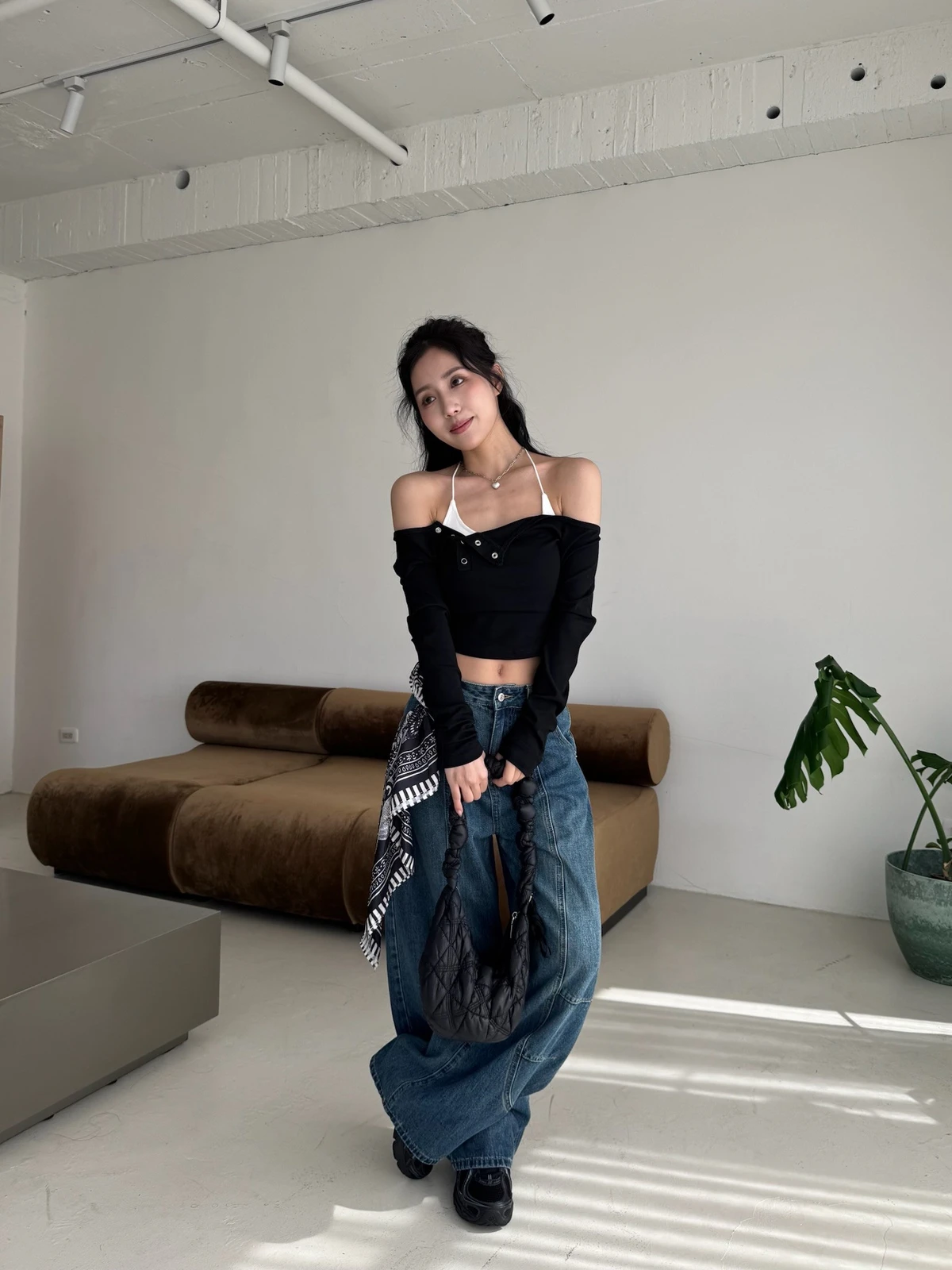本期推薦!側壓釦斜肩掛脖Bra兩件式上衣/3colors