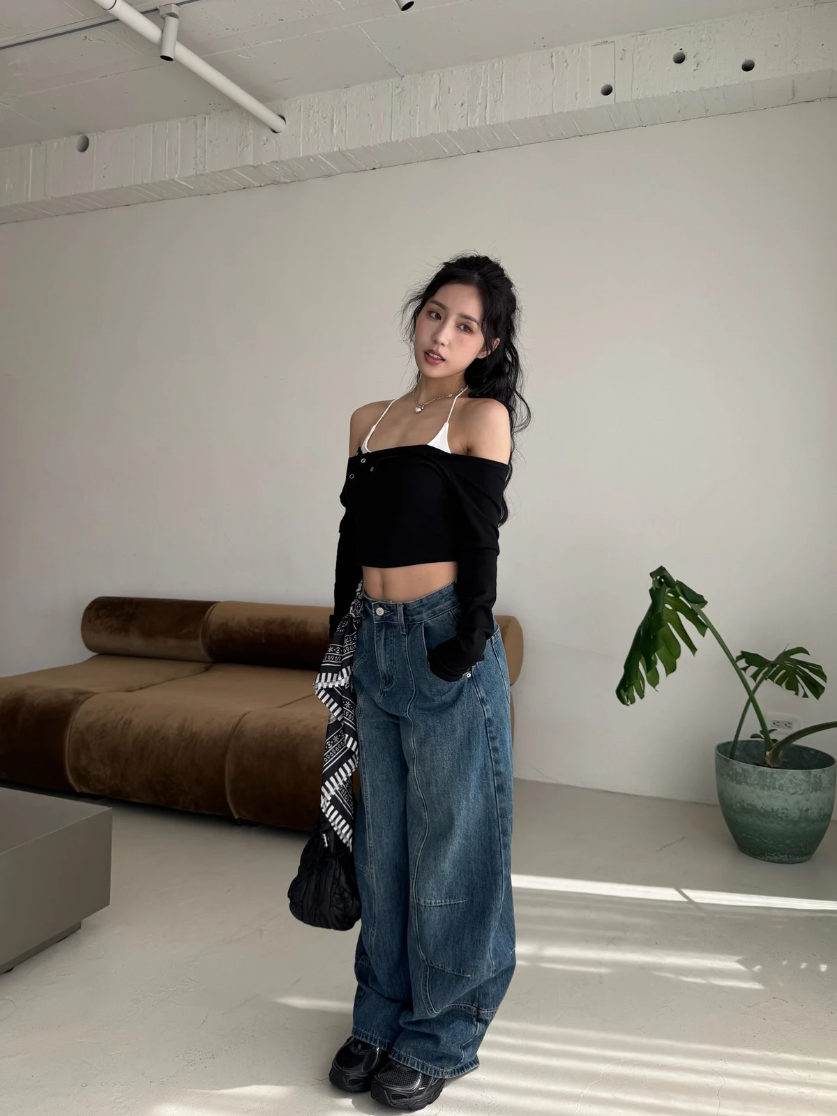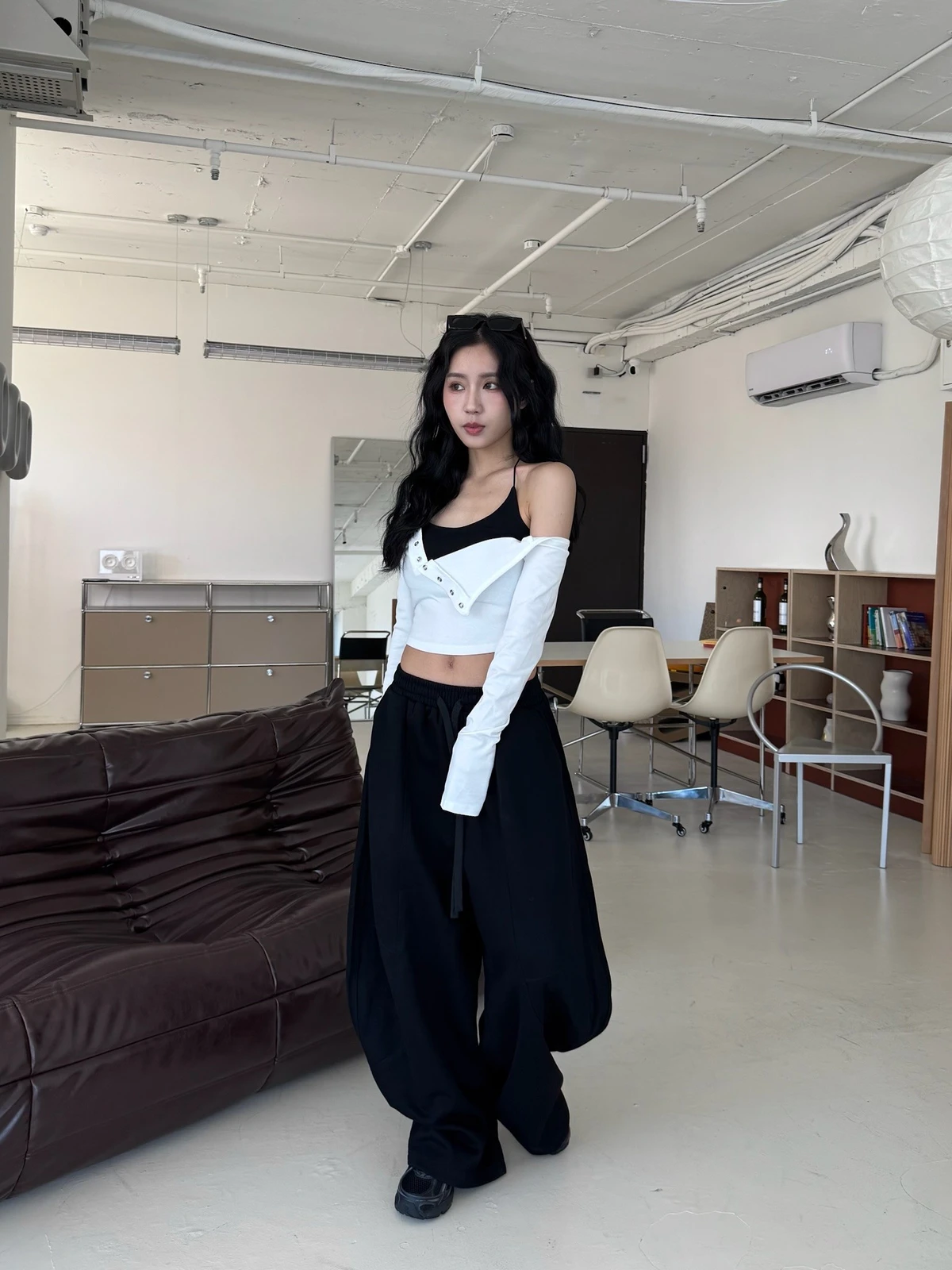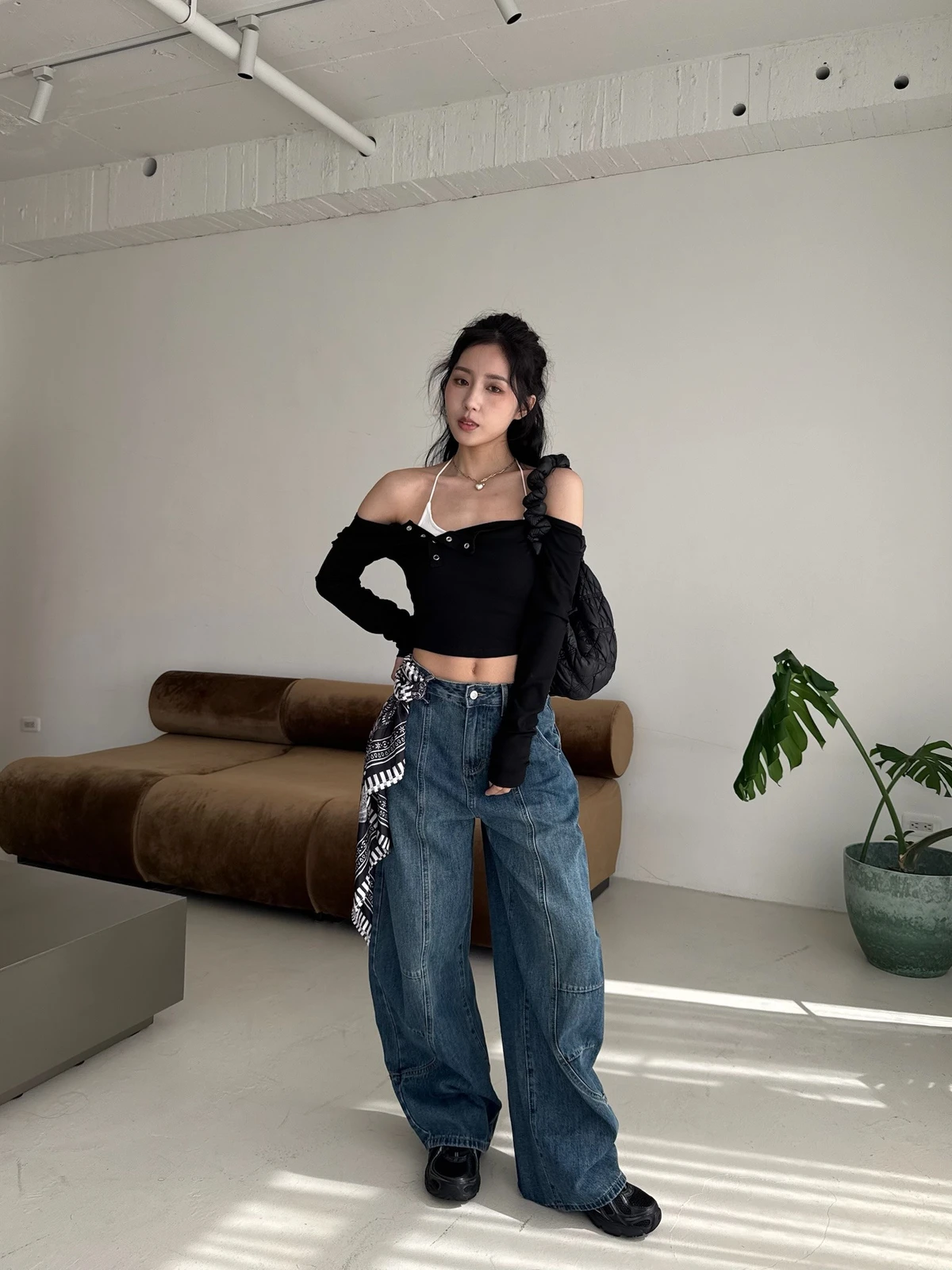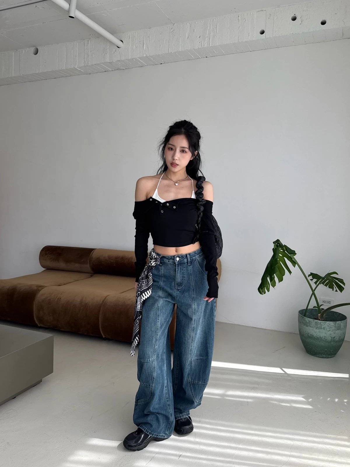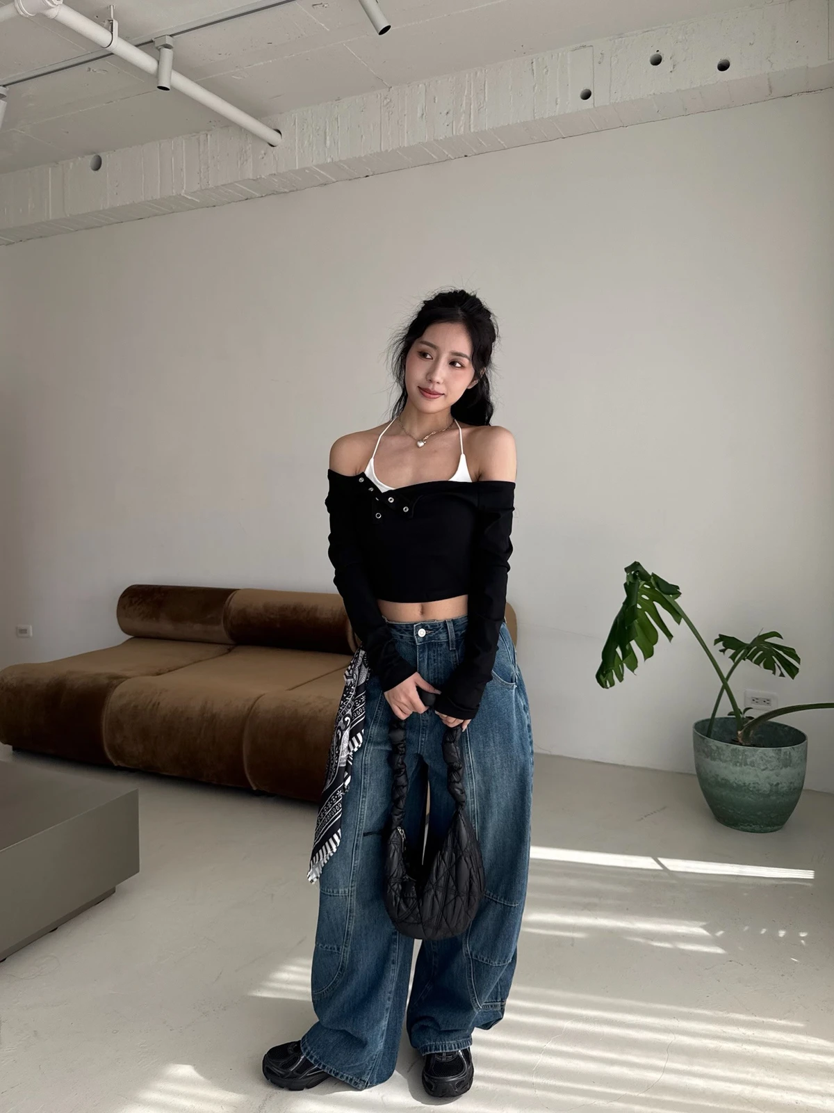 本期推薦!側壓釦斜肩掛脖Bra兩件式上衣/3colors