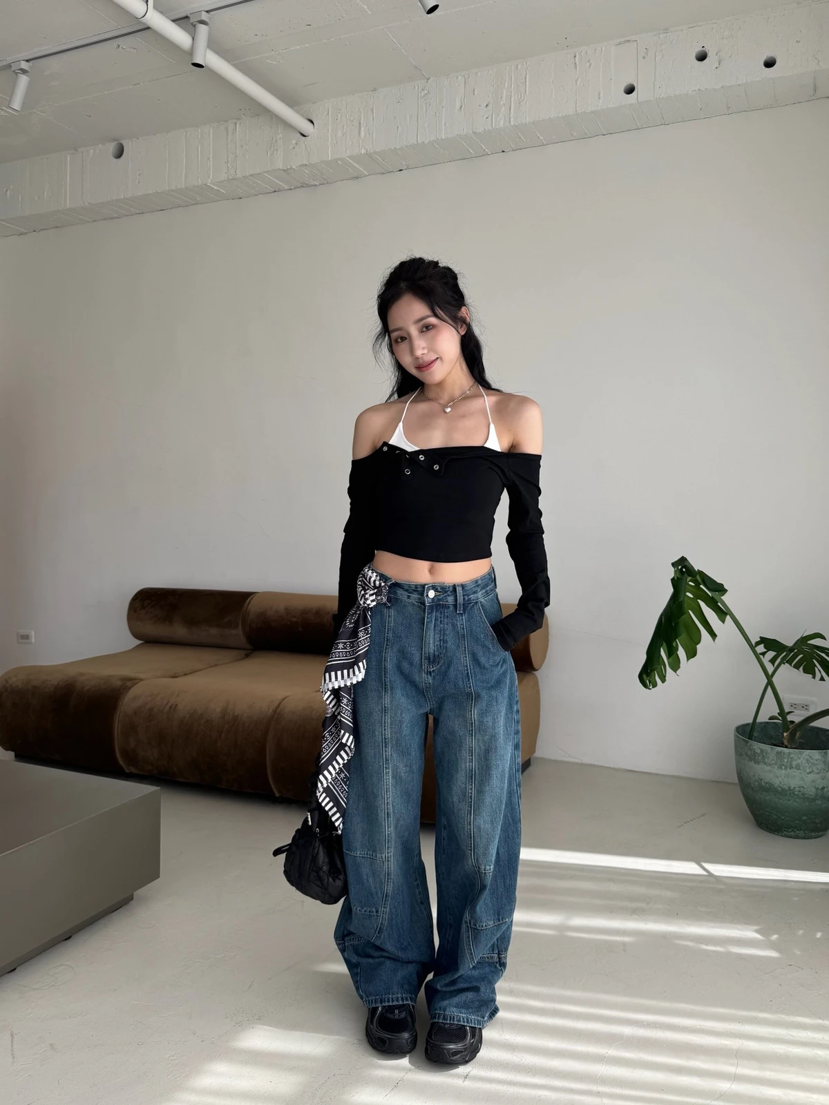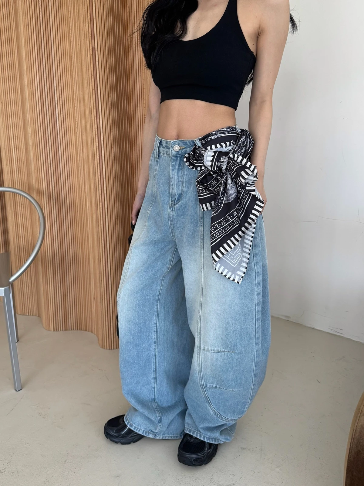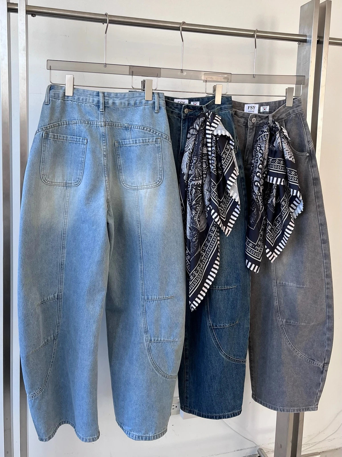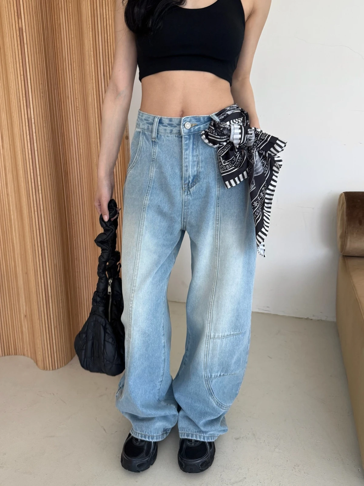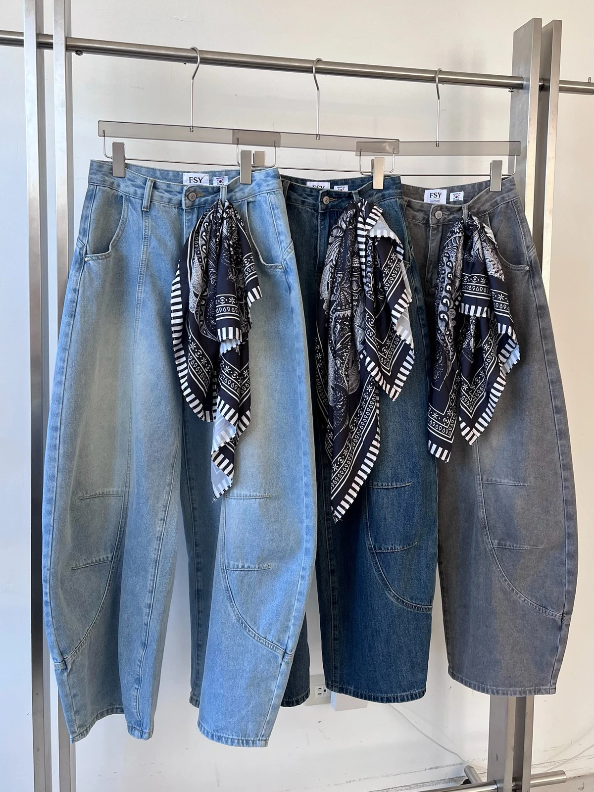 絲巾綁帶彎刀牛仔長褲/3colors