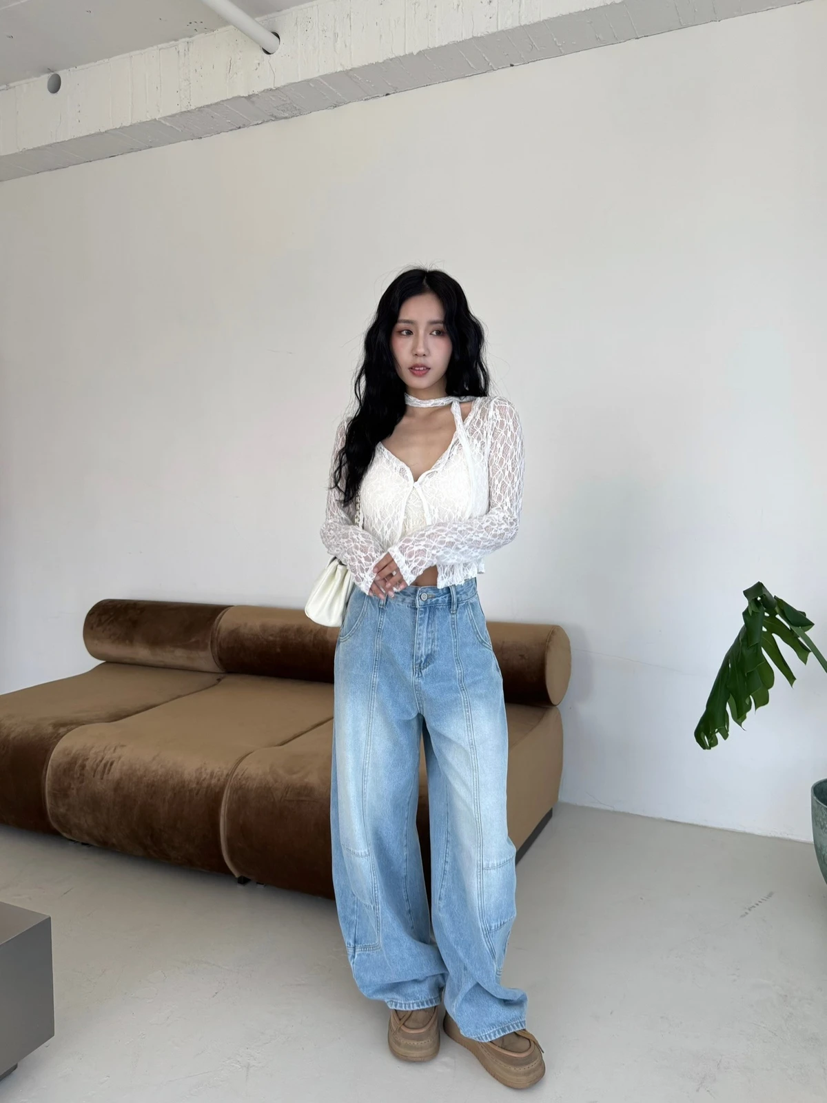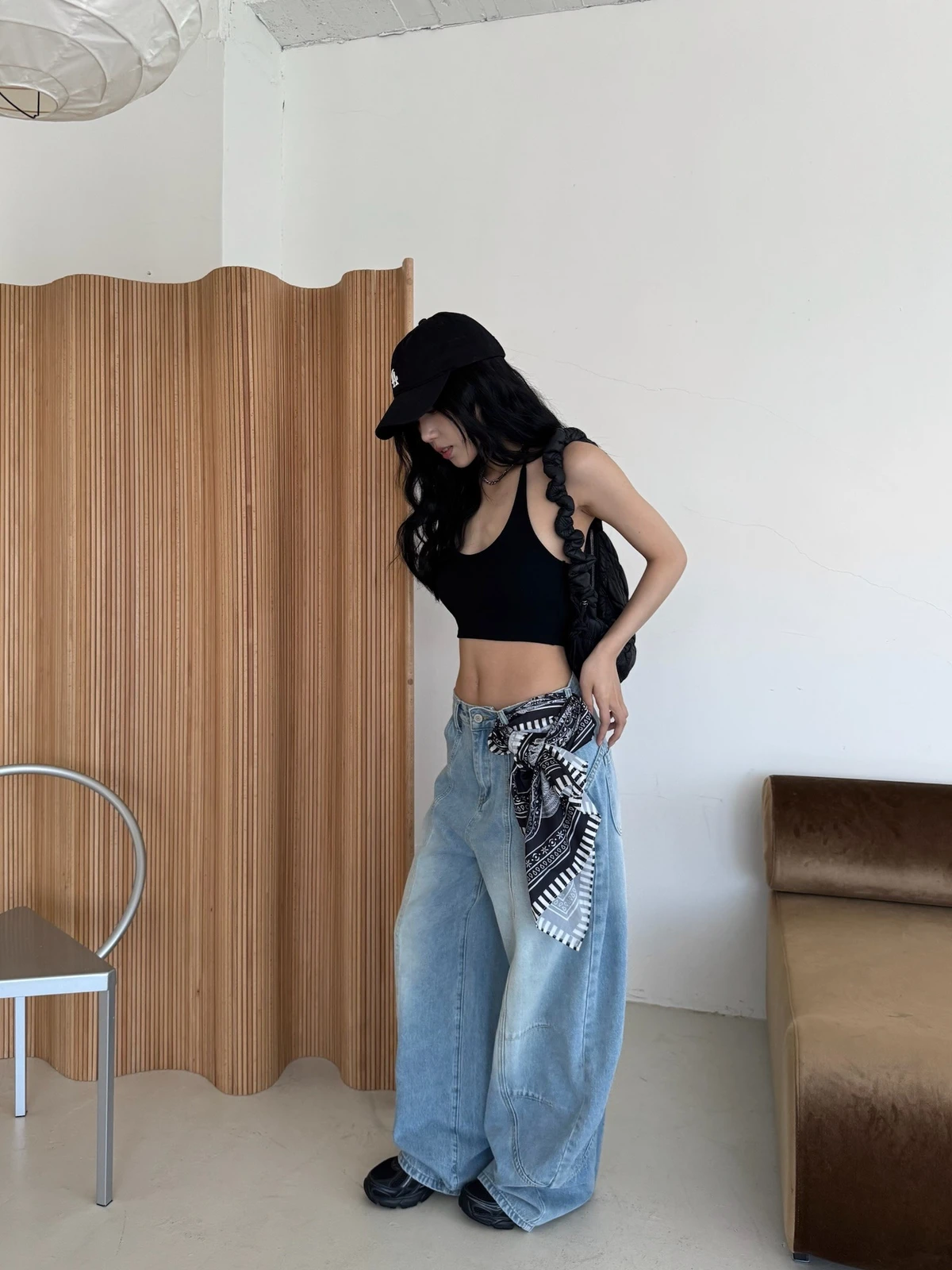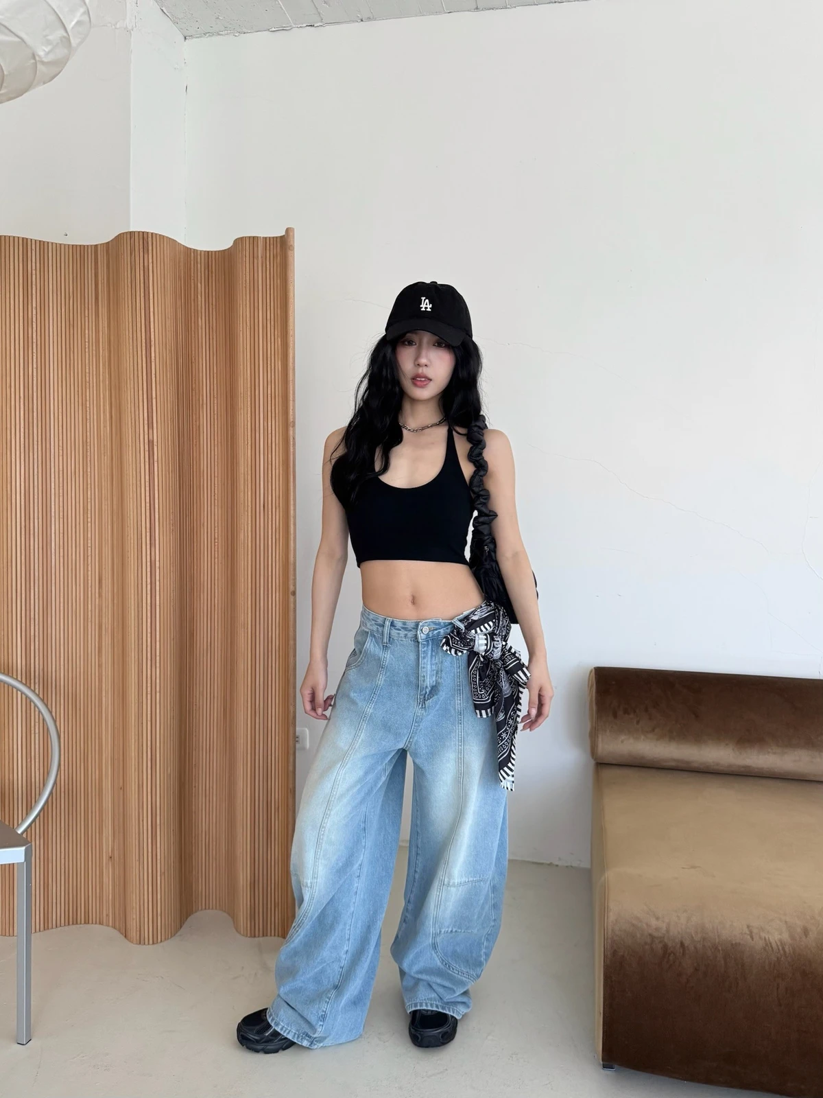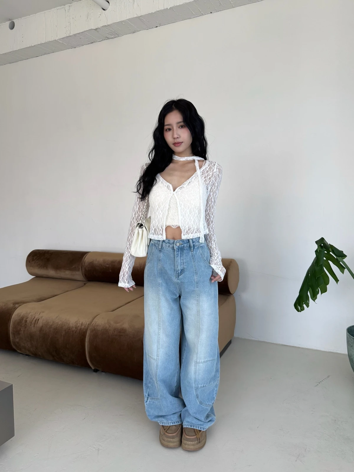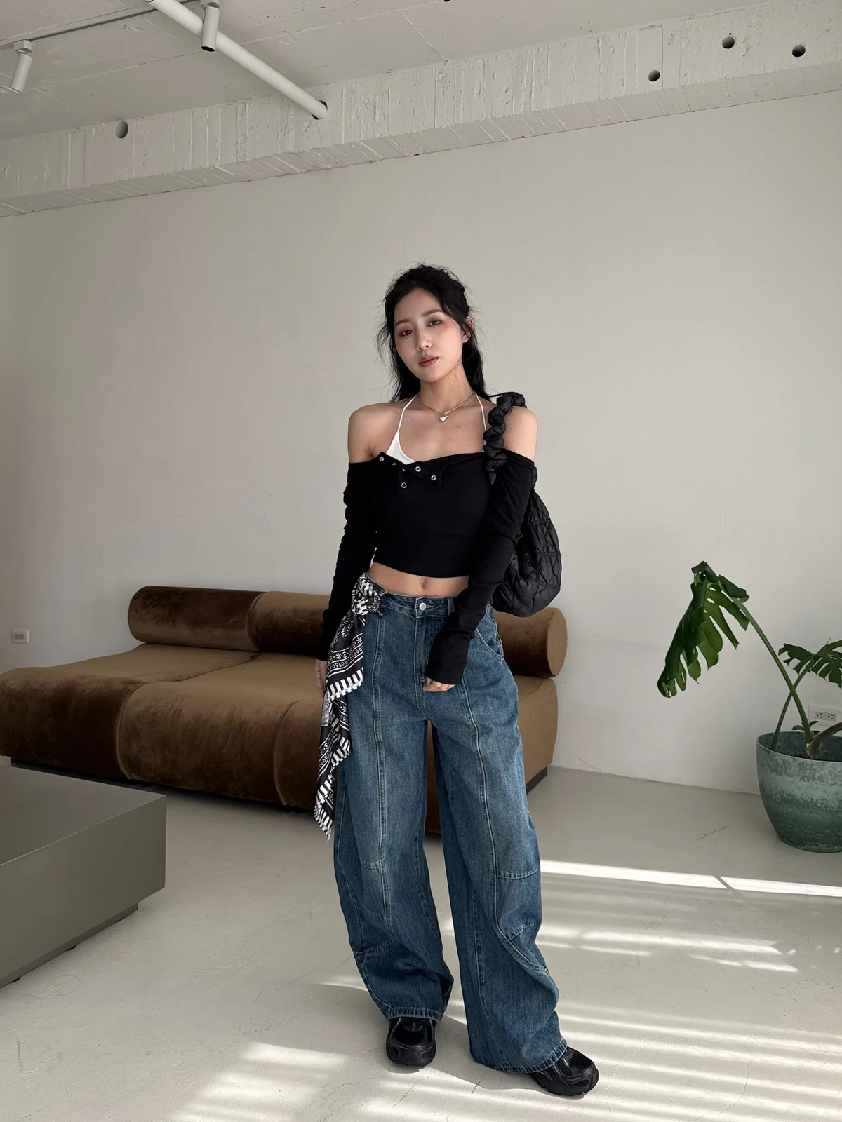 絲巾綁帶彎刀牛仔長褲/3colors