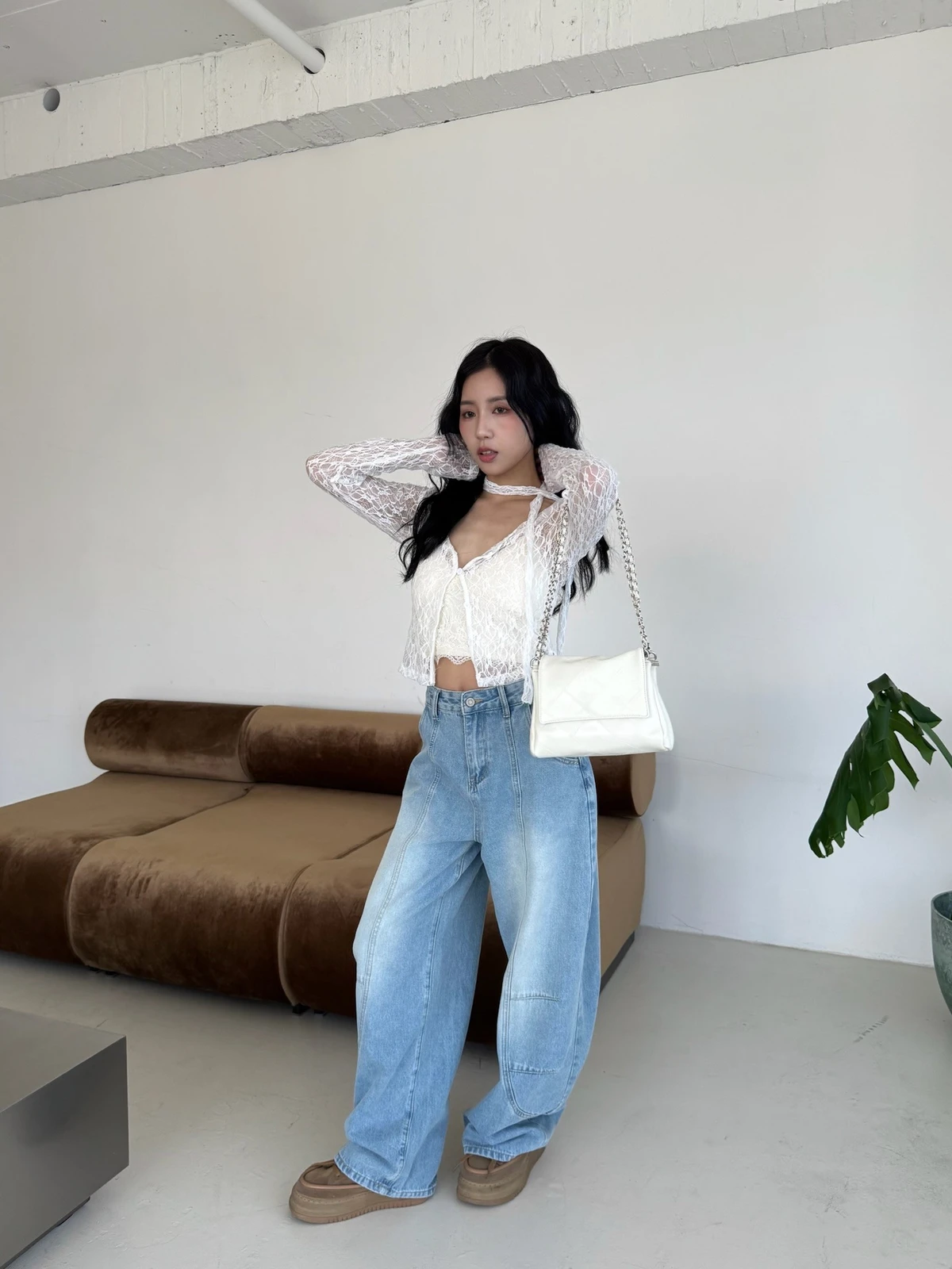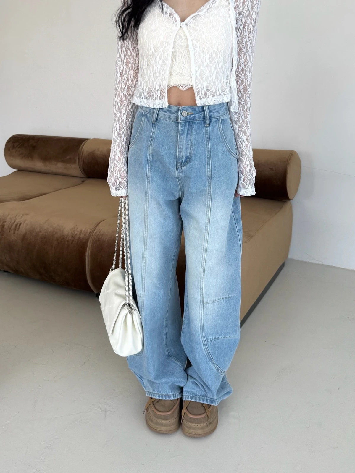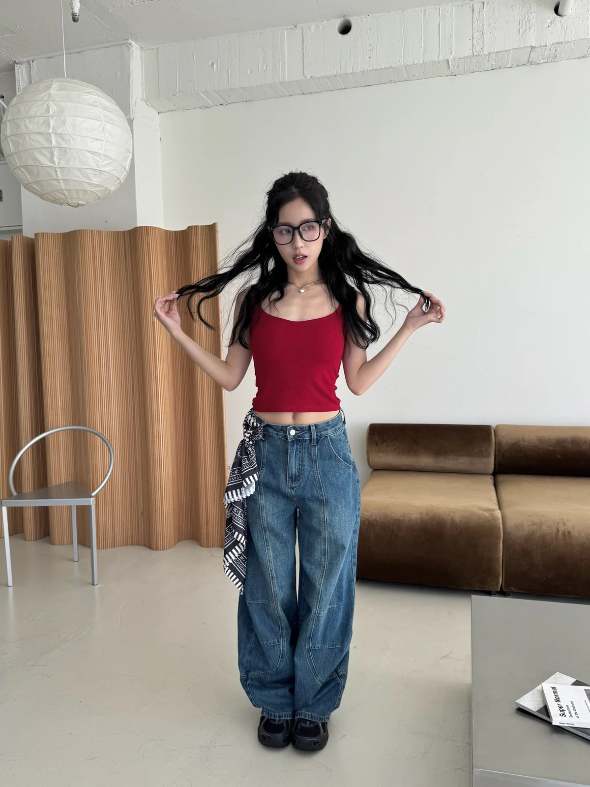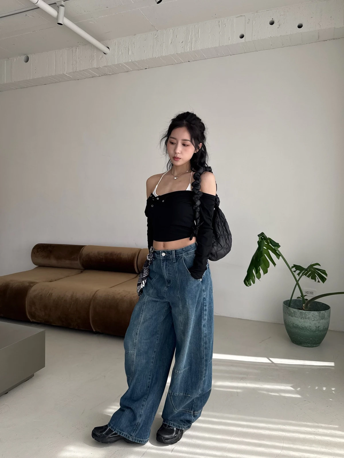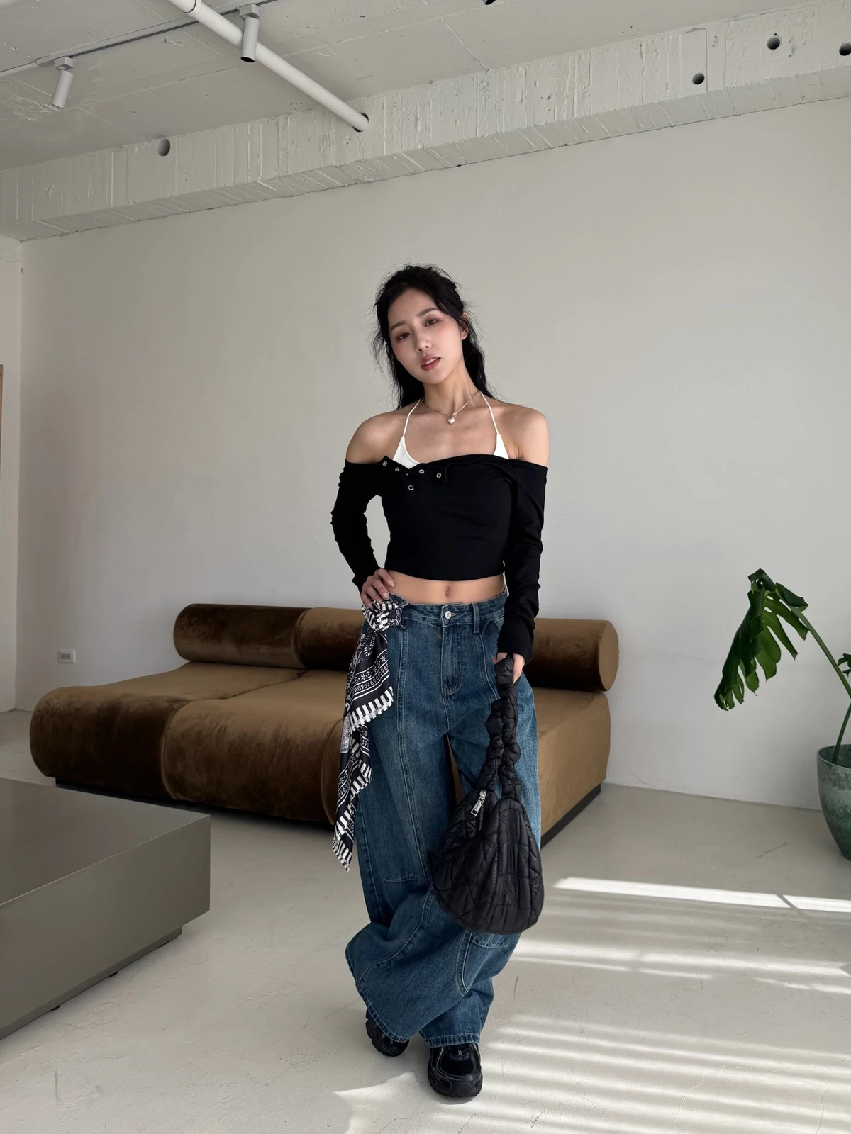 絲巾綁帶彎刀牛仔長褲/3colors