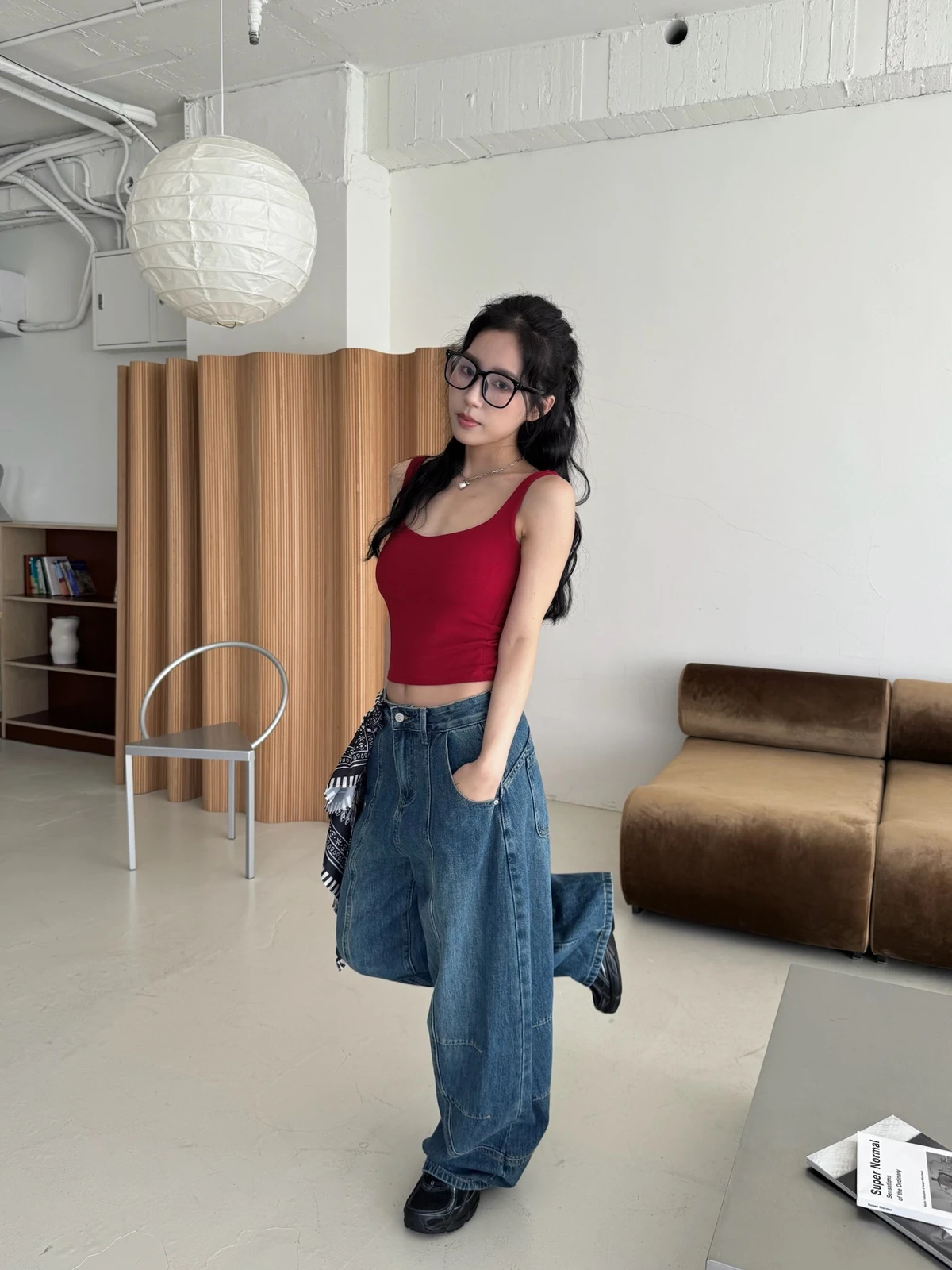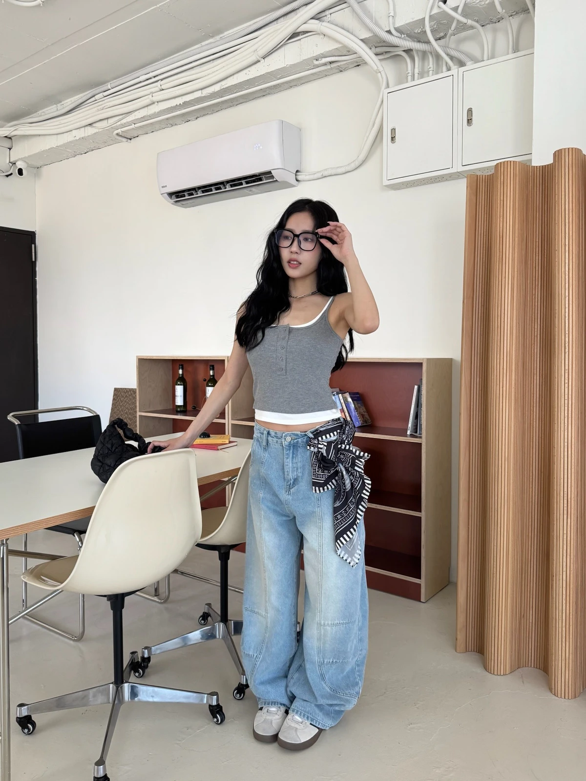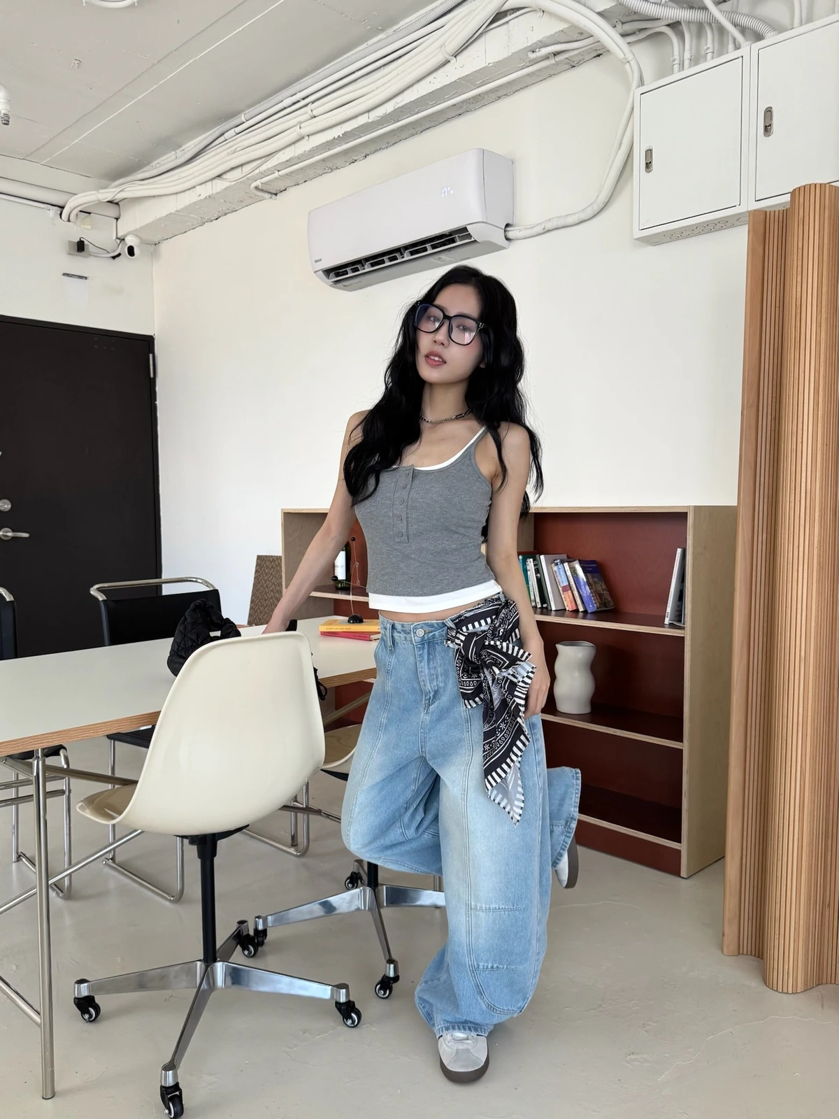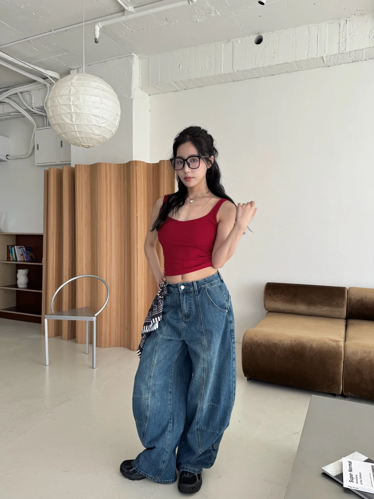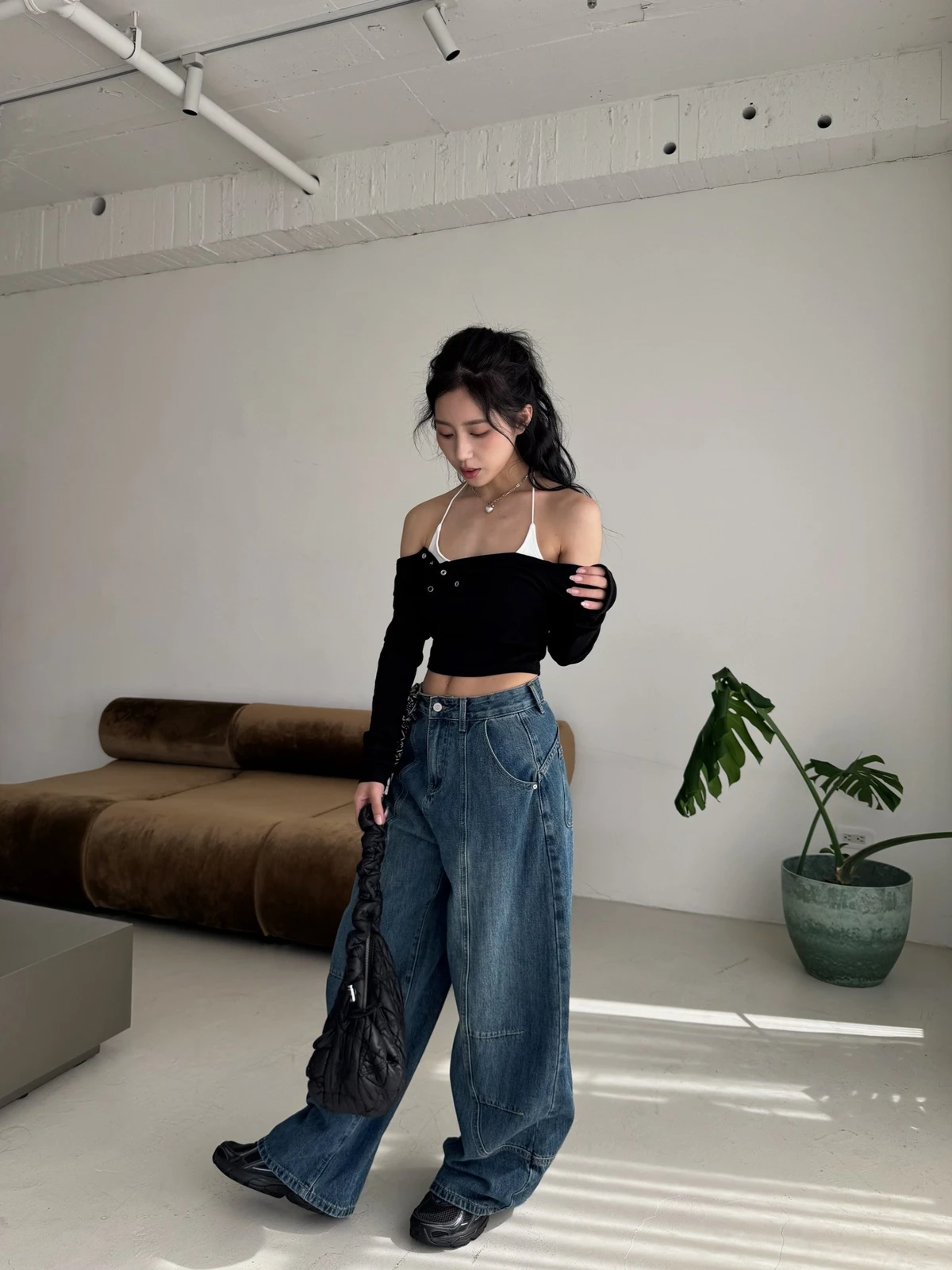 絲巾綁帶彎刀牛仔長褲/3colors