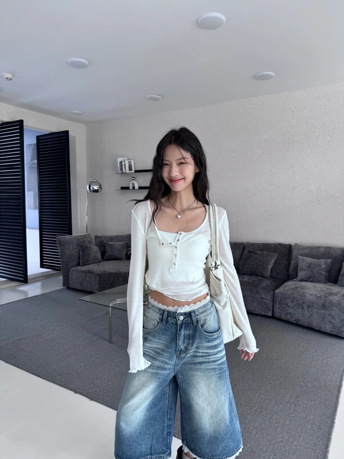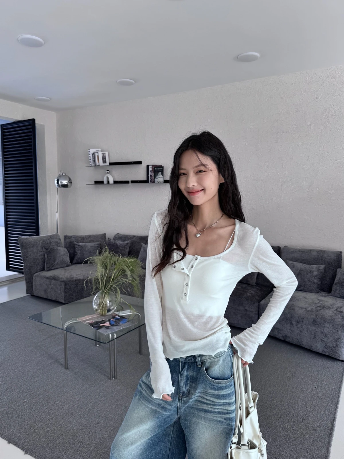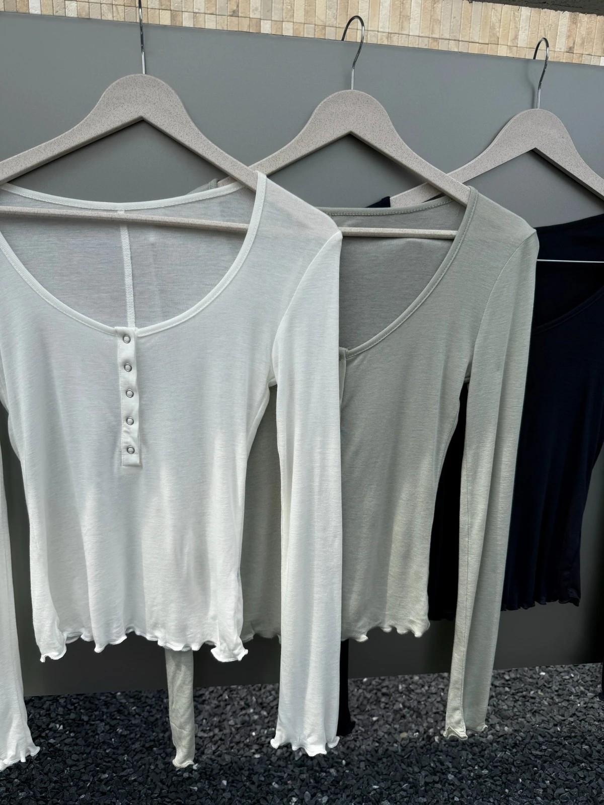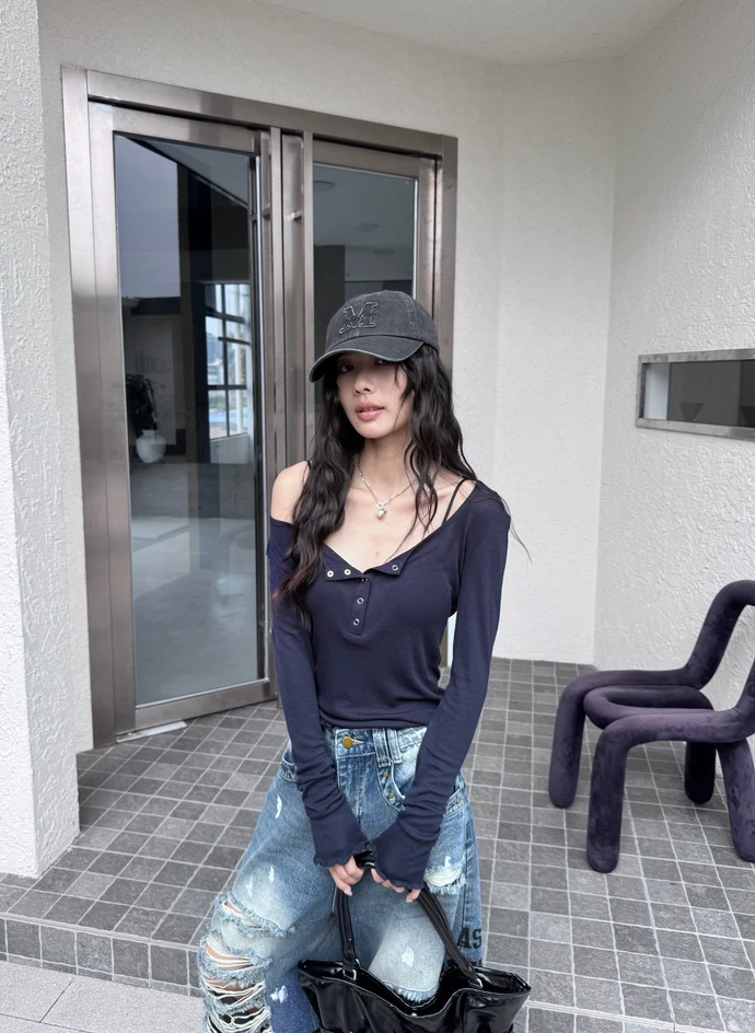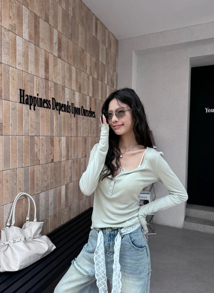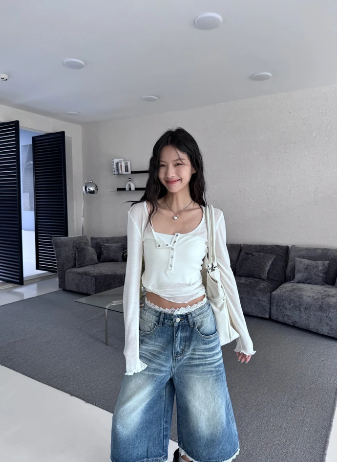 本期推薦!木耳邊壓扣透膚上衣/3colors