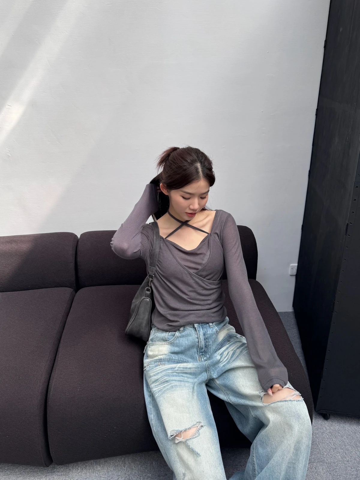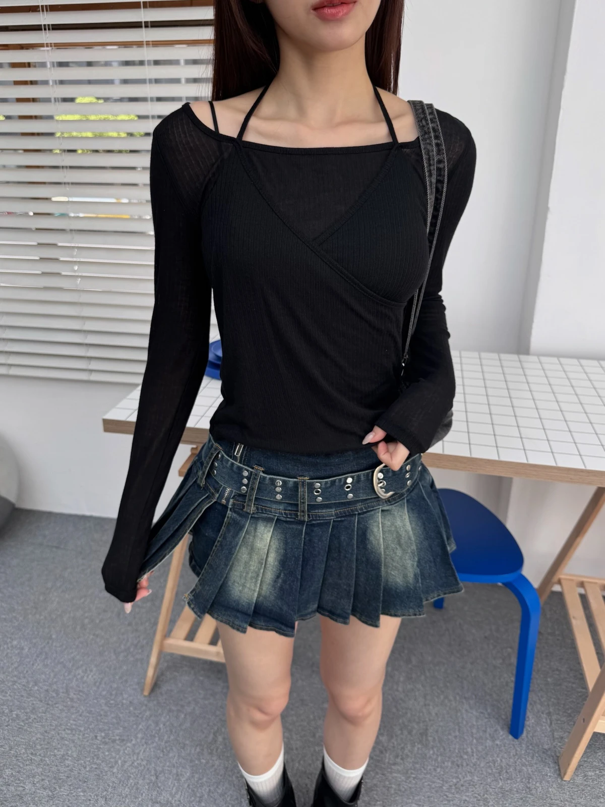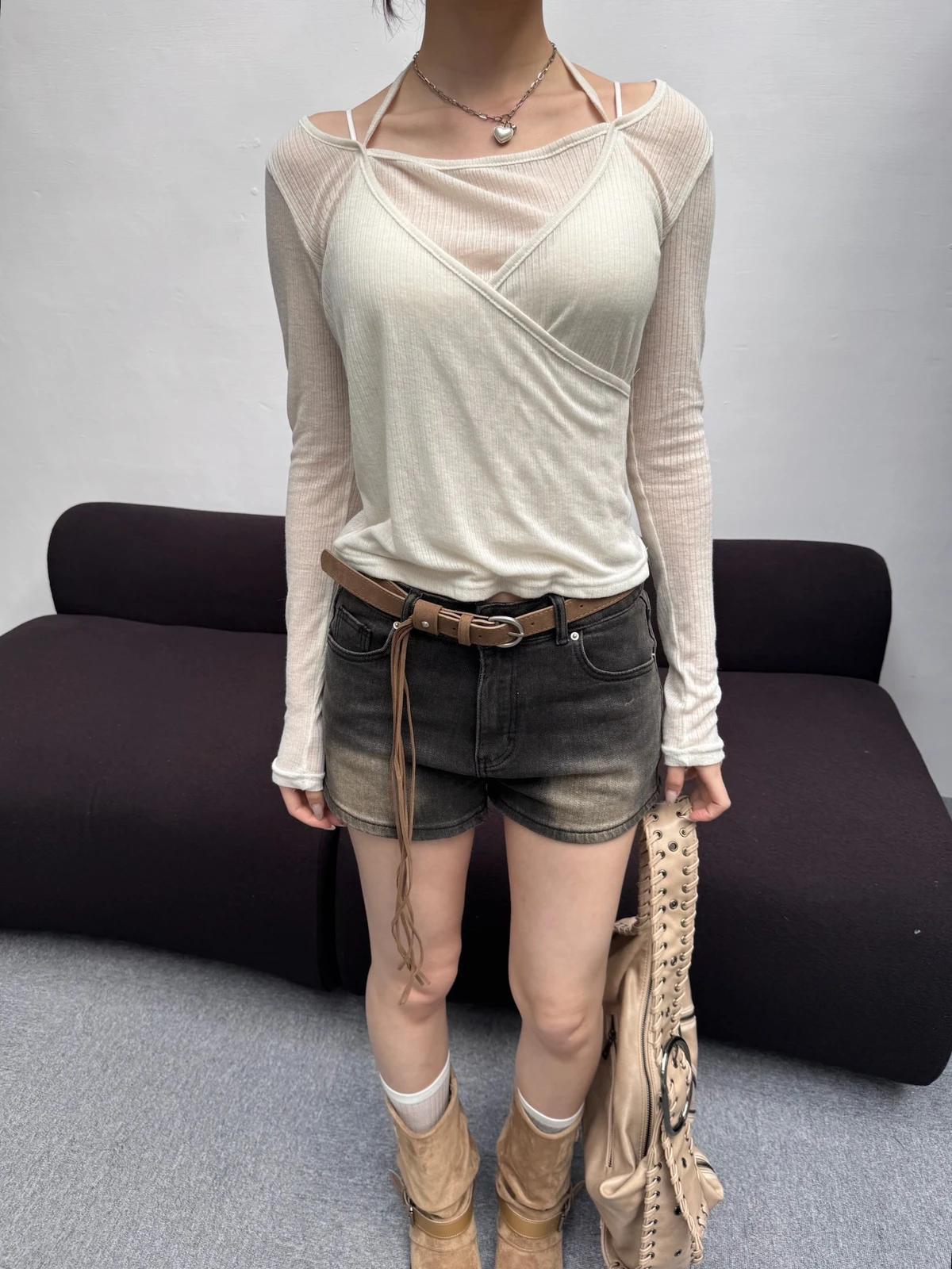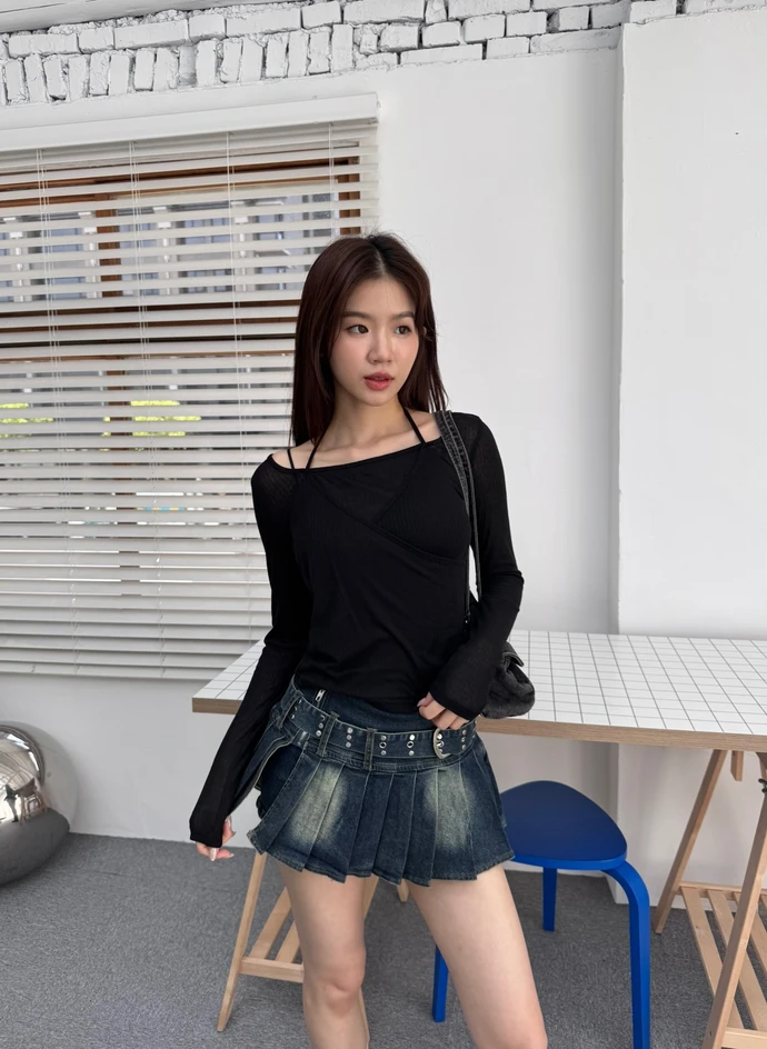 微透針織綁帶上衣/3colors