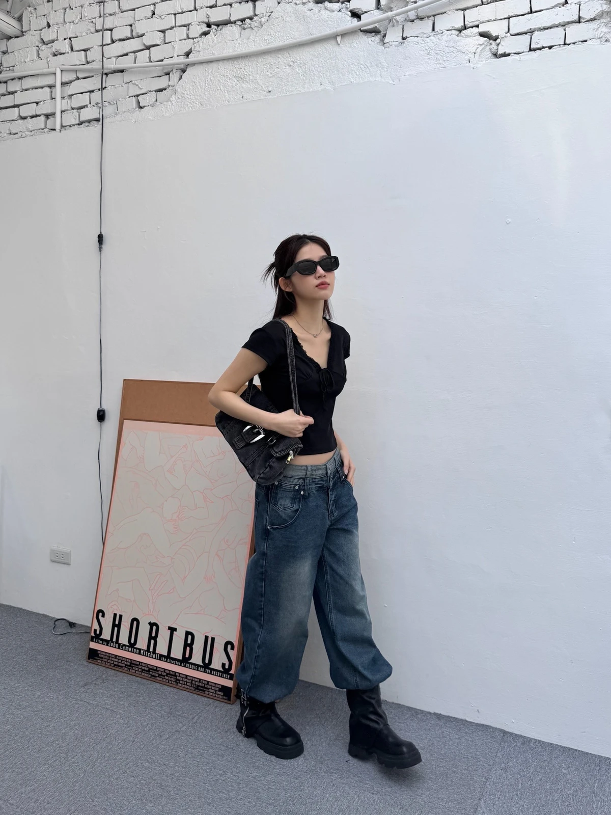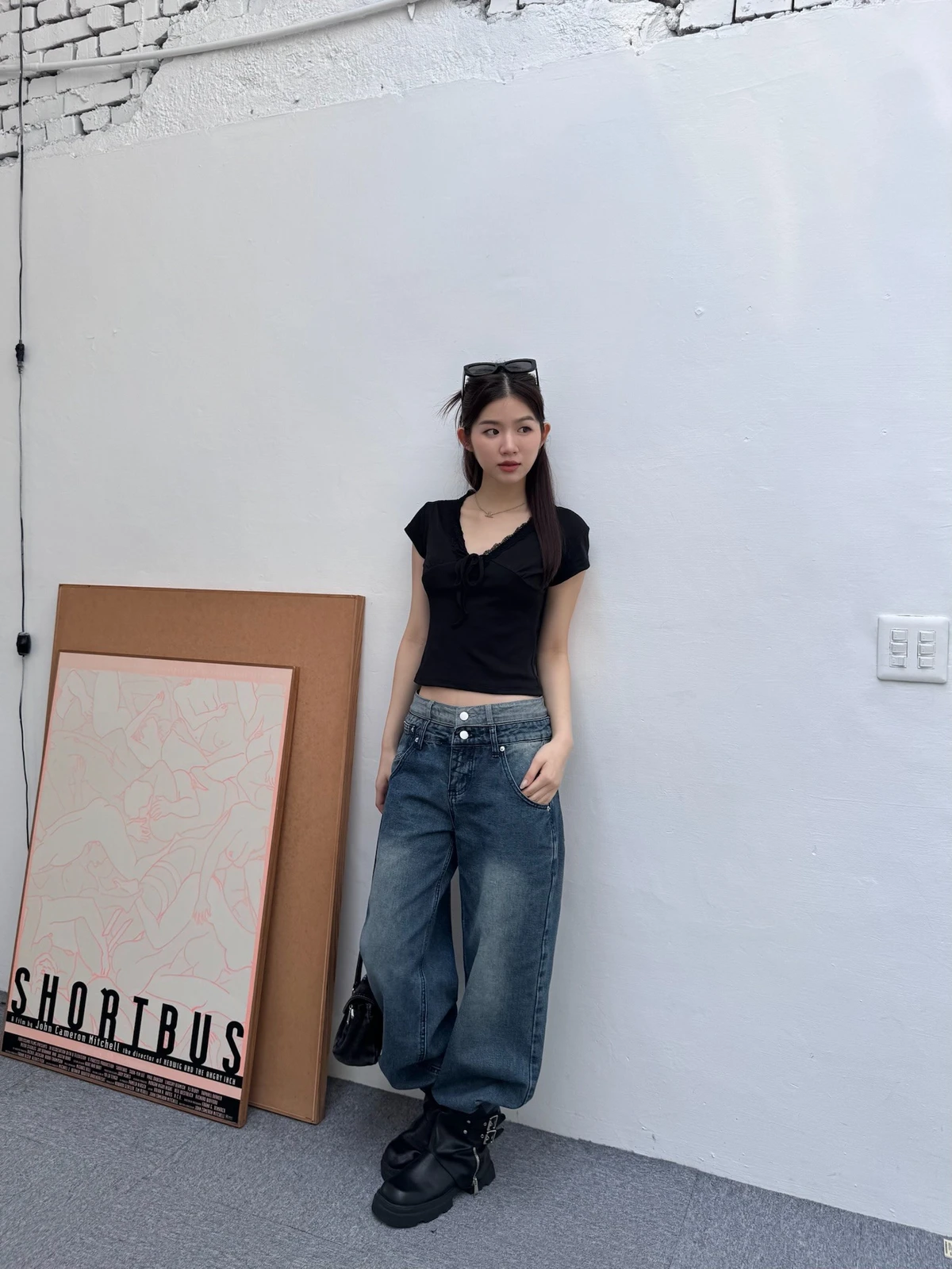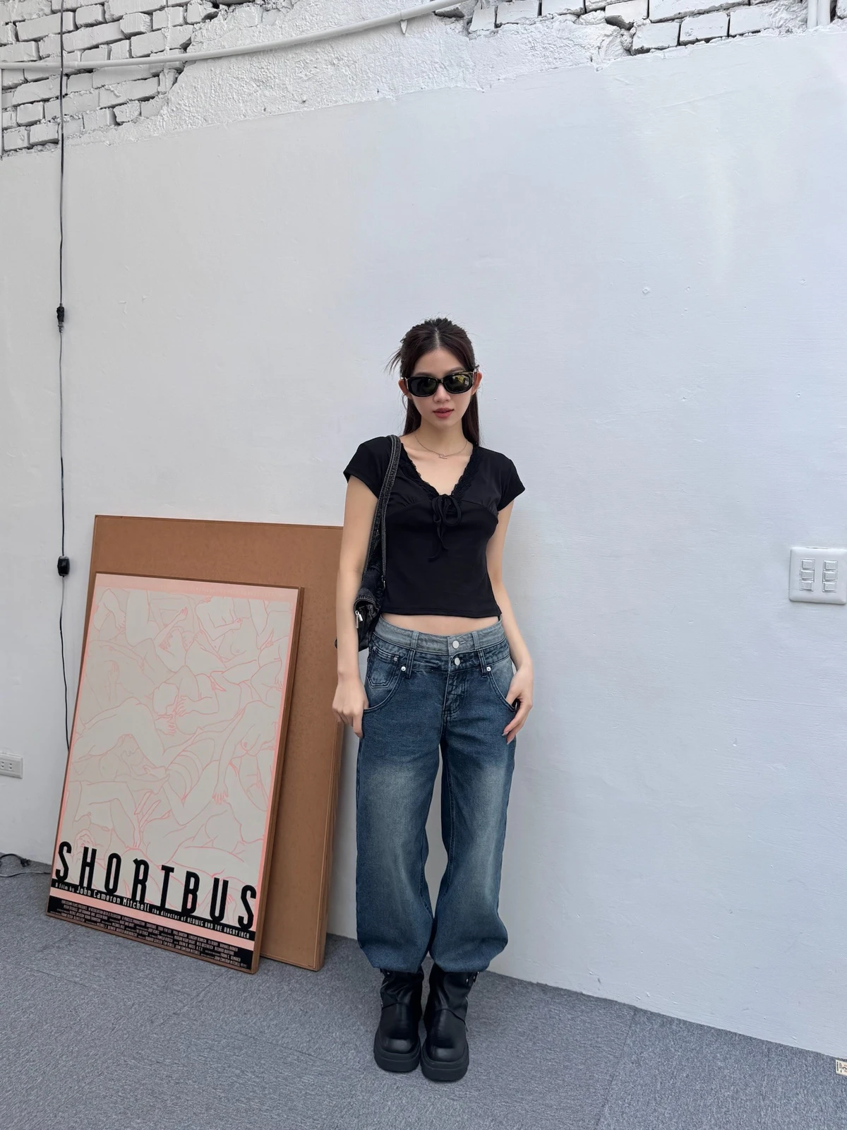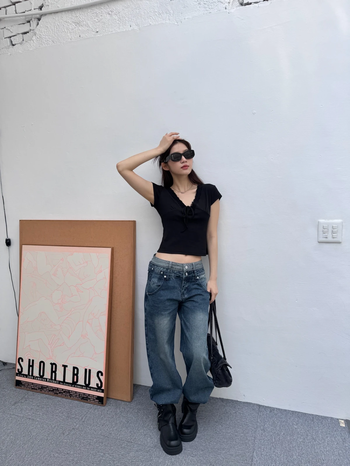 本期推薦!蕾絲滾邊綁繩V領上衣/2colors