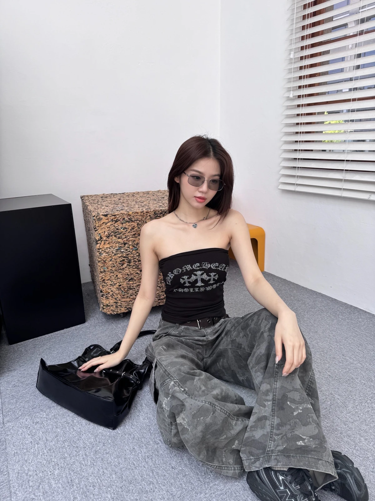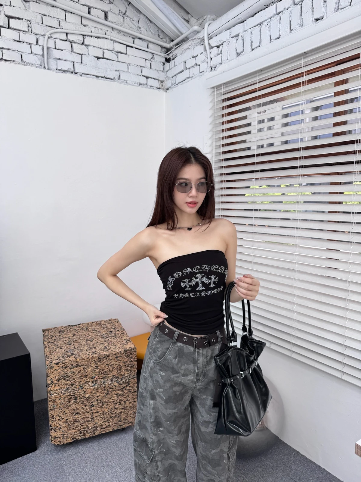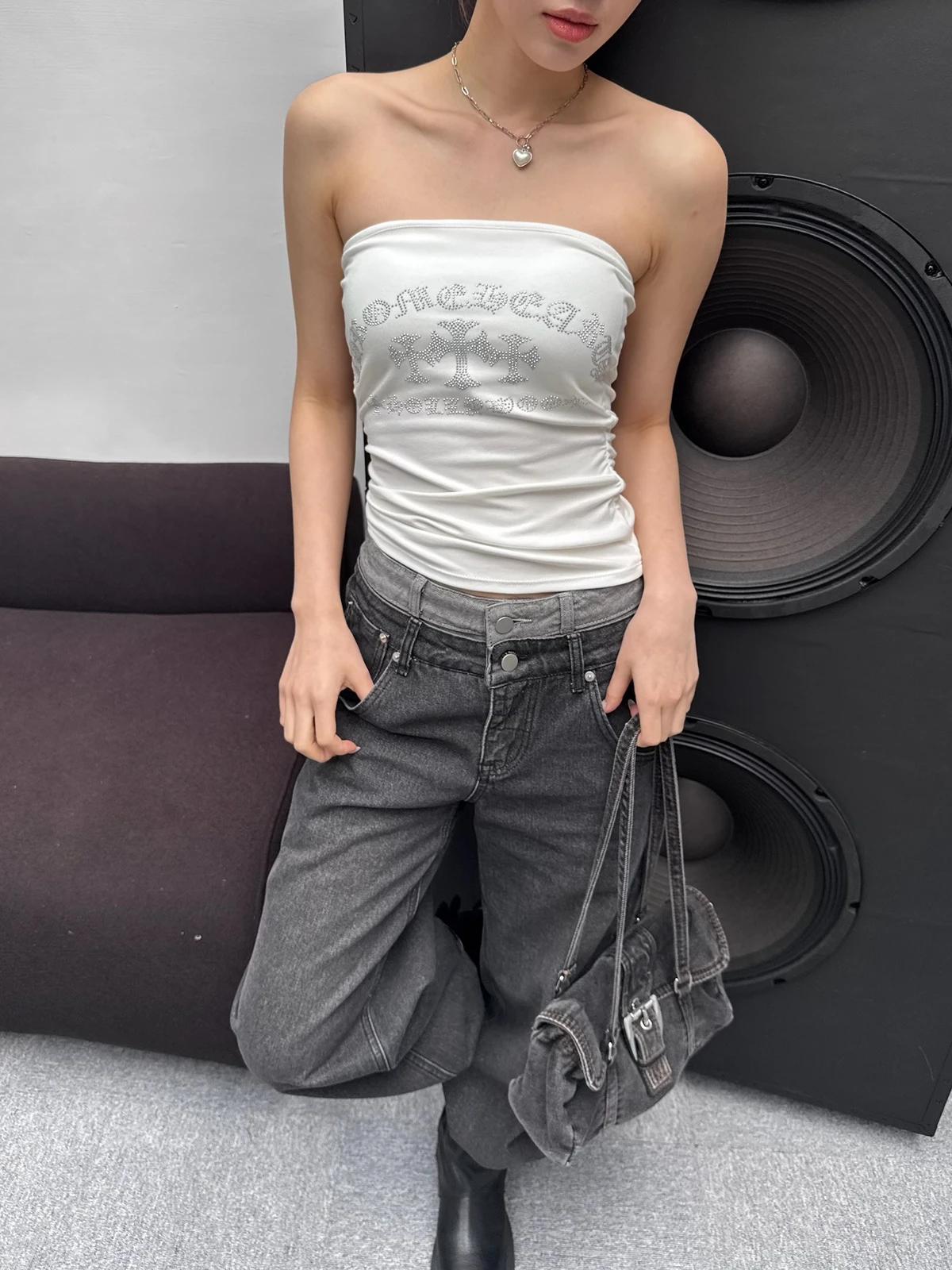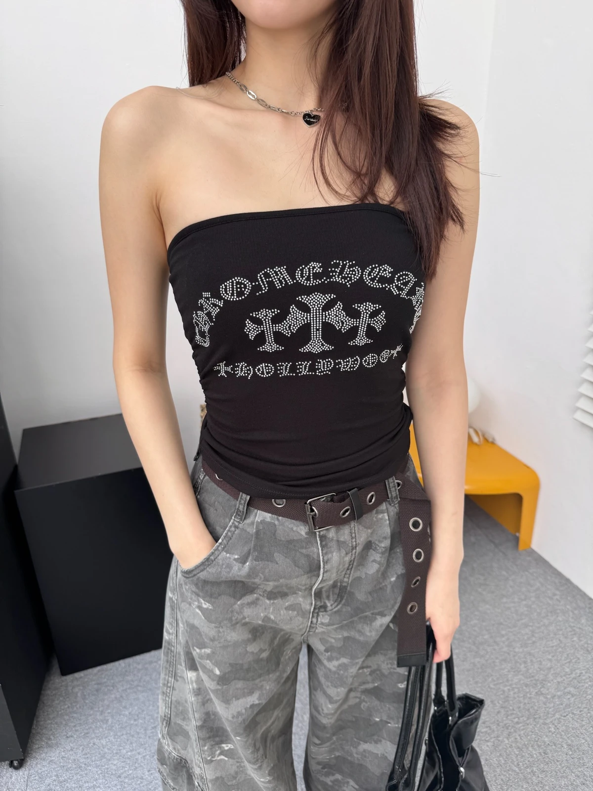推薦!美式哥德十字鑽平口Bra背心/2colors