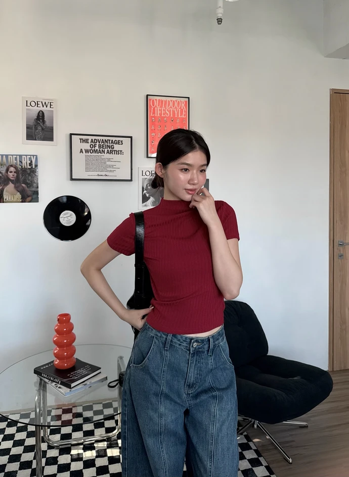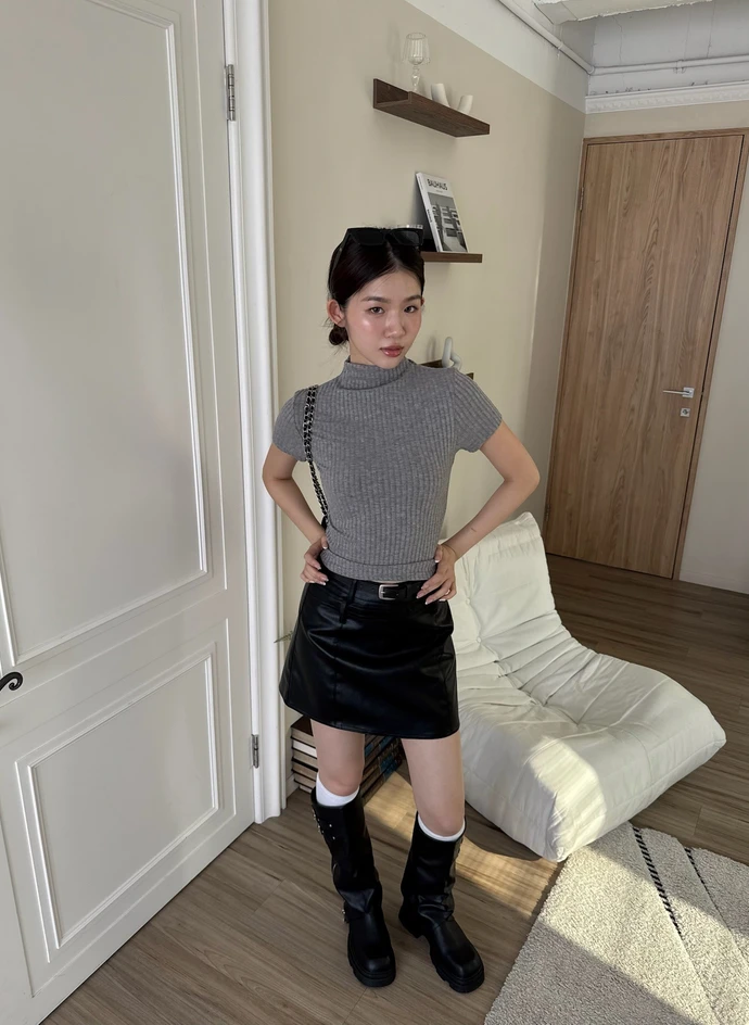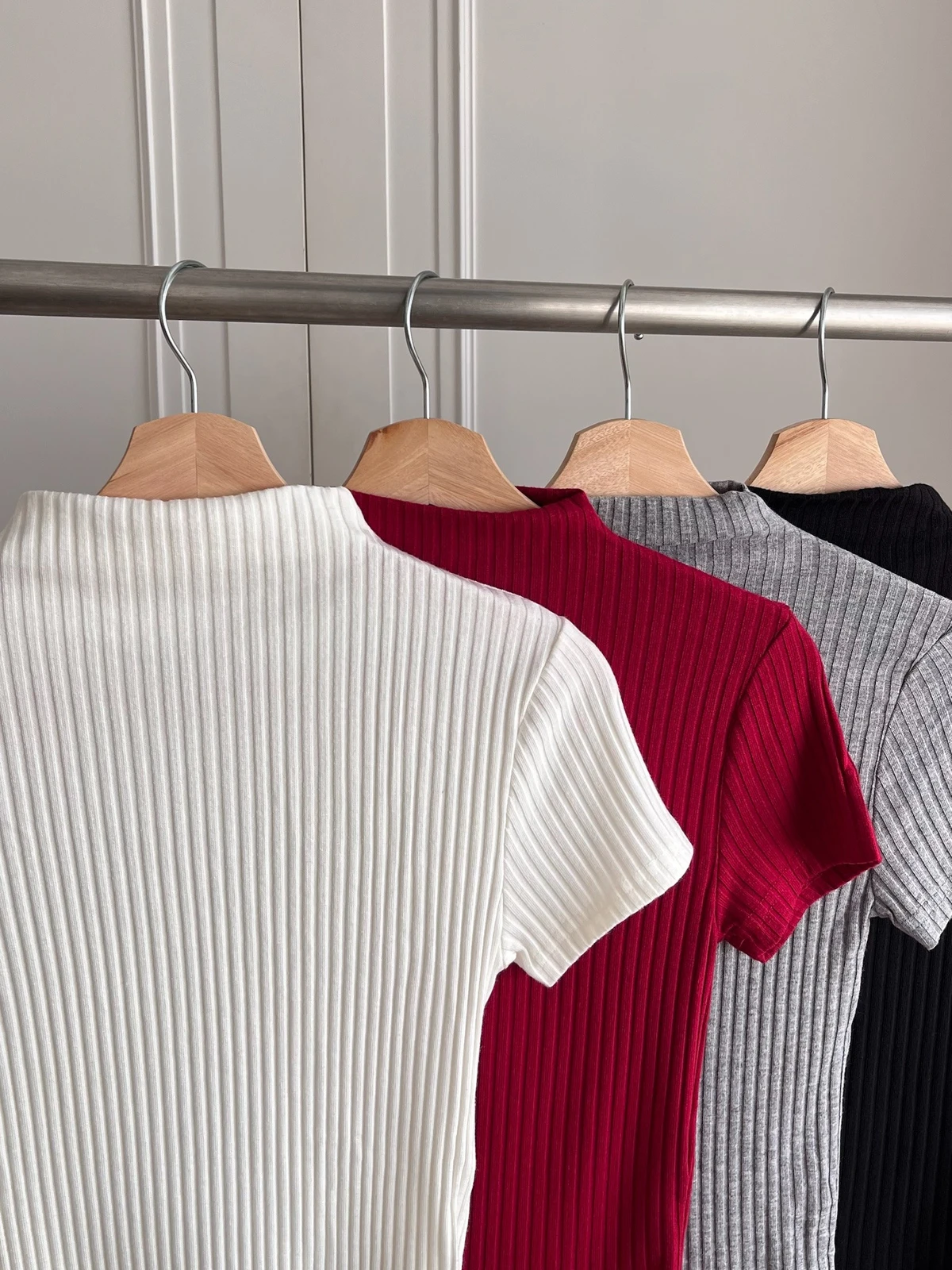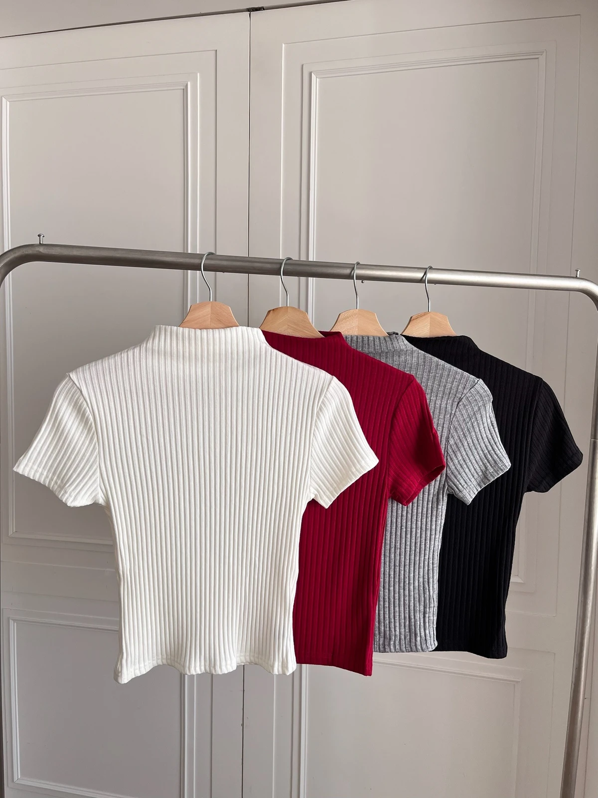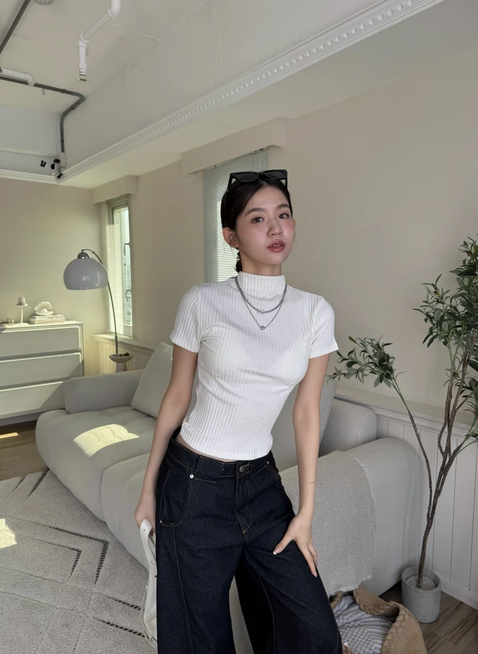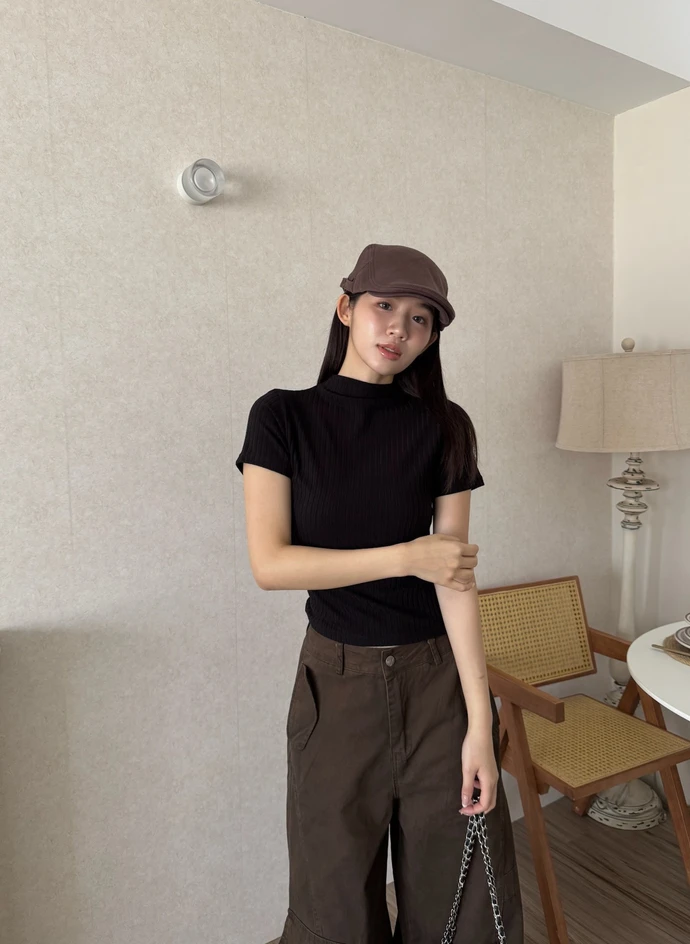 簡約坑條針織微立領短袖上衣/4colors
