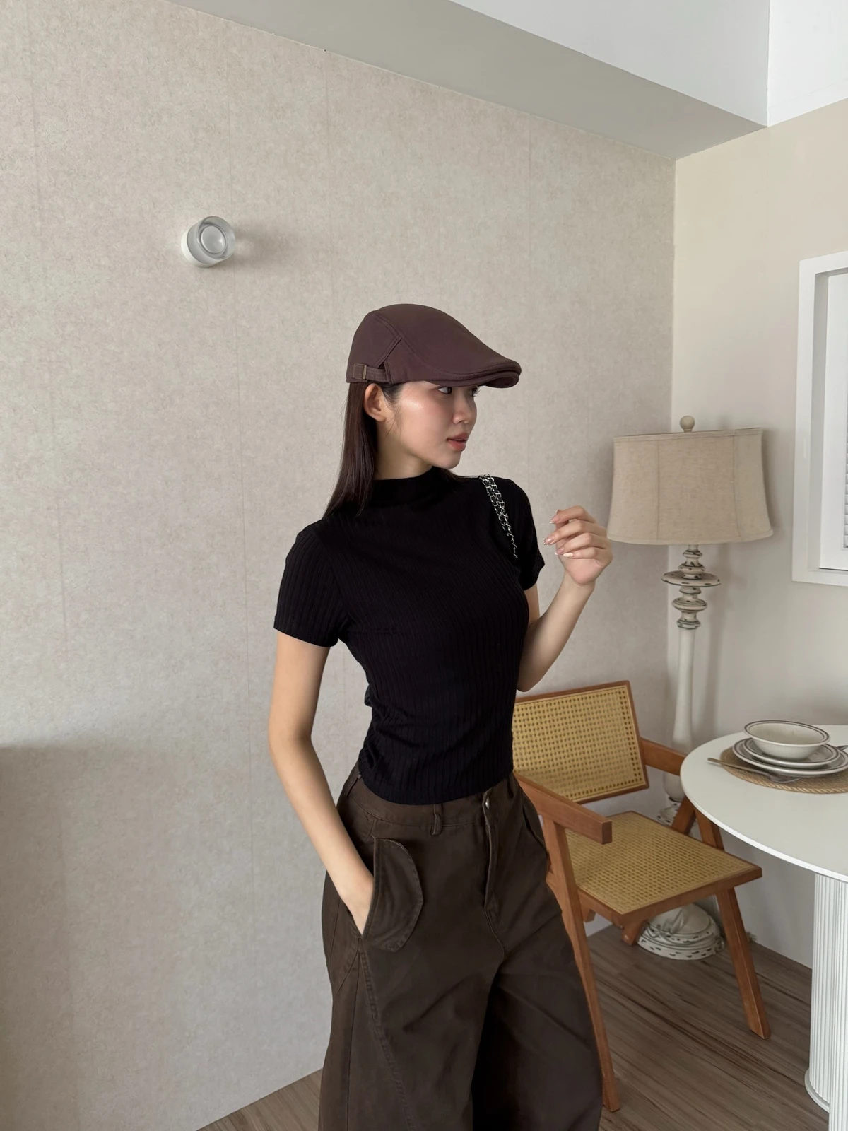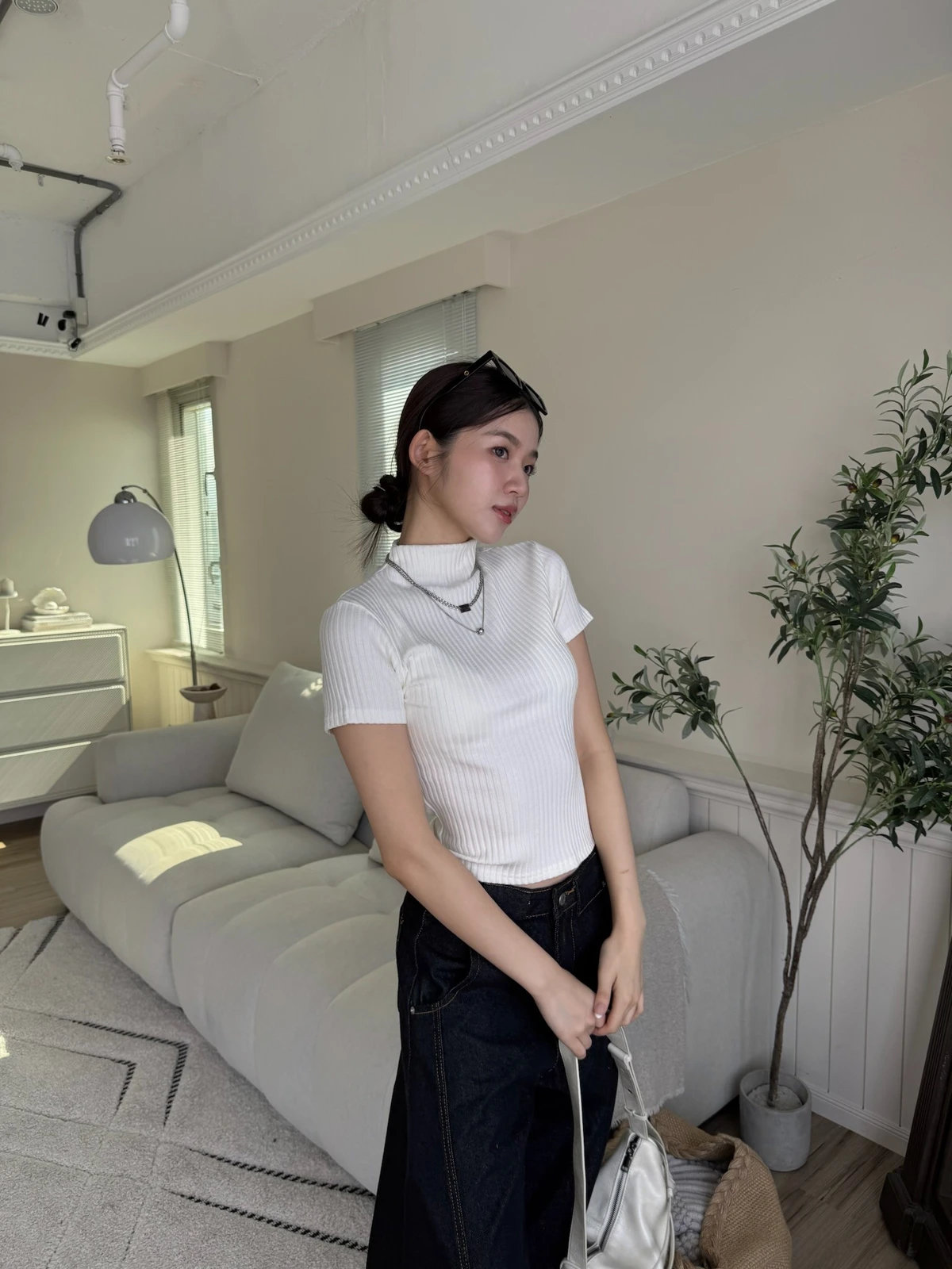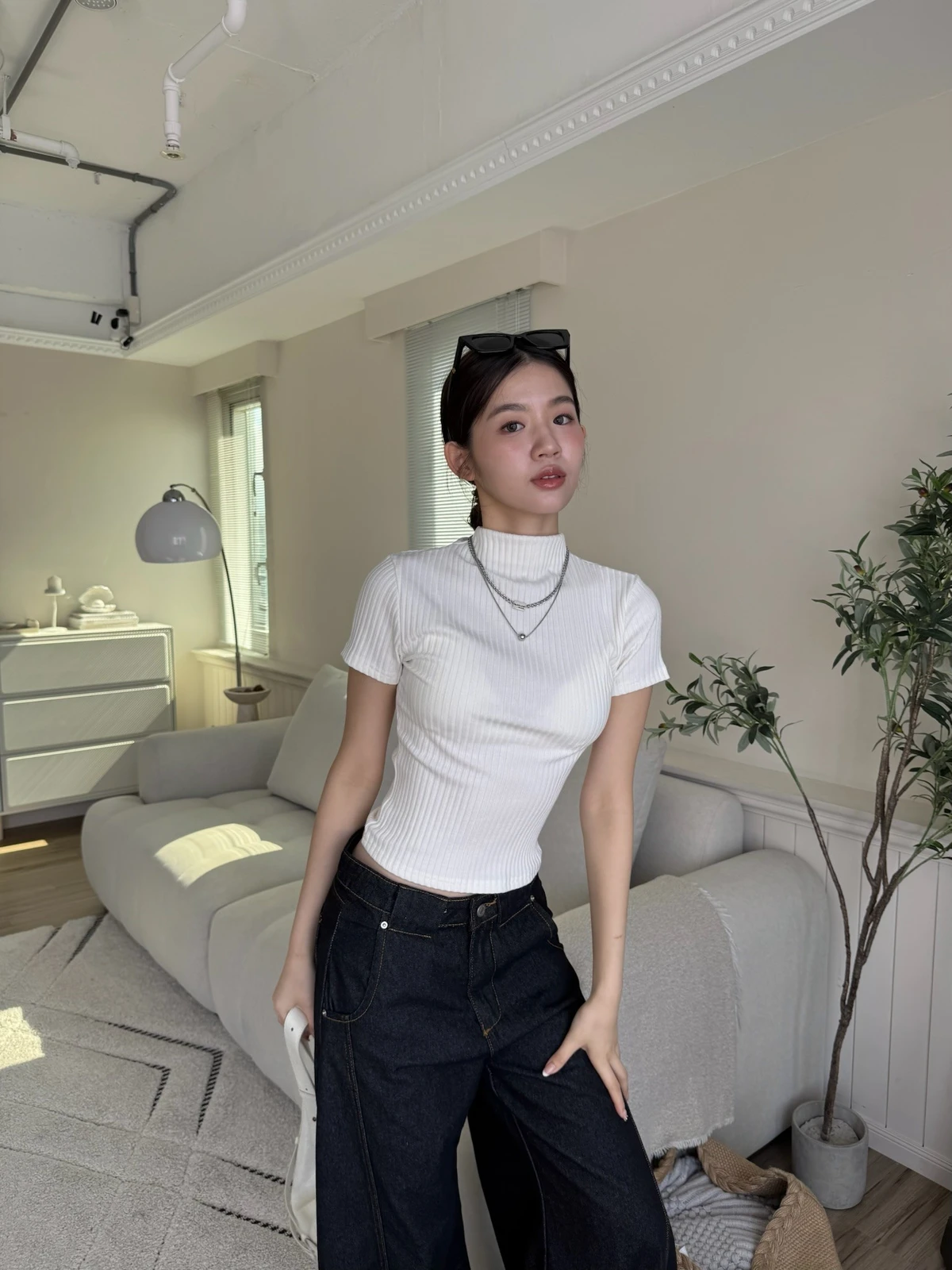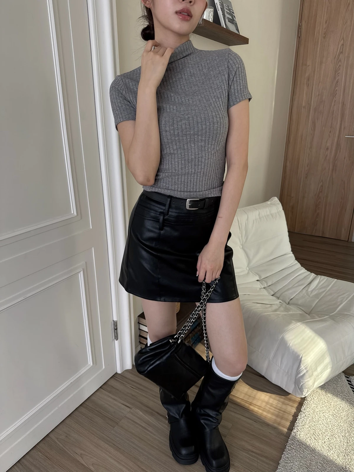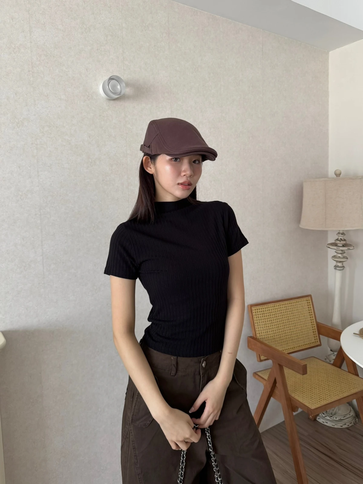 簡約坑條針織微立領短袖上衣/4colors