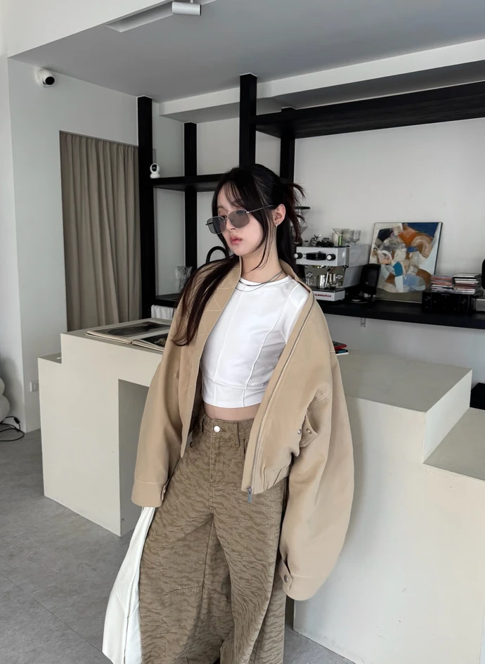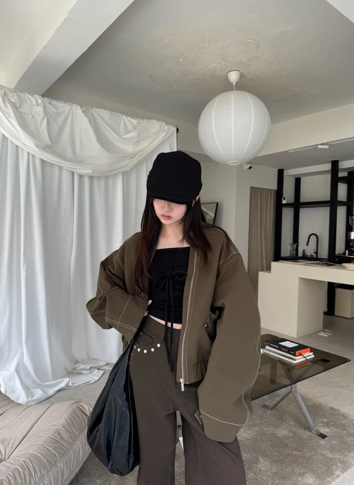 時尚歐膩無領車線拉鍊外套/2colors