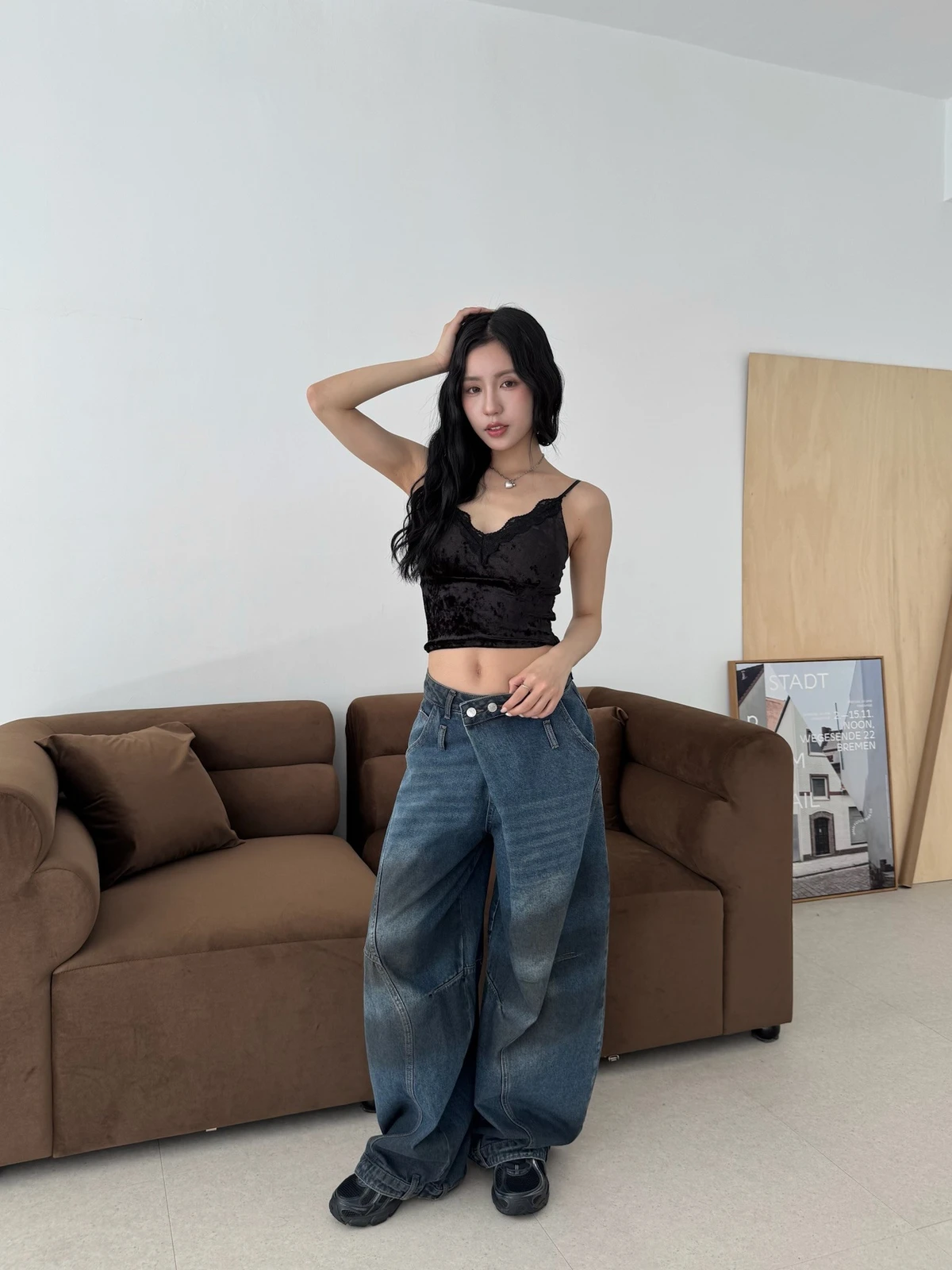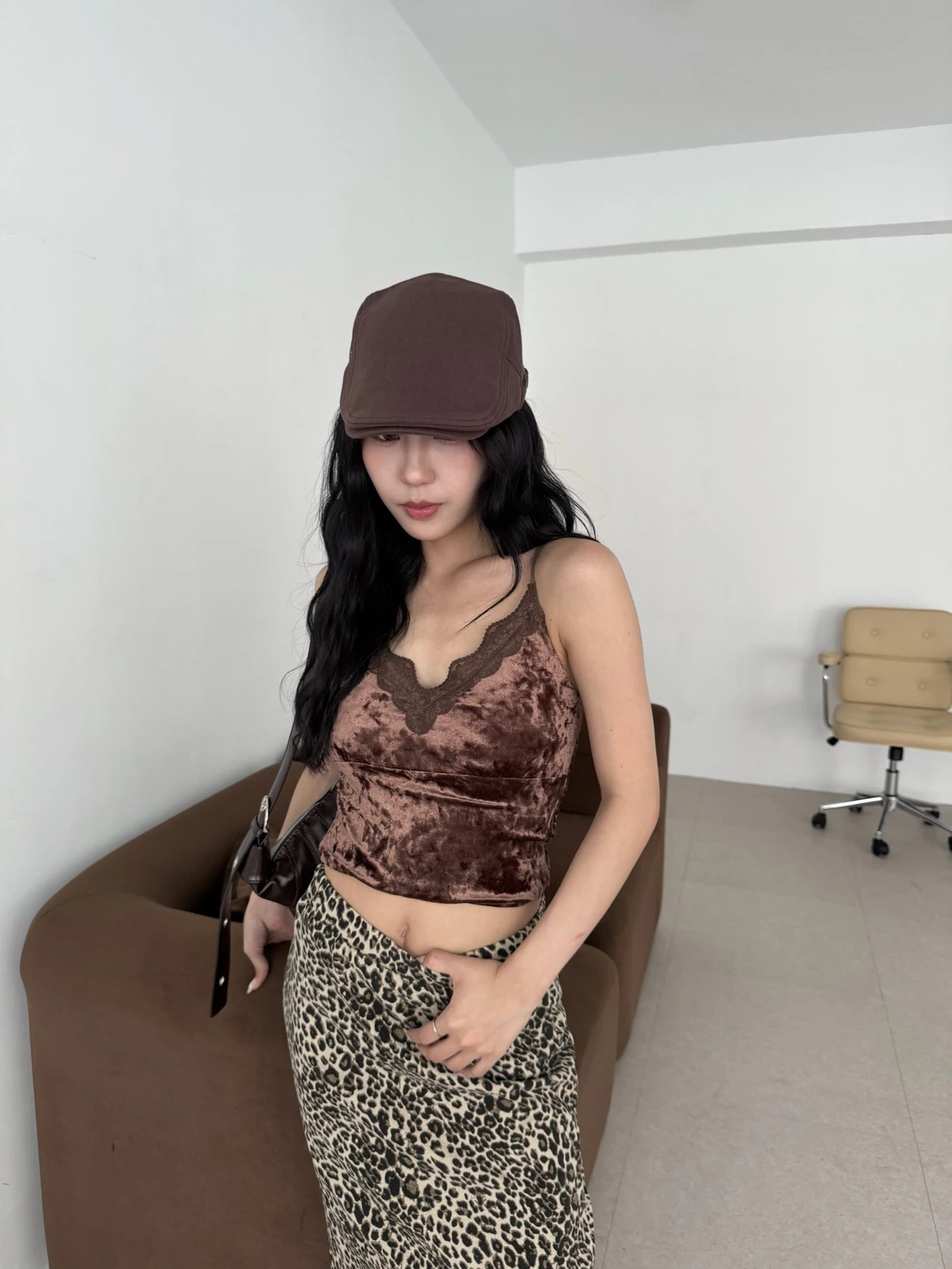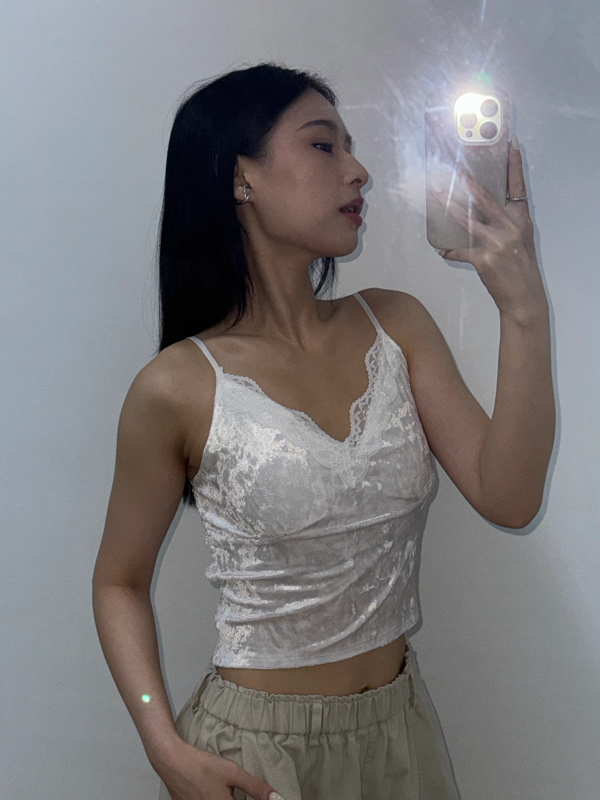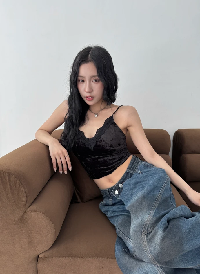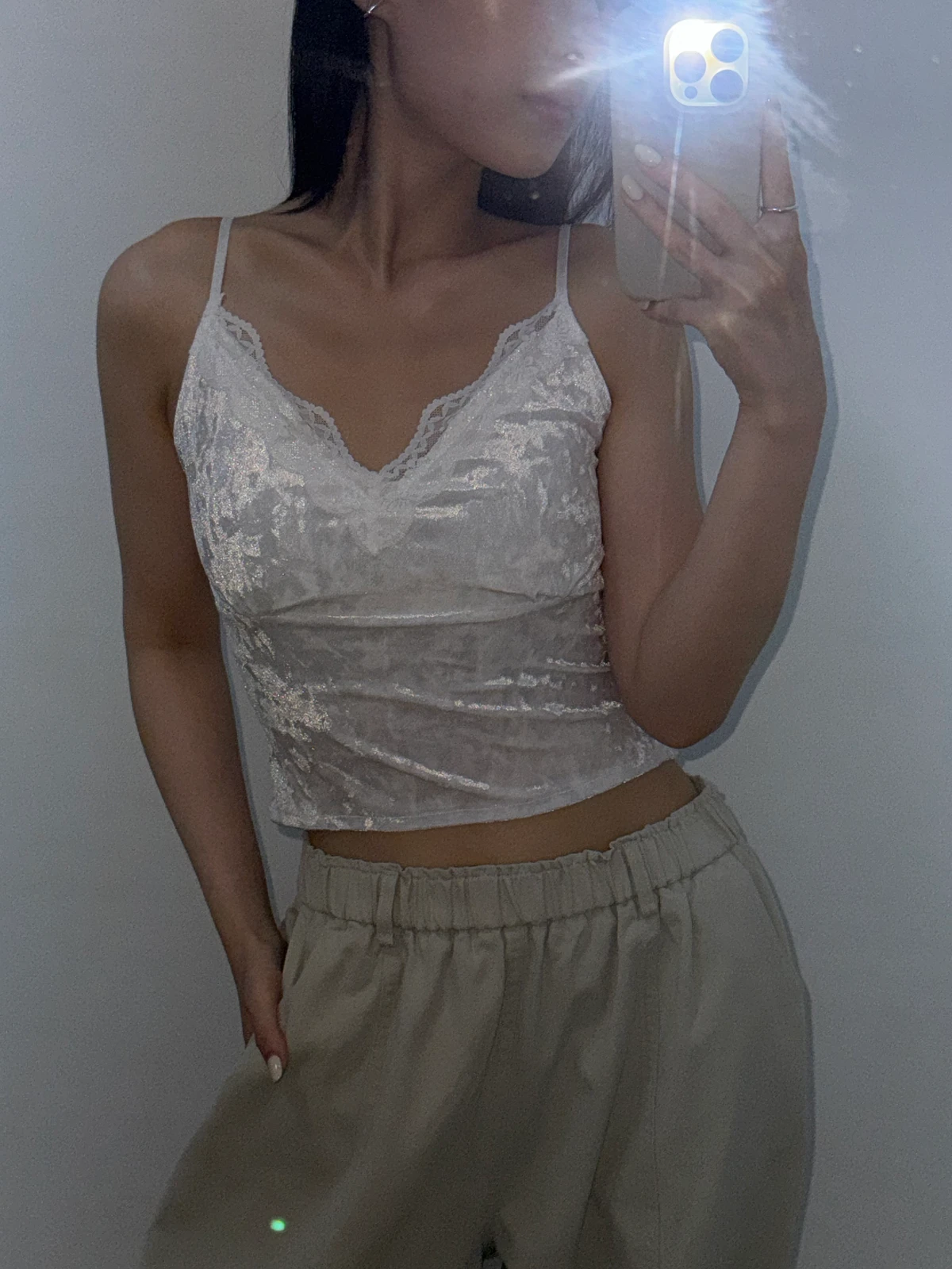 法式絲絨蕾絲滾邊細肩帶Bra Top/3colors