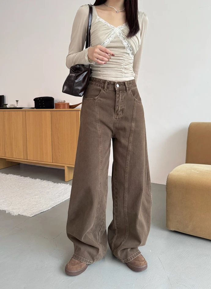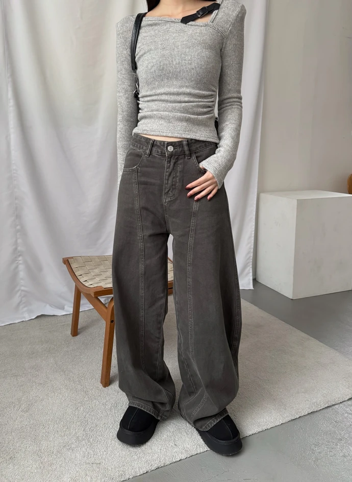 車線斜紋布彎刀牛仔長褲/2colors