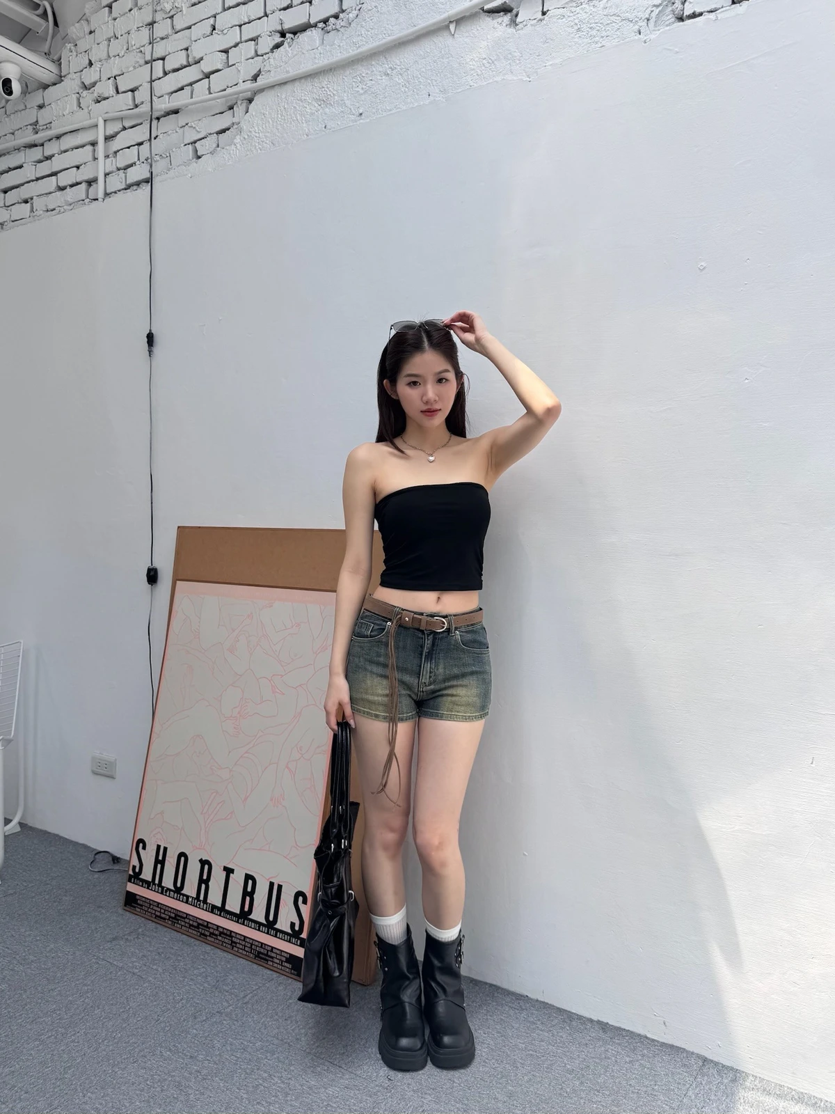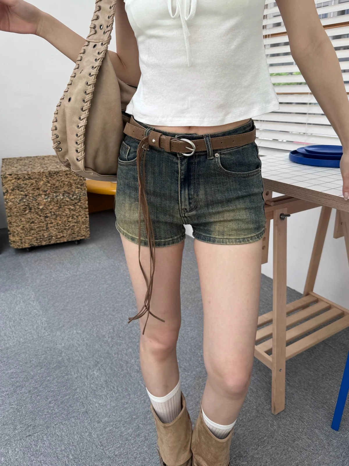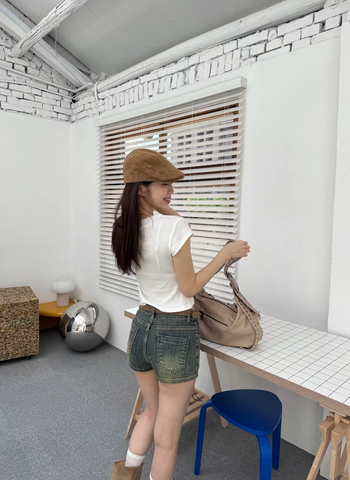 超彈力洗水牛仔短褲-附腰帶/2colors