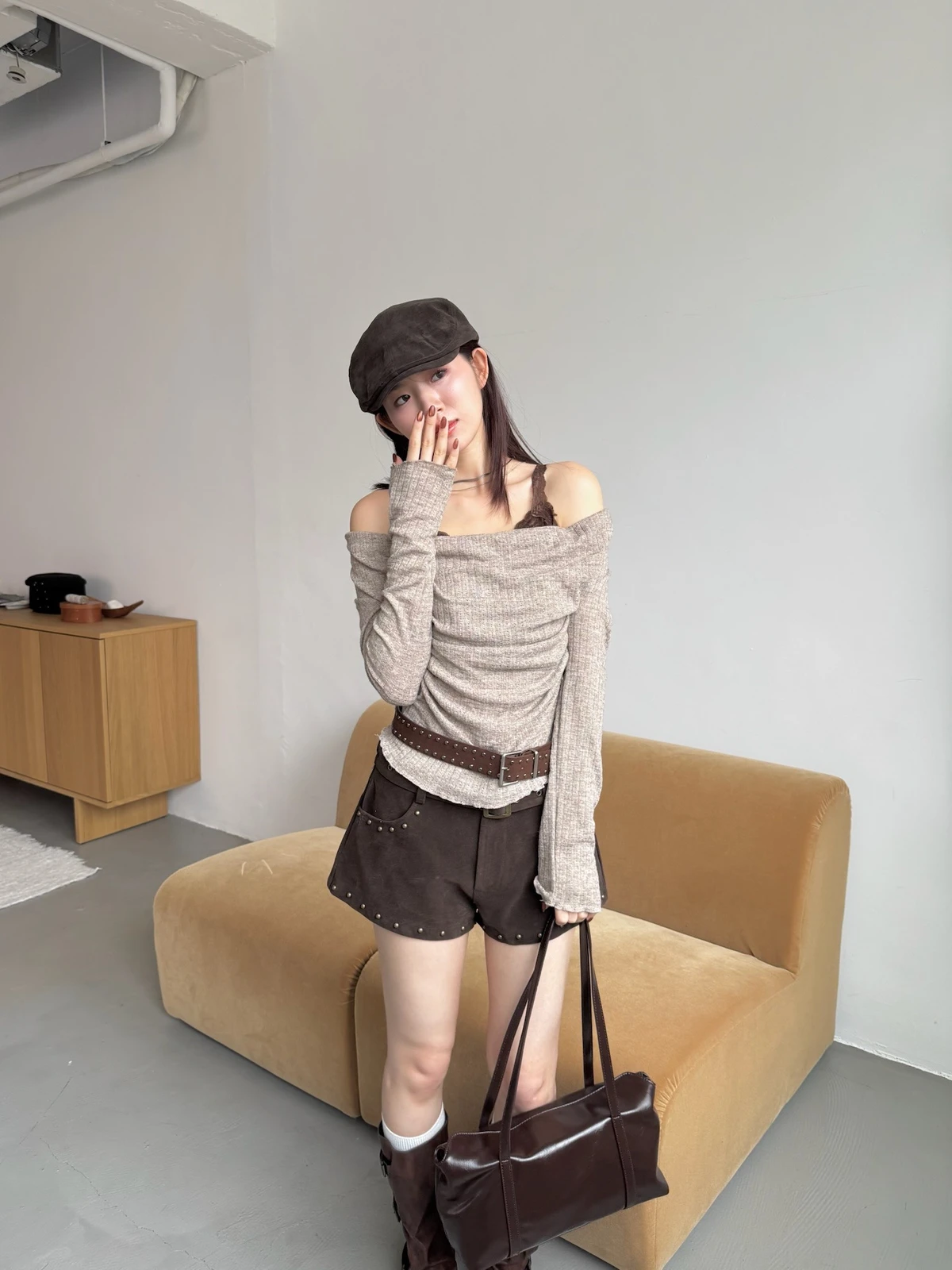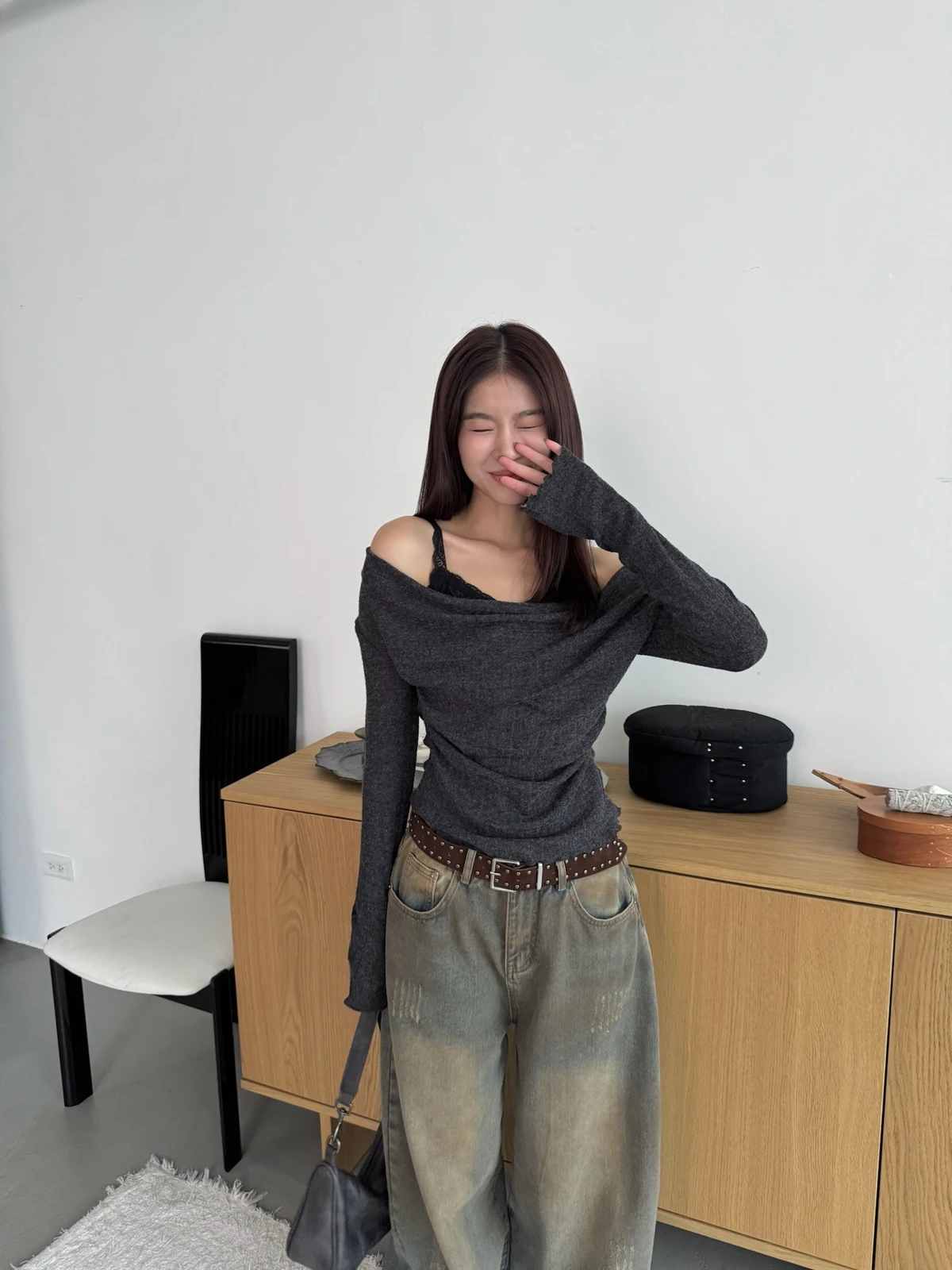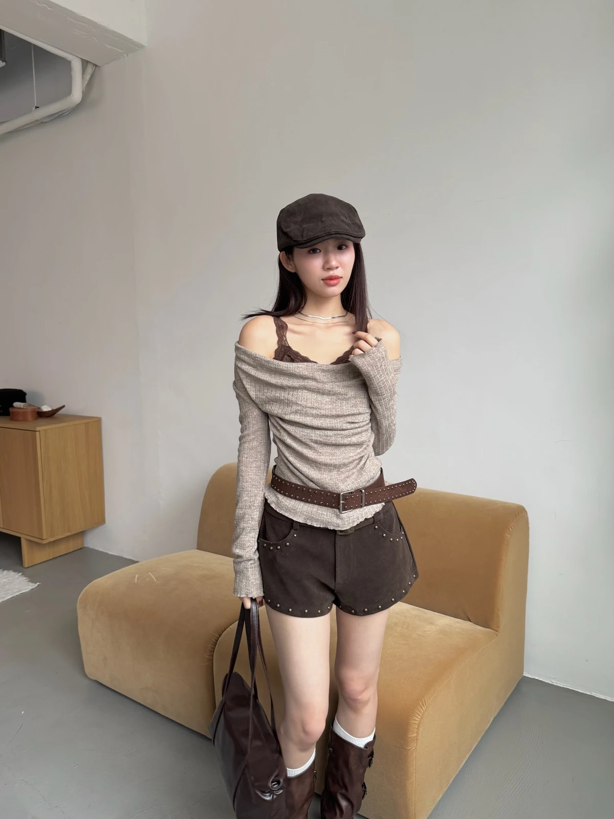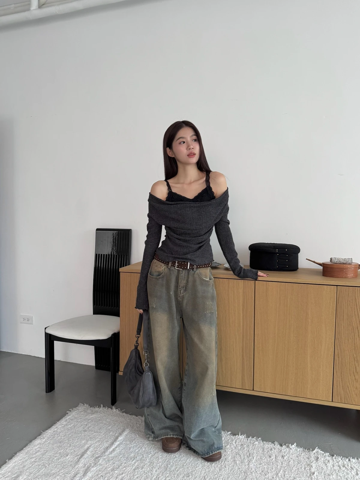 本期推薦!垂墜領蕾絲假兩件針織上衣-附皮帶/3colors