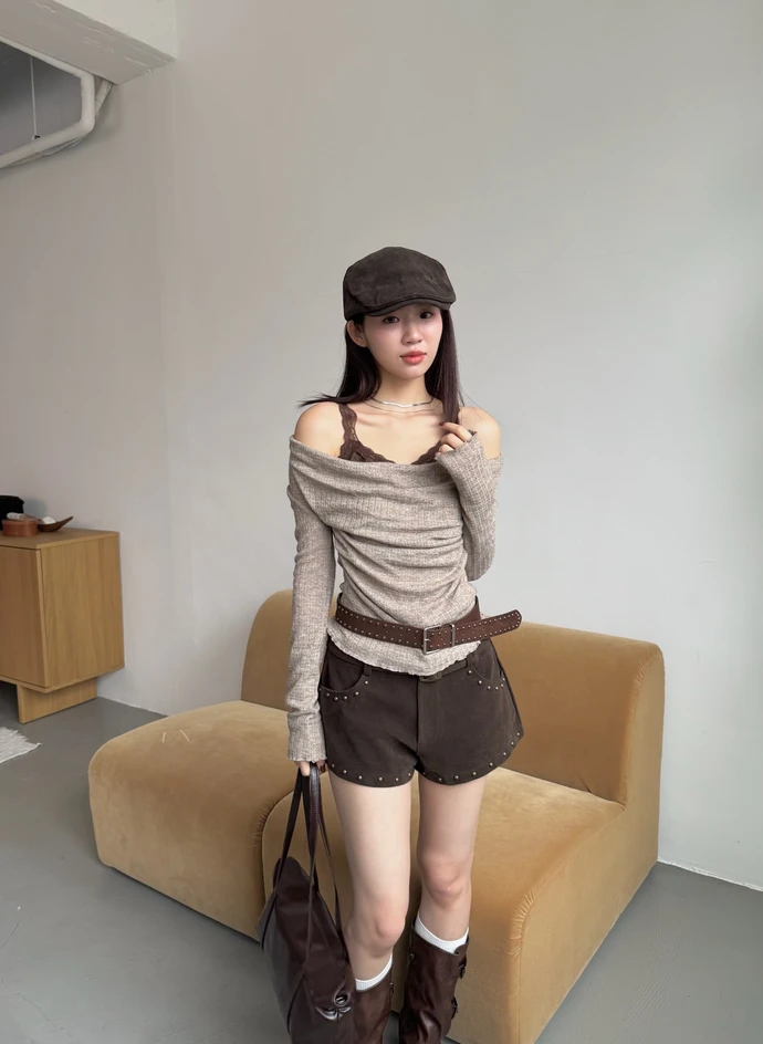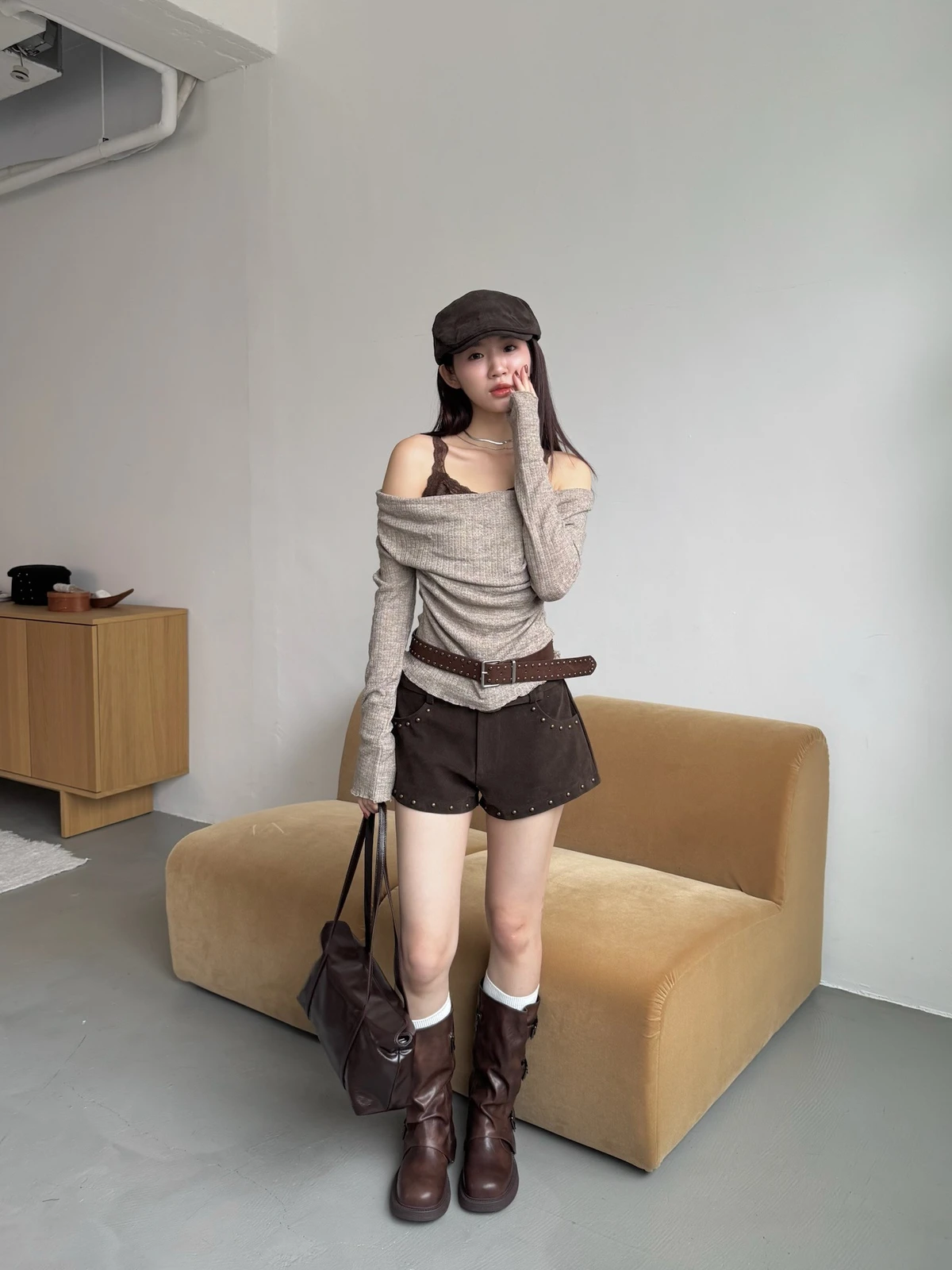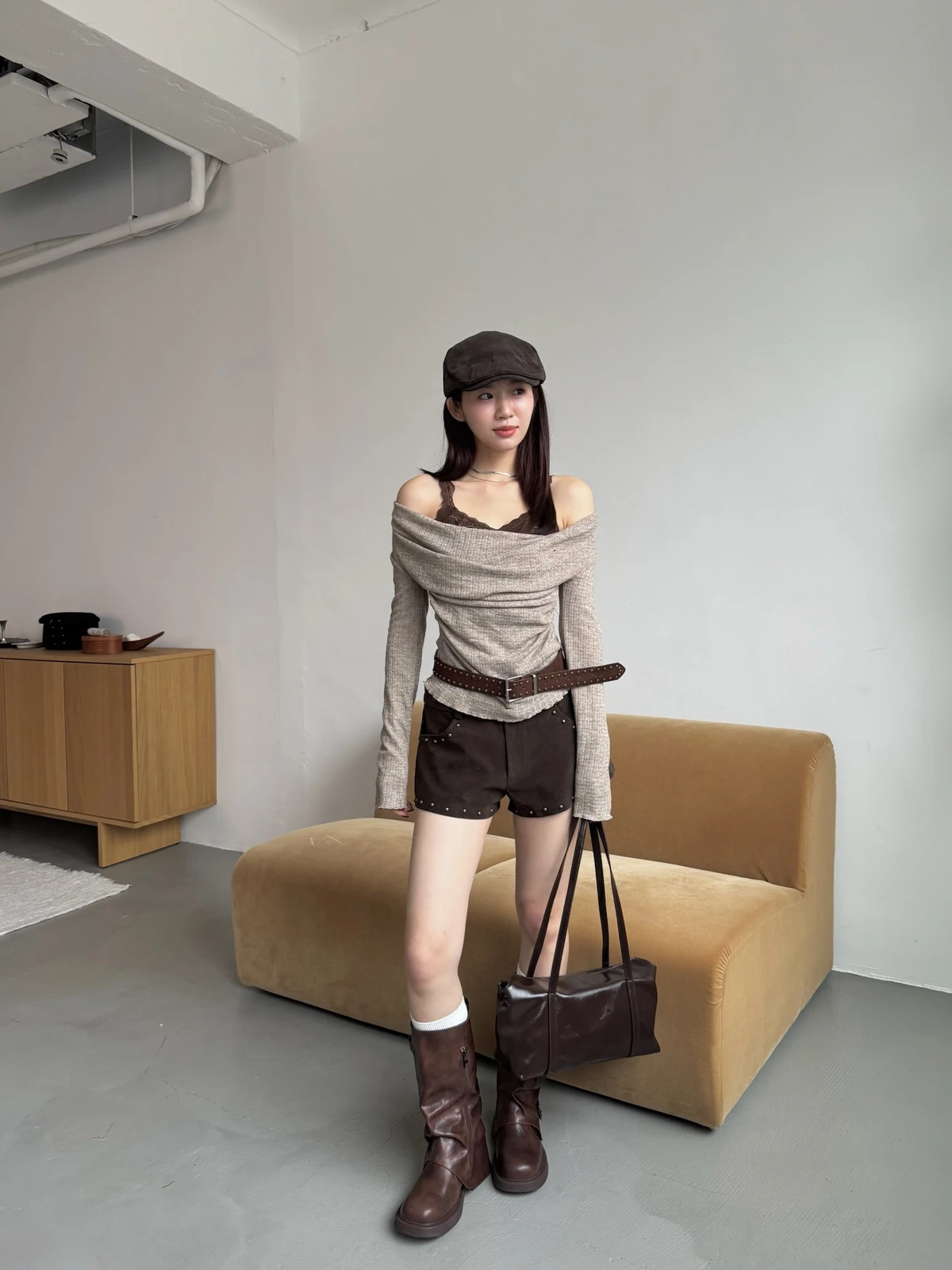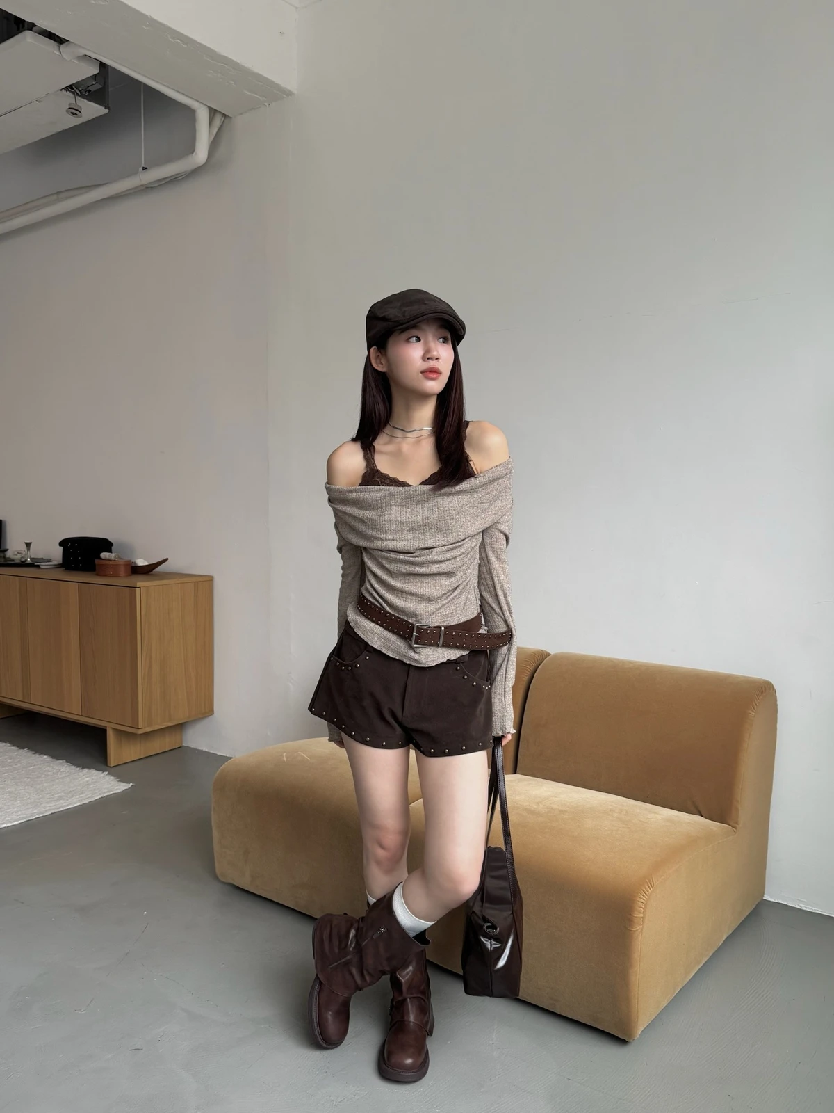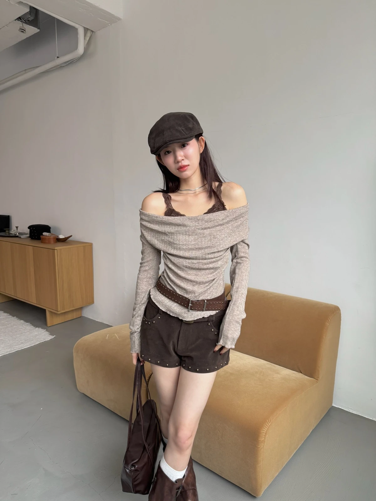 本期推薦!垂墜領蕾絲假兩件針織上衣-附皮帶/3colors