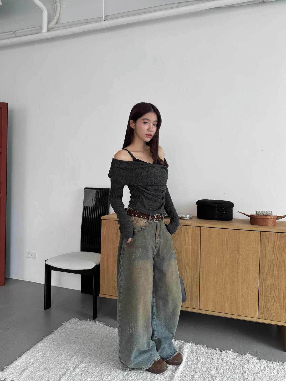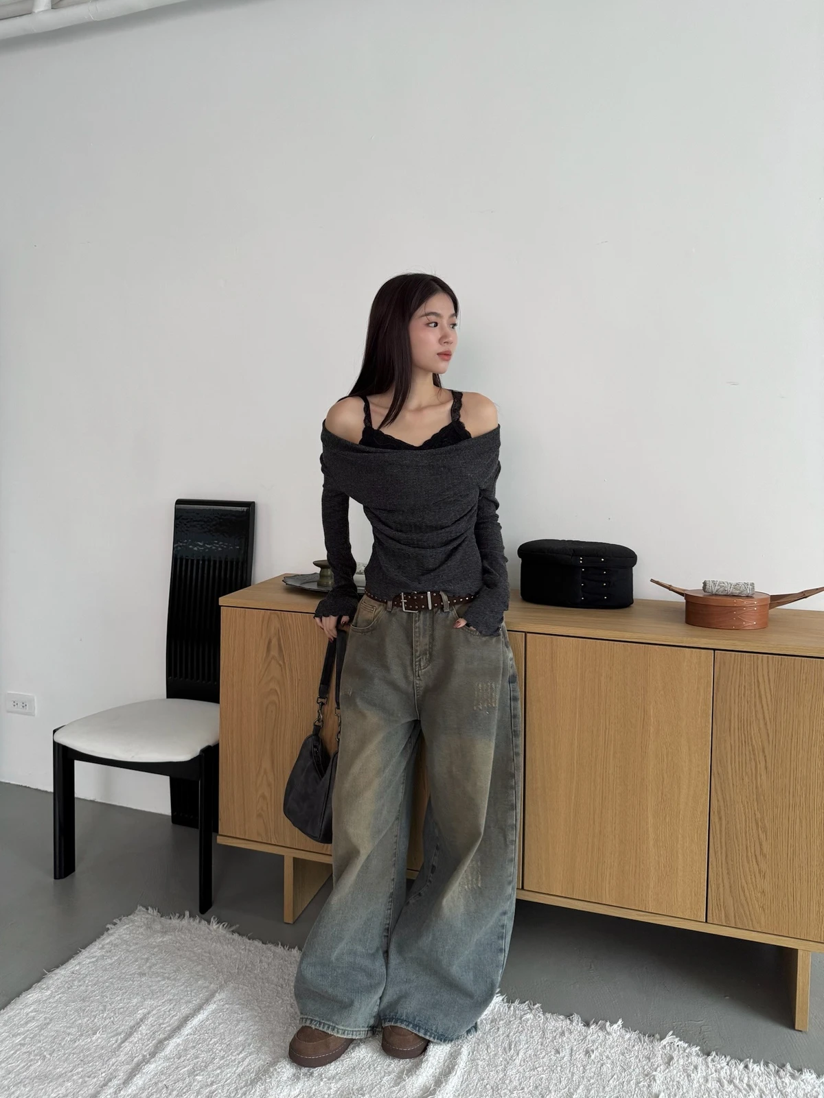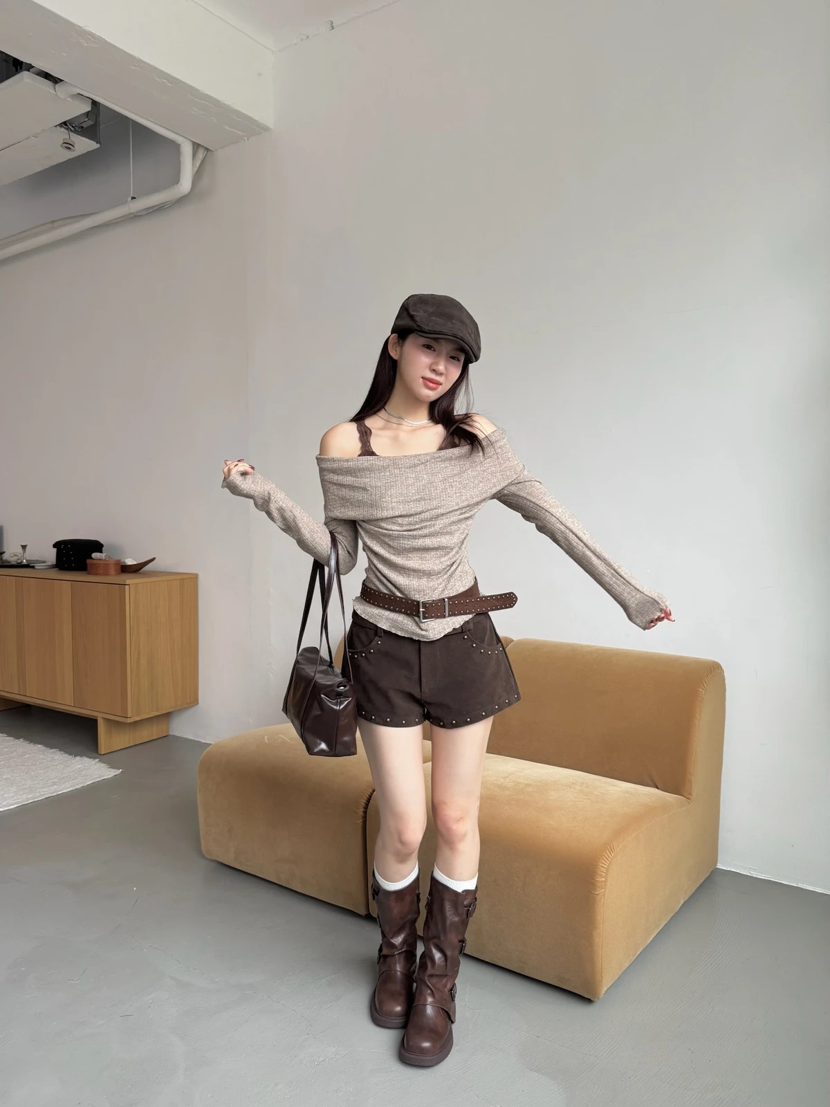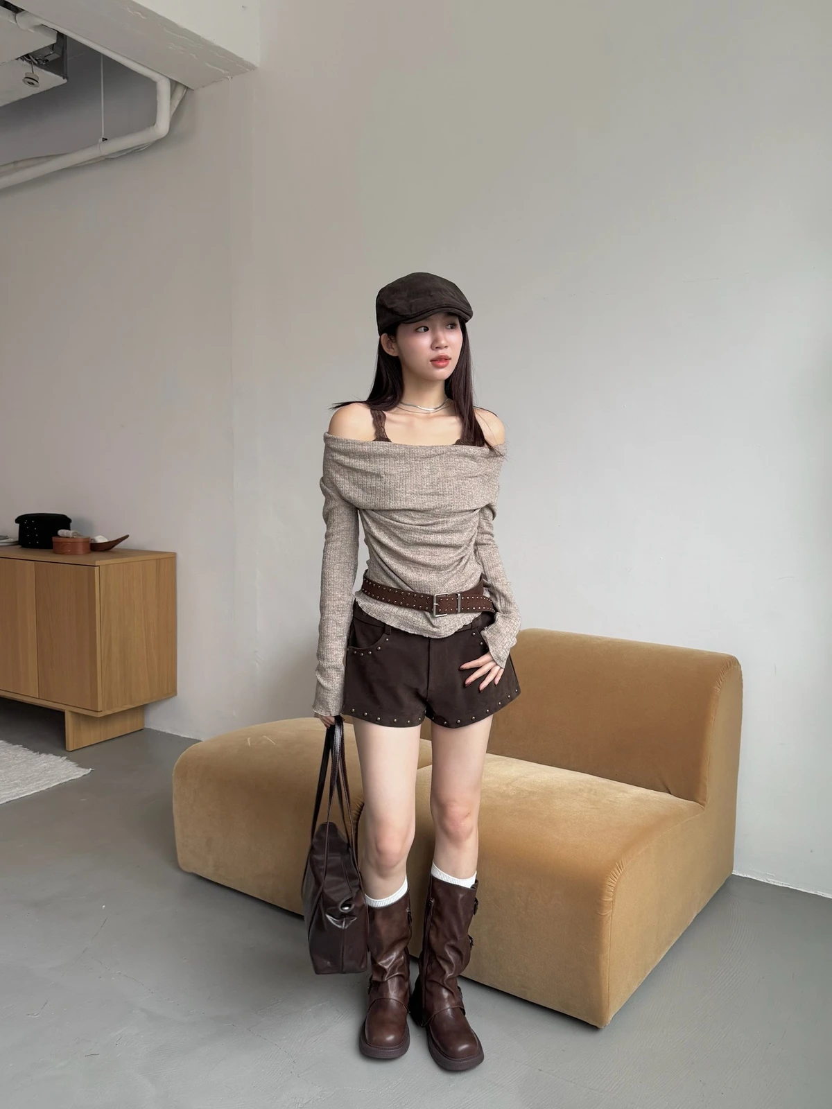 本期推薦!垂墜領蕾絲假兩件針織上衣-附皮帶/3colors
