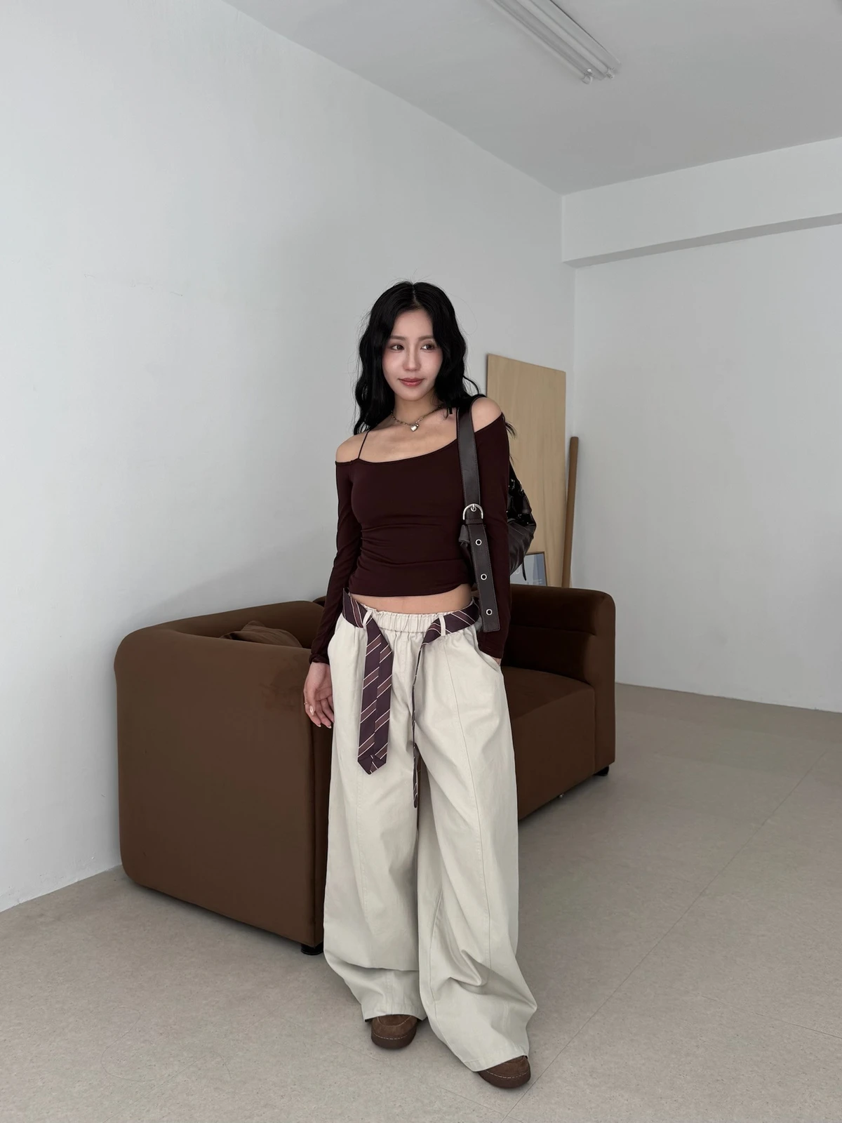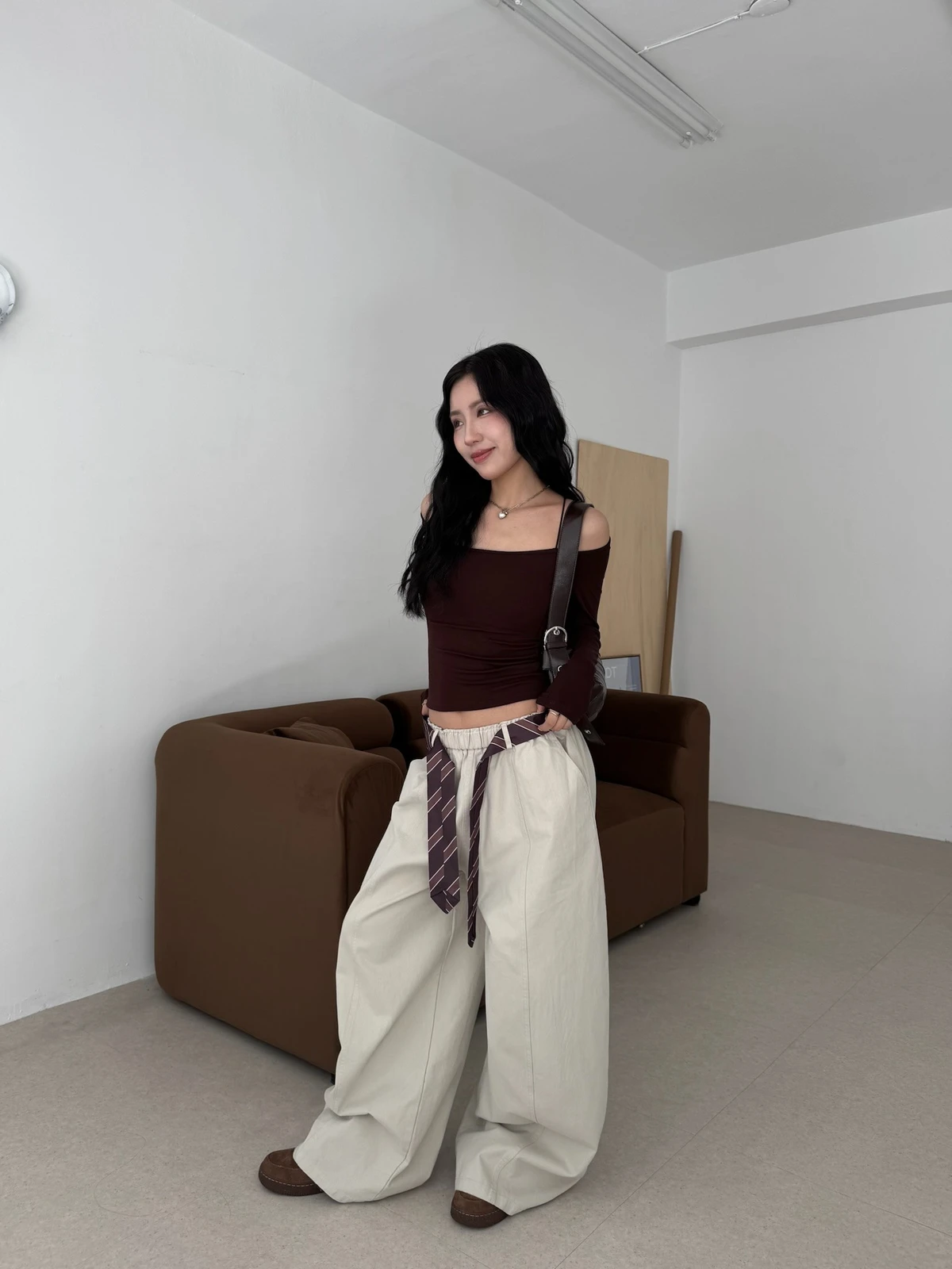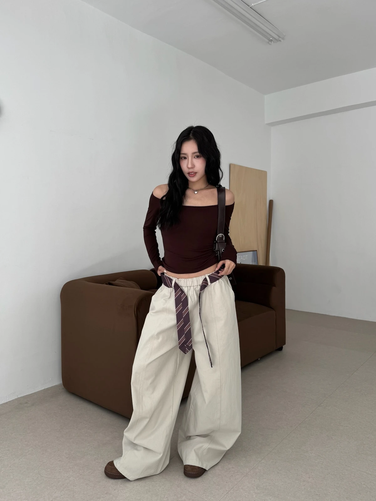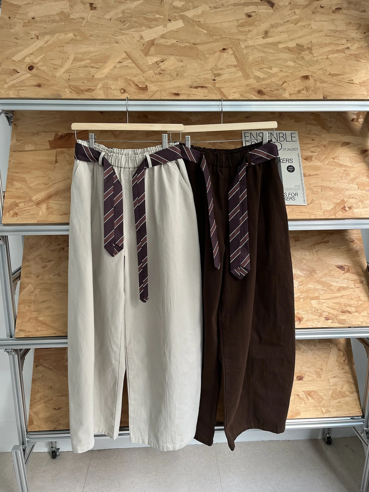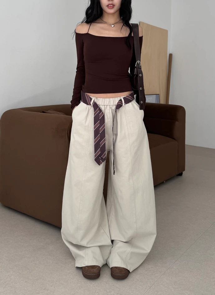 鬆緊車線氣球長褲+領帶腰巾/2colors