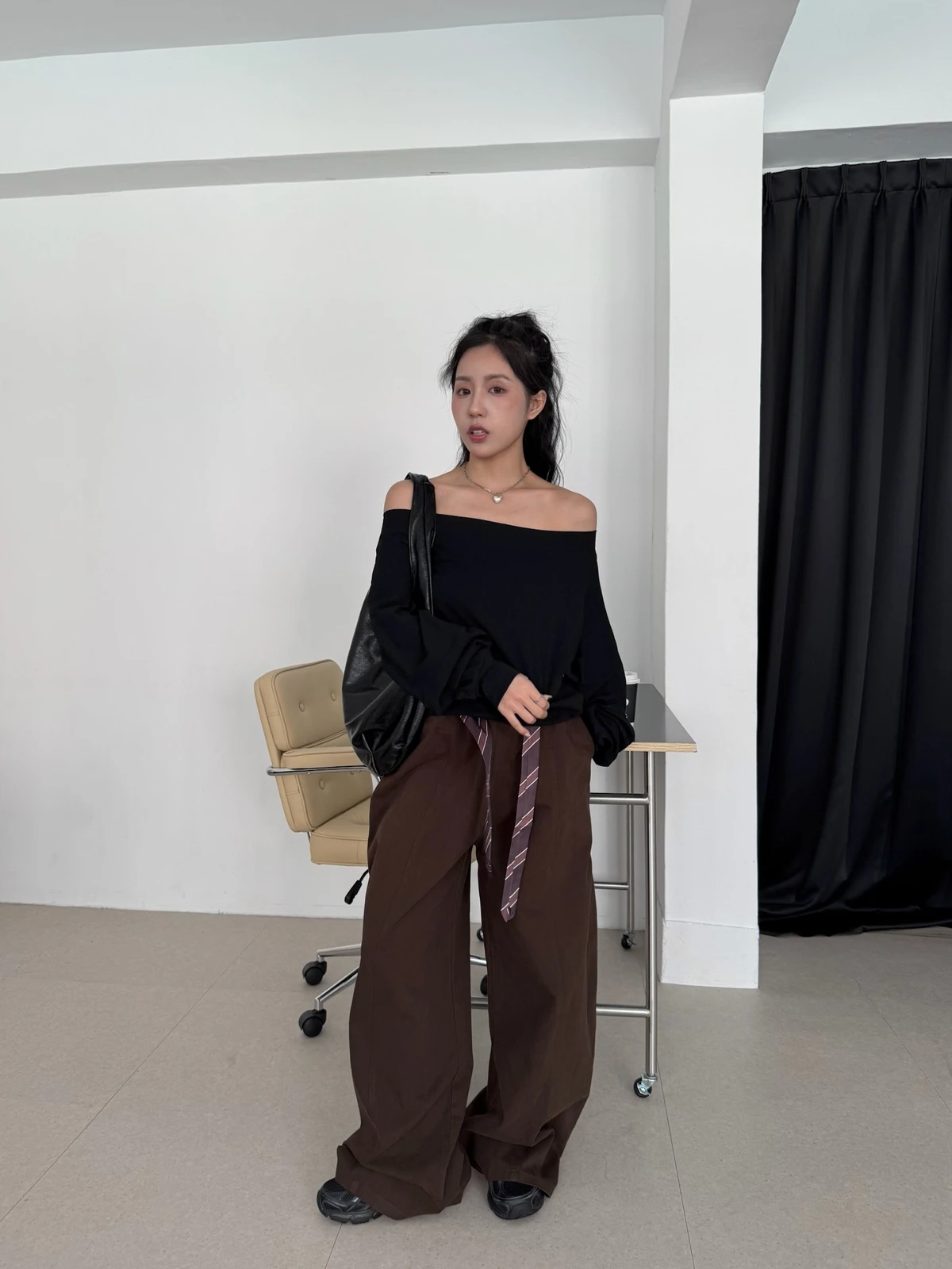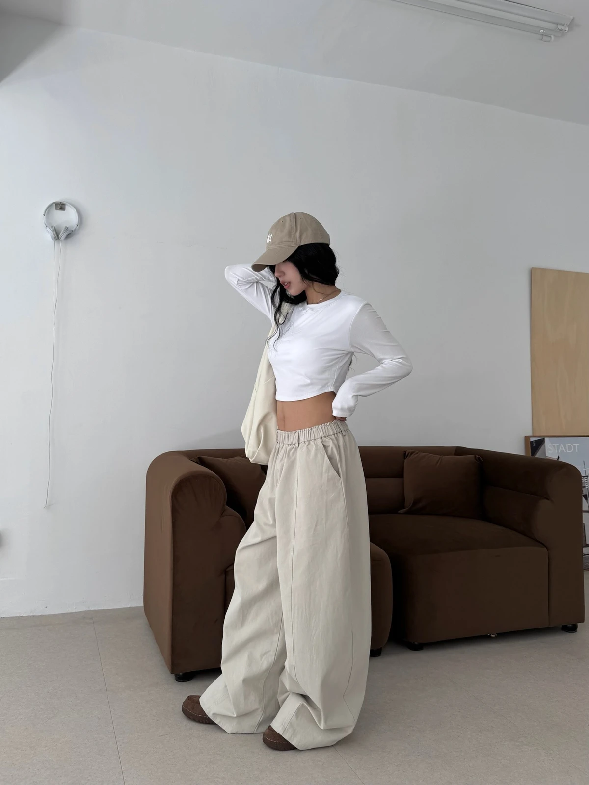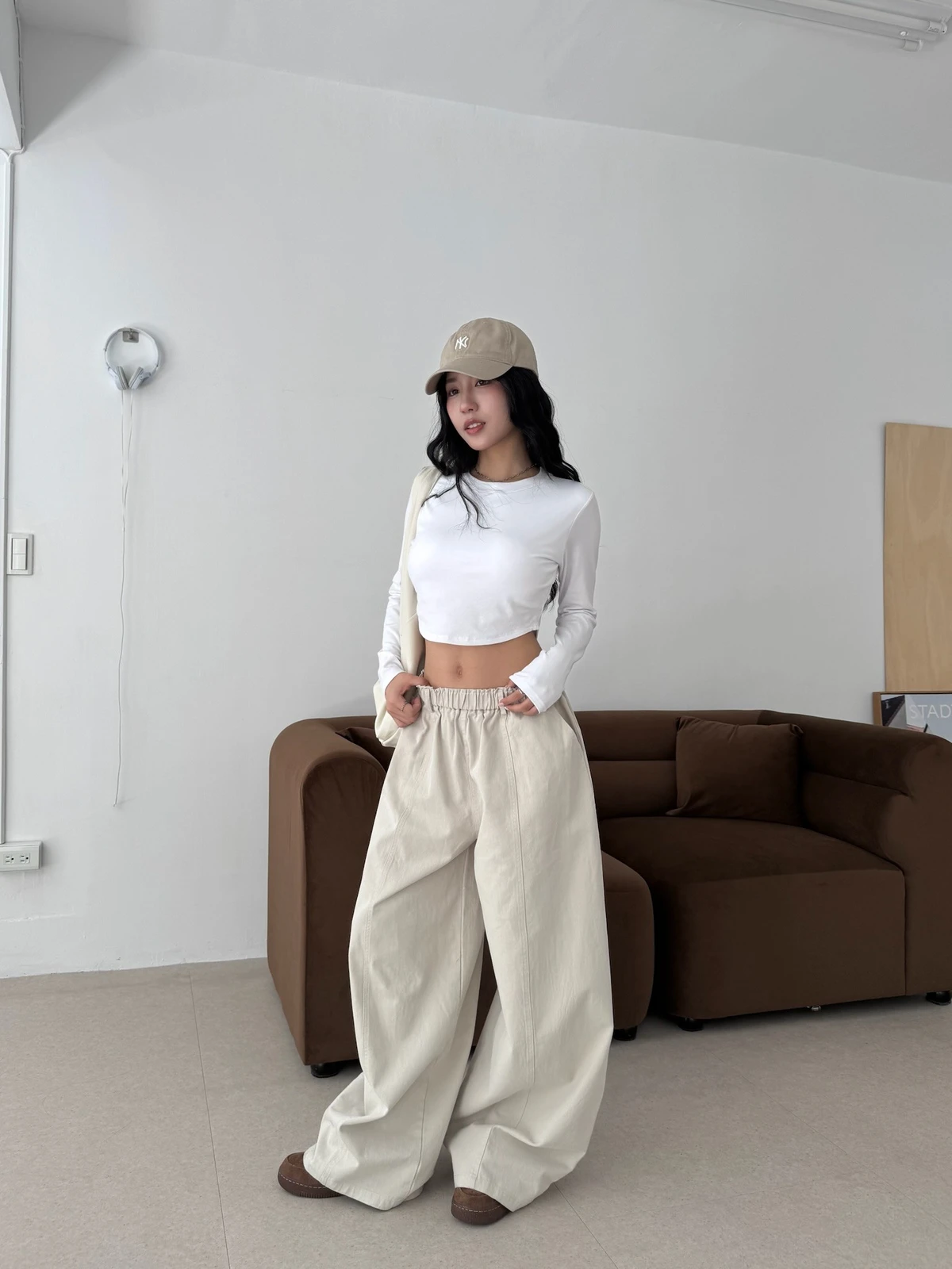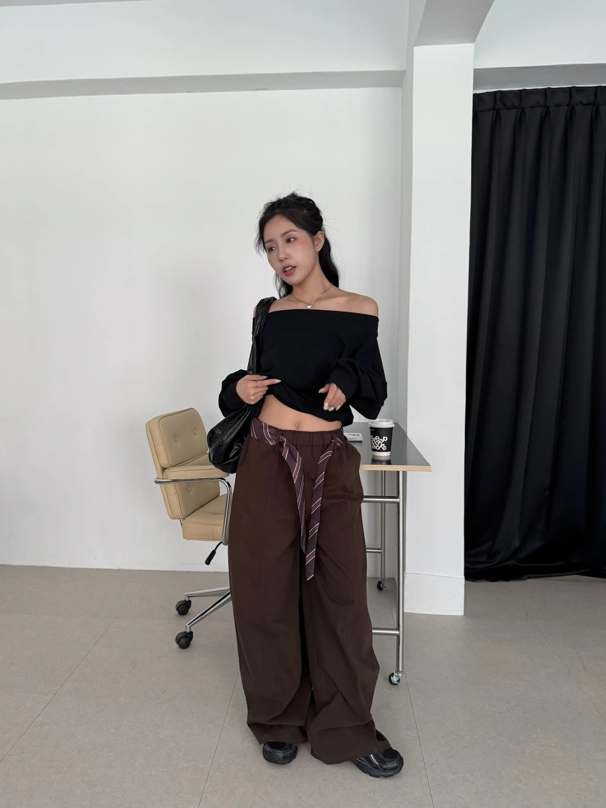 鬆緊車線氣球長褲+領帶腰巾/2colors