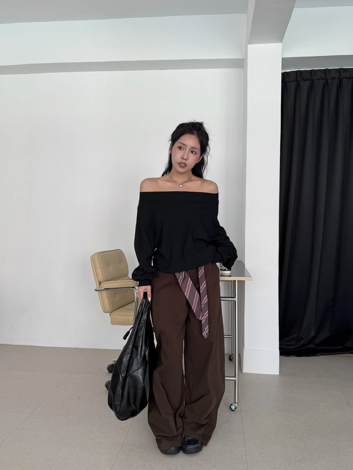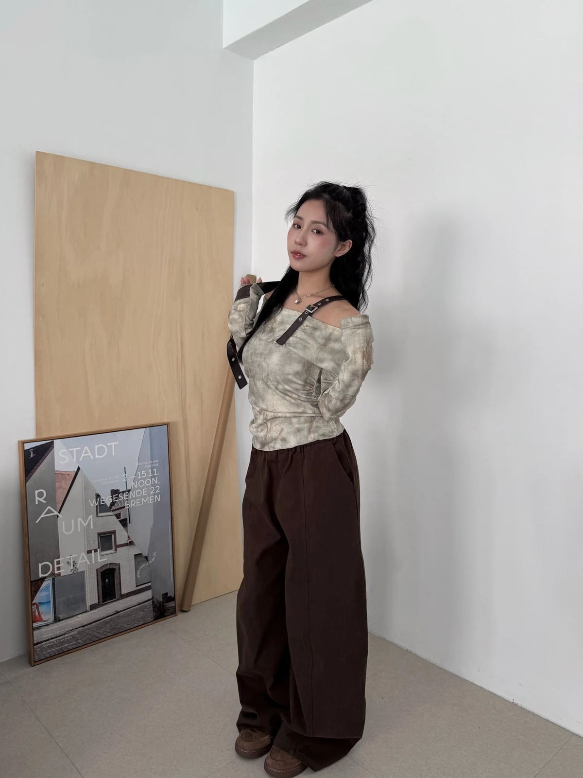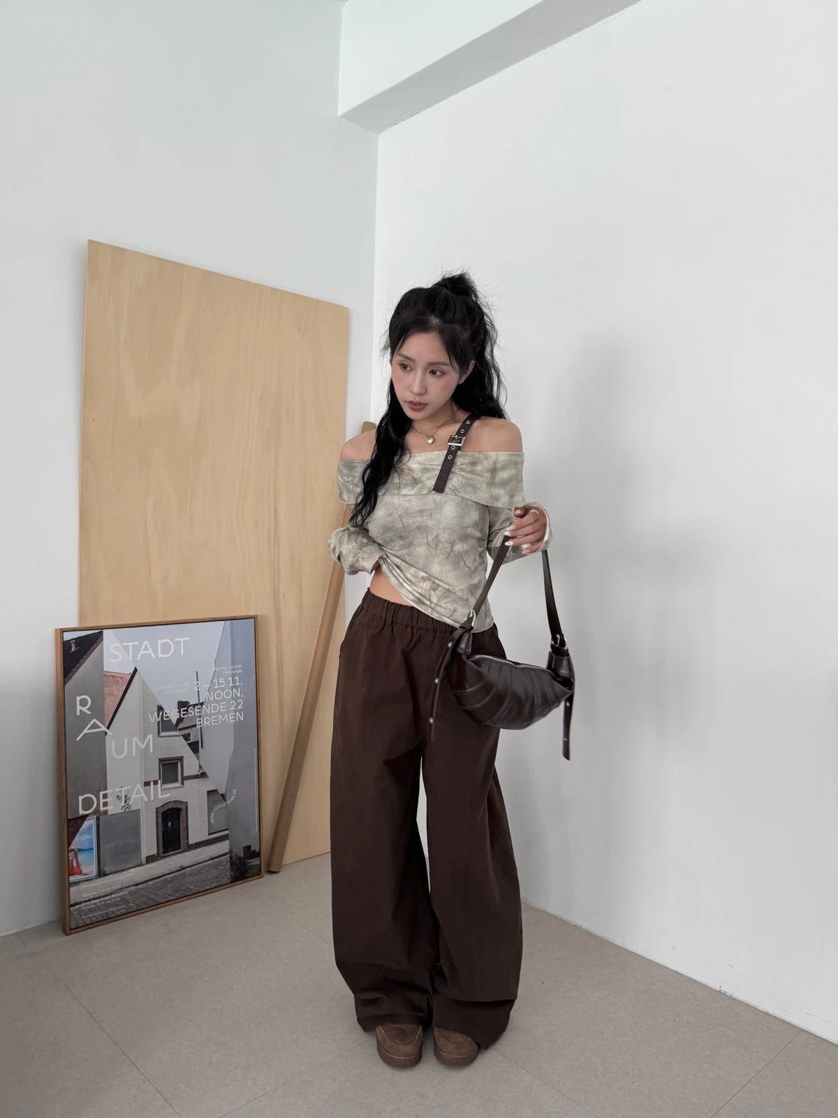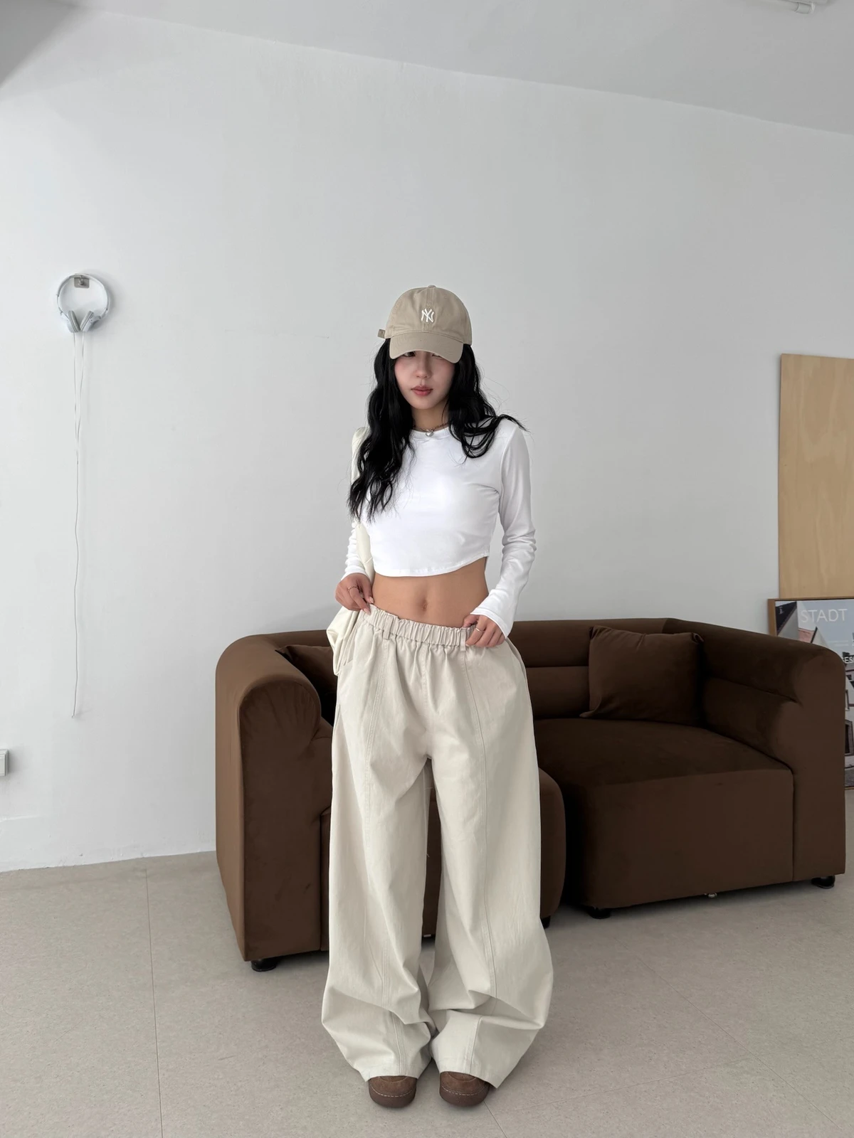 鬆緊車線氣球長褲+領帶腰巾/2colors