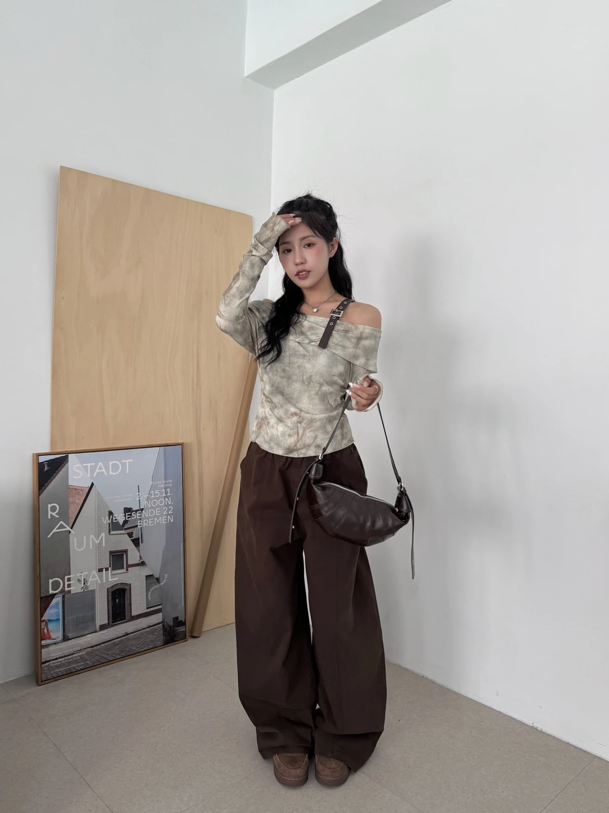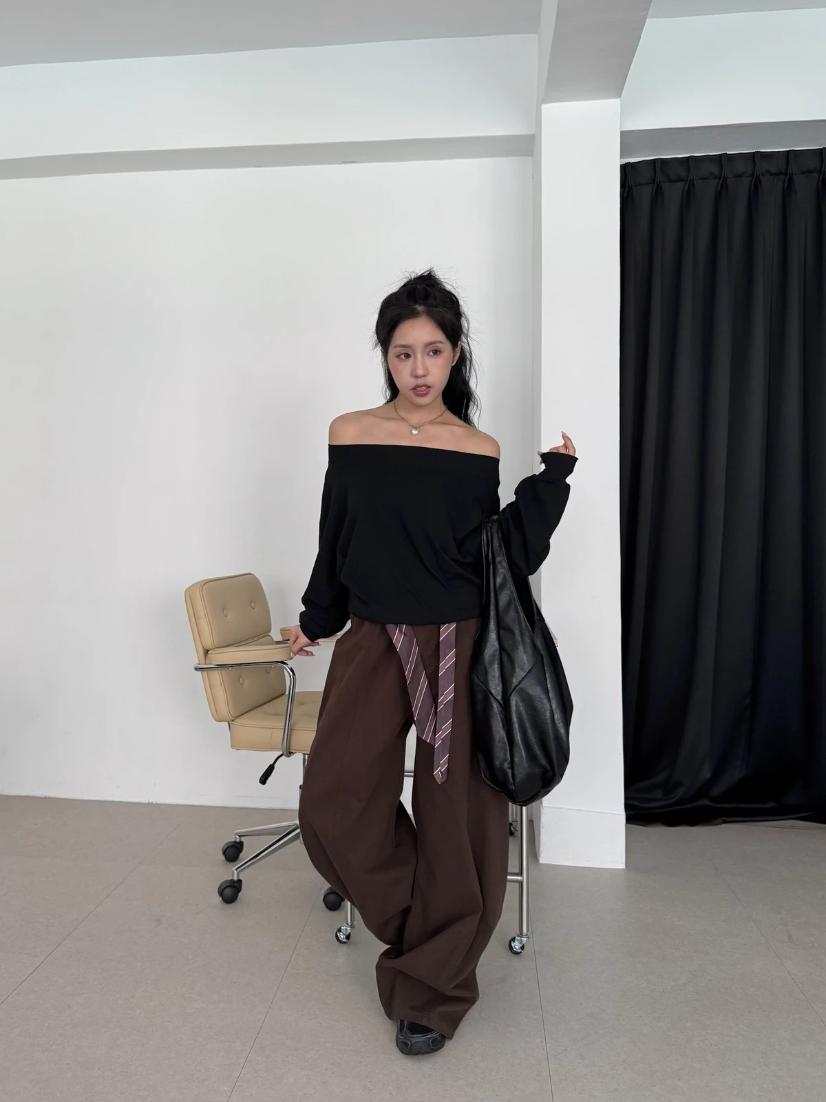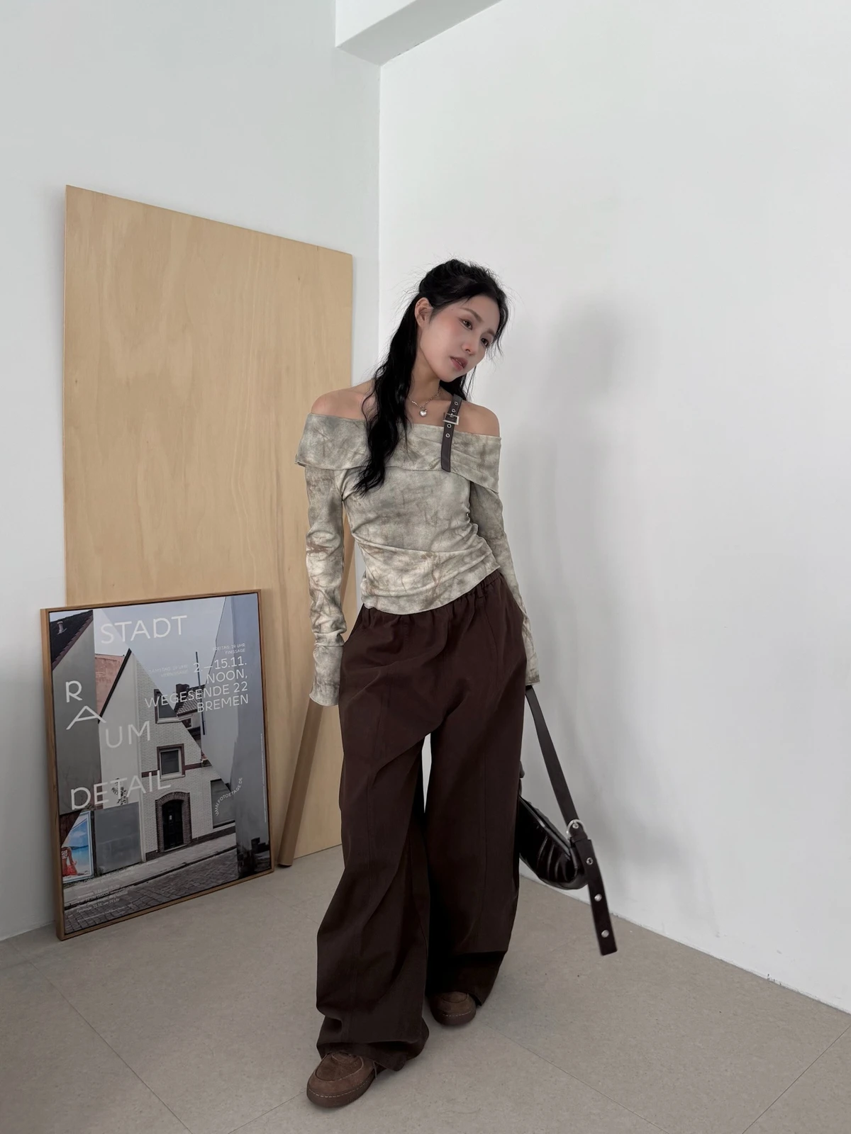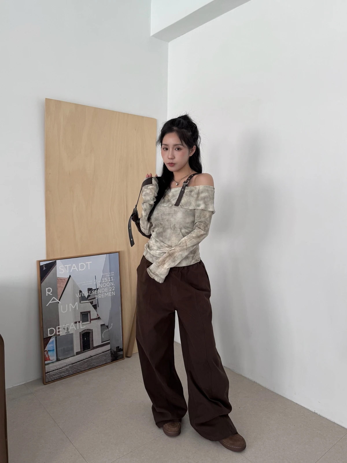 鬆緊車線氣球長褲+領帶腰巾/2colors