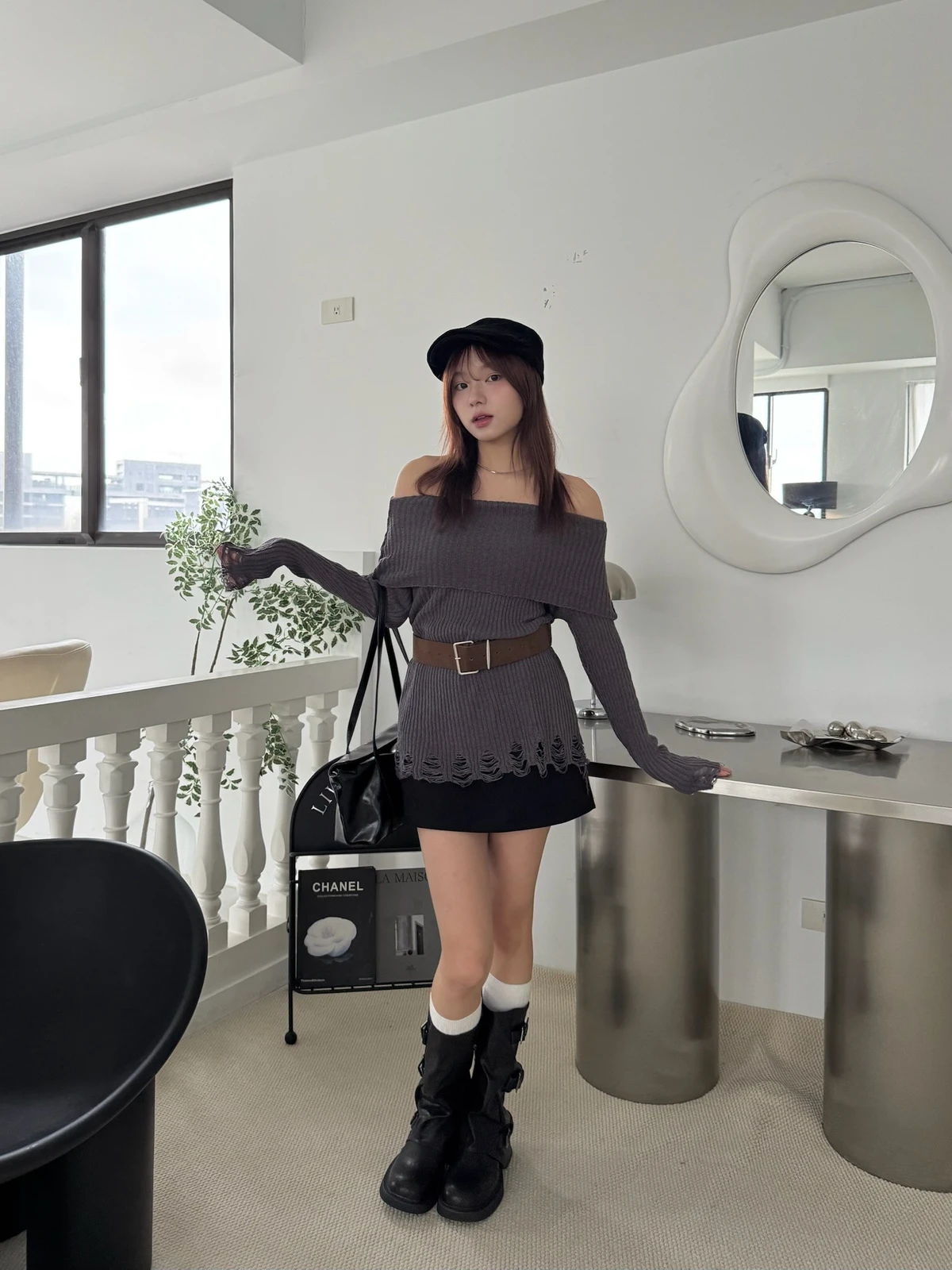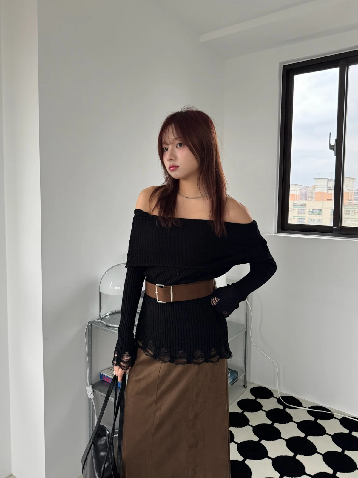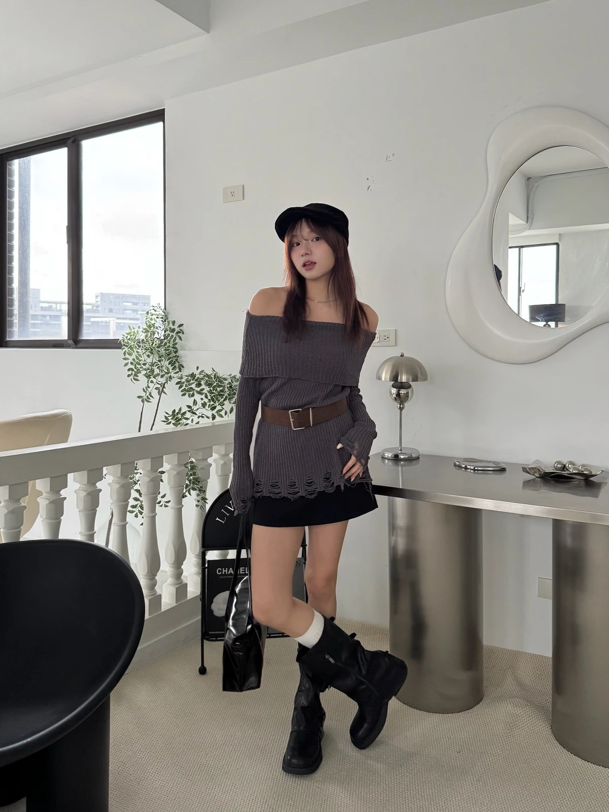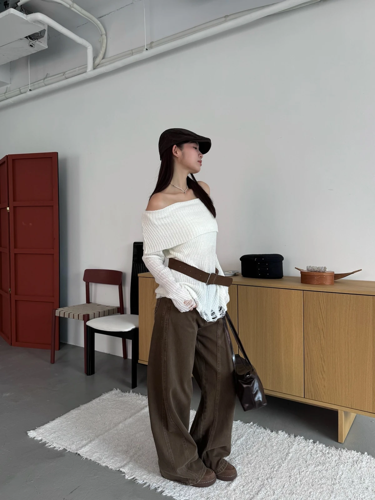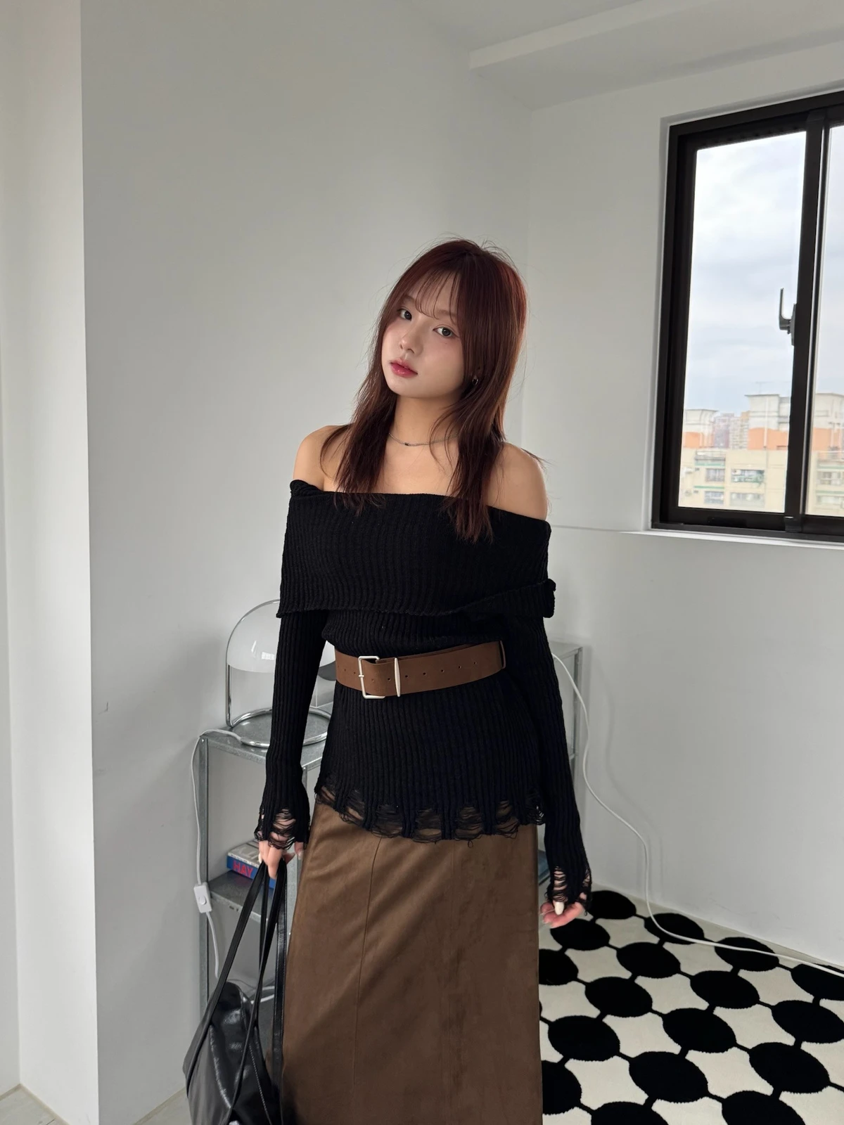 翻領刷破毛衣-附腰帶/4colors