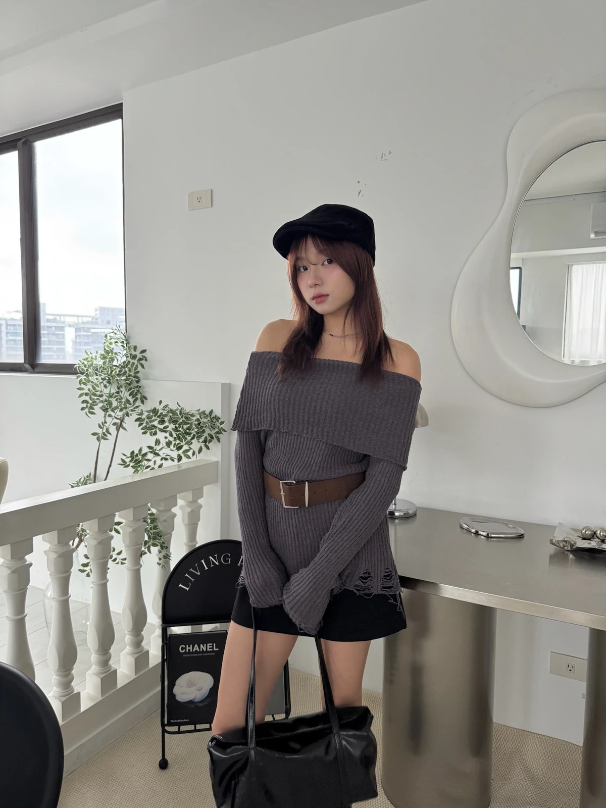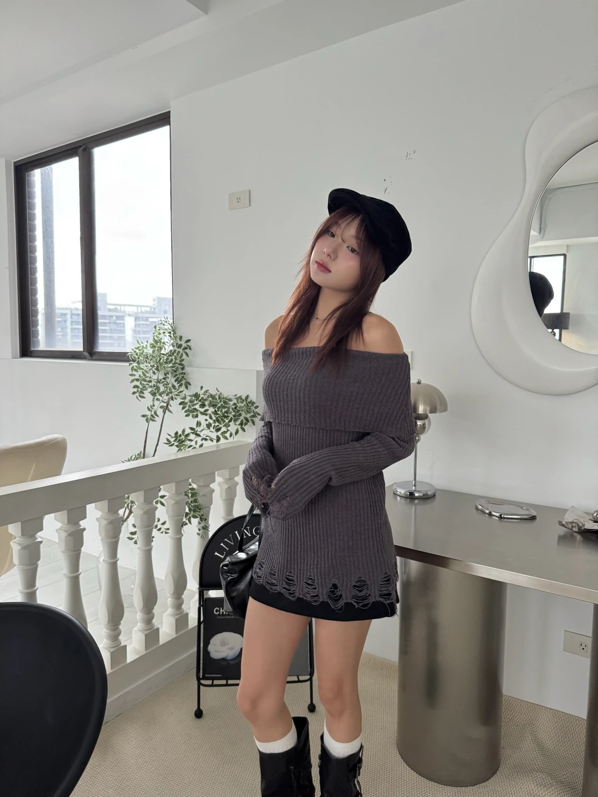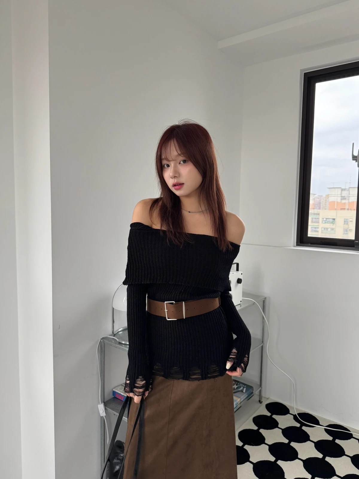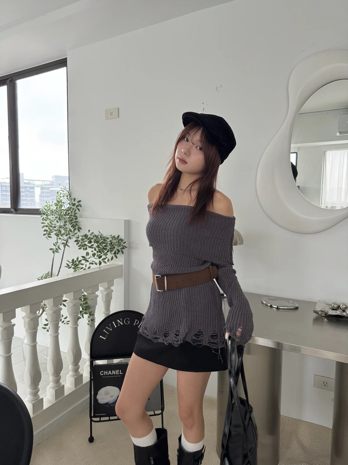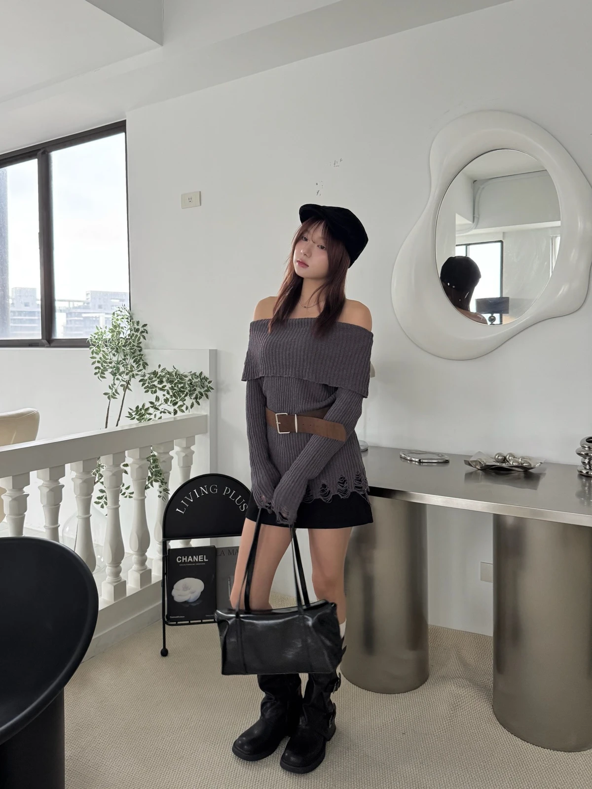 翻領刷破毛衣-附腰帶/4colors