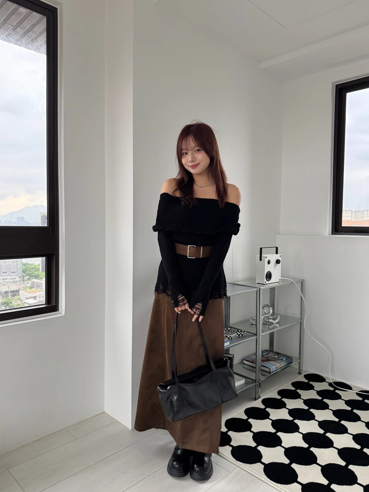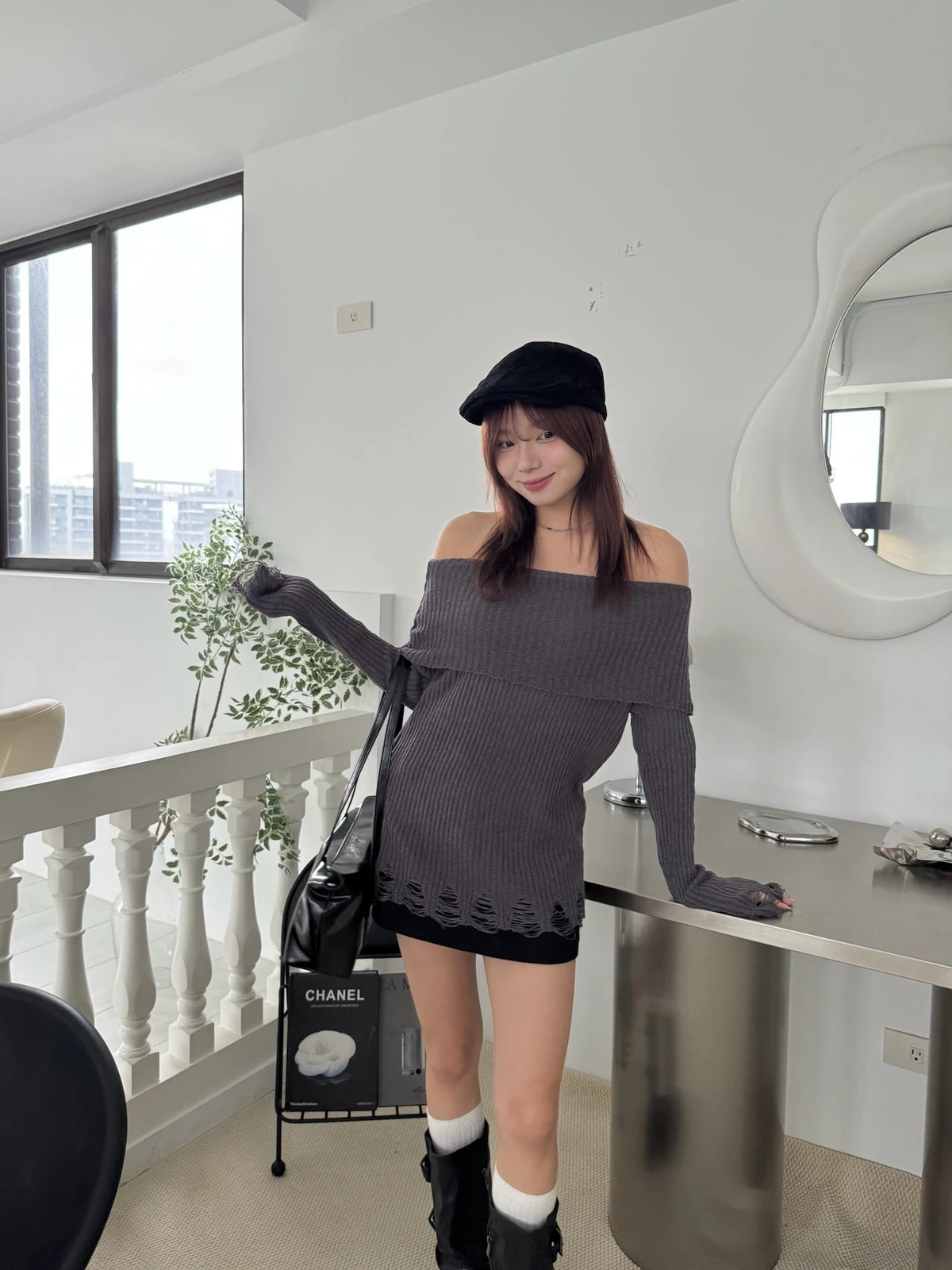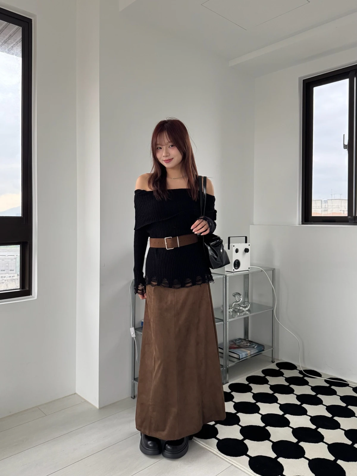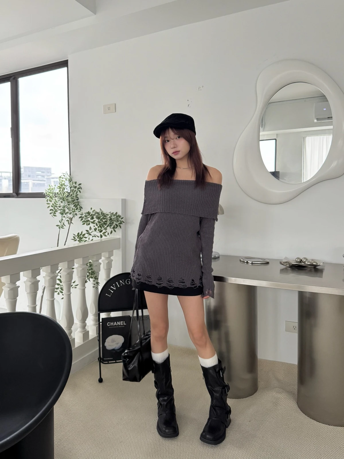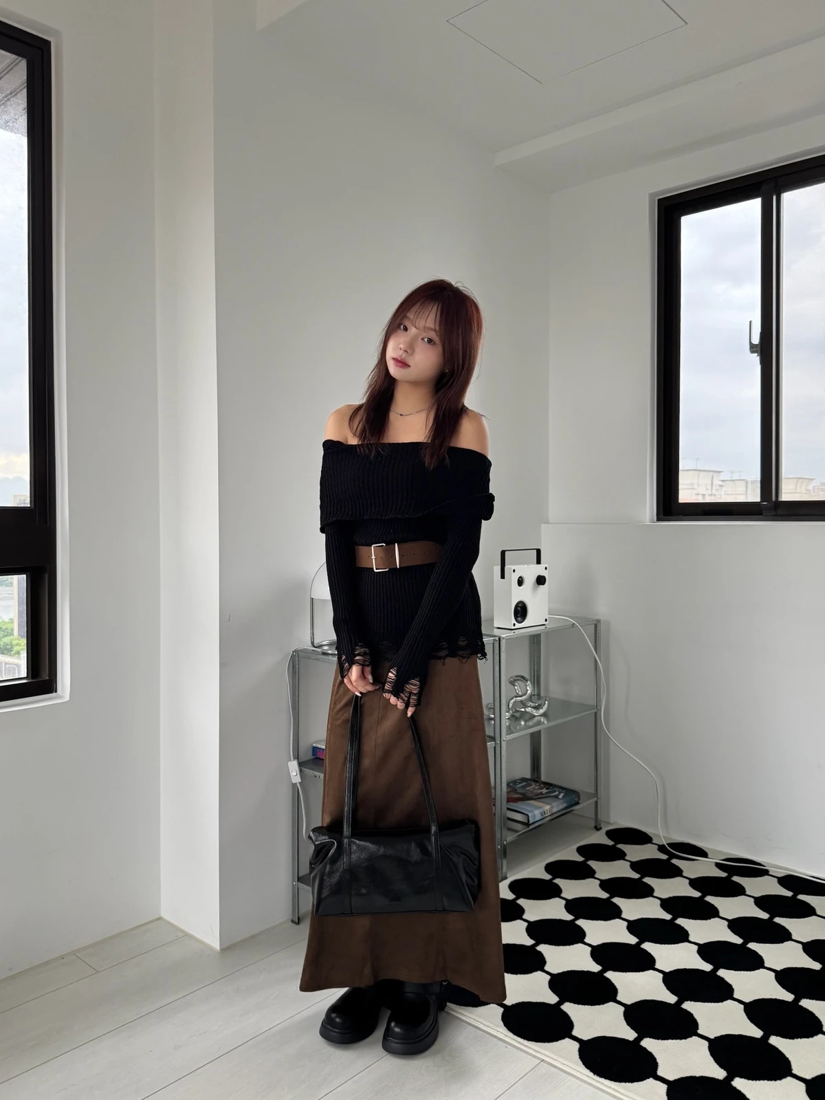 翻領刷破毛衣-附腰帶/4colors