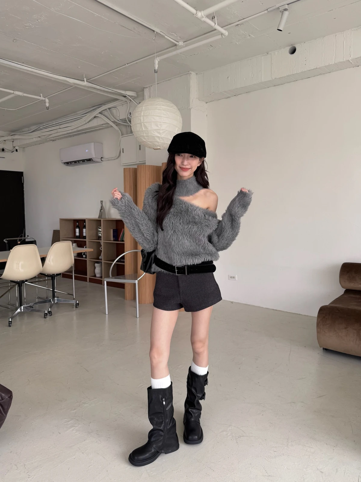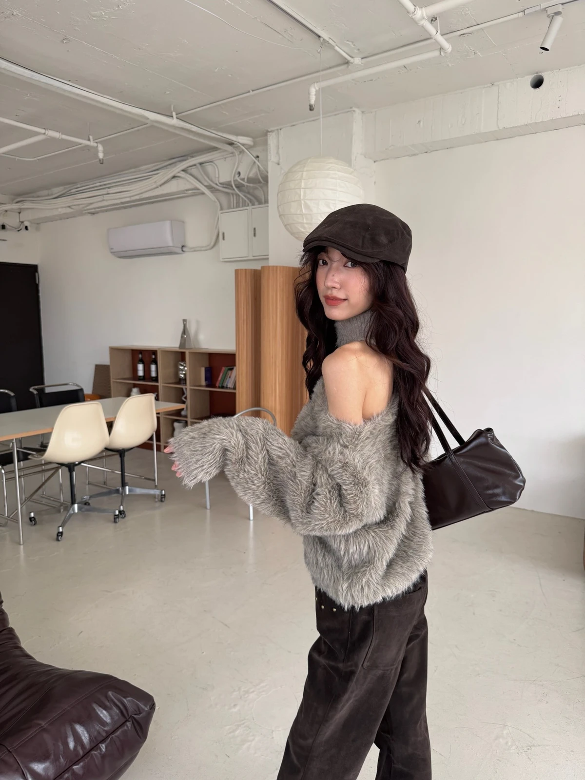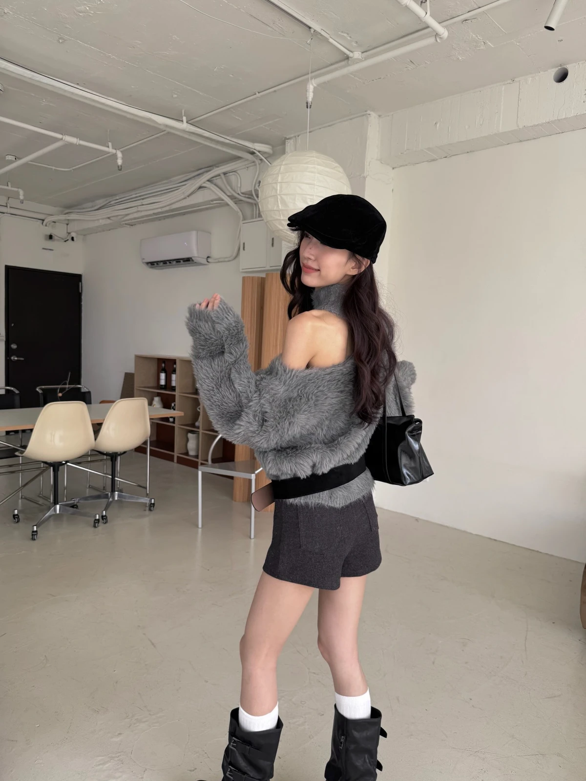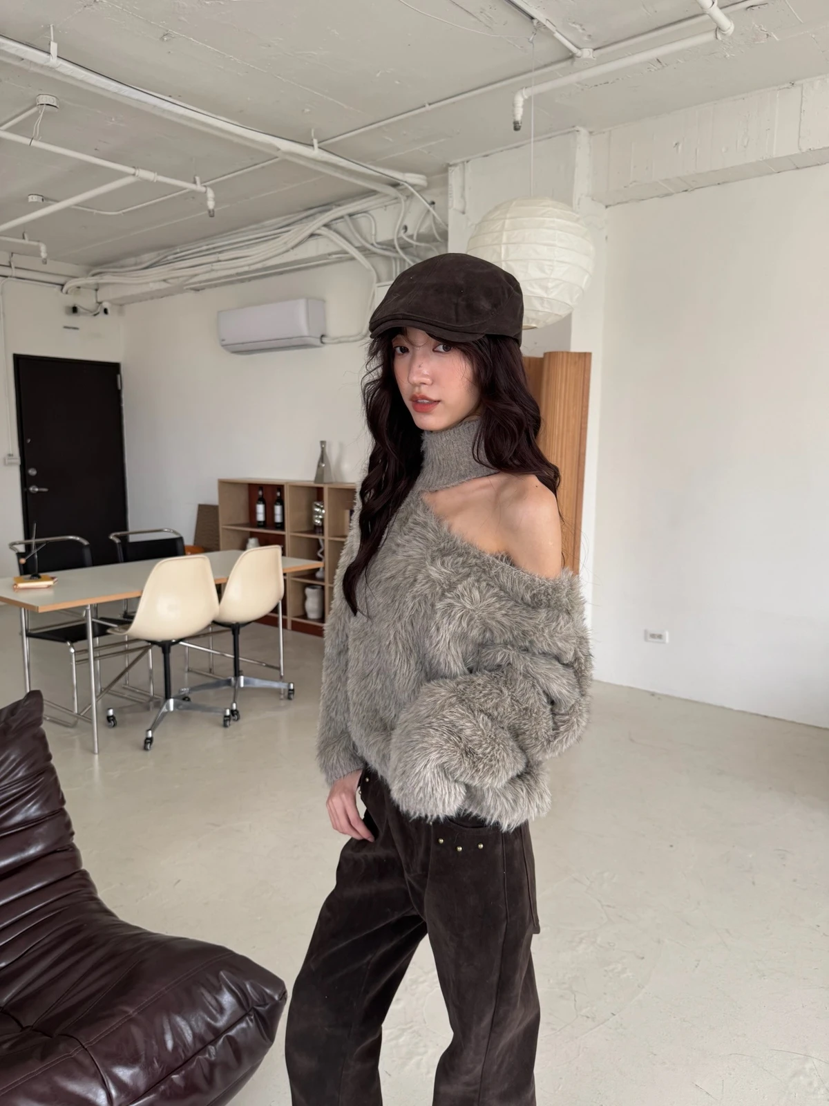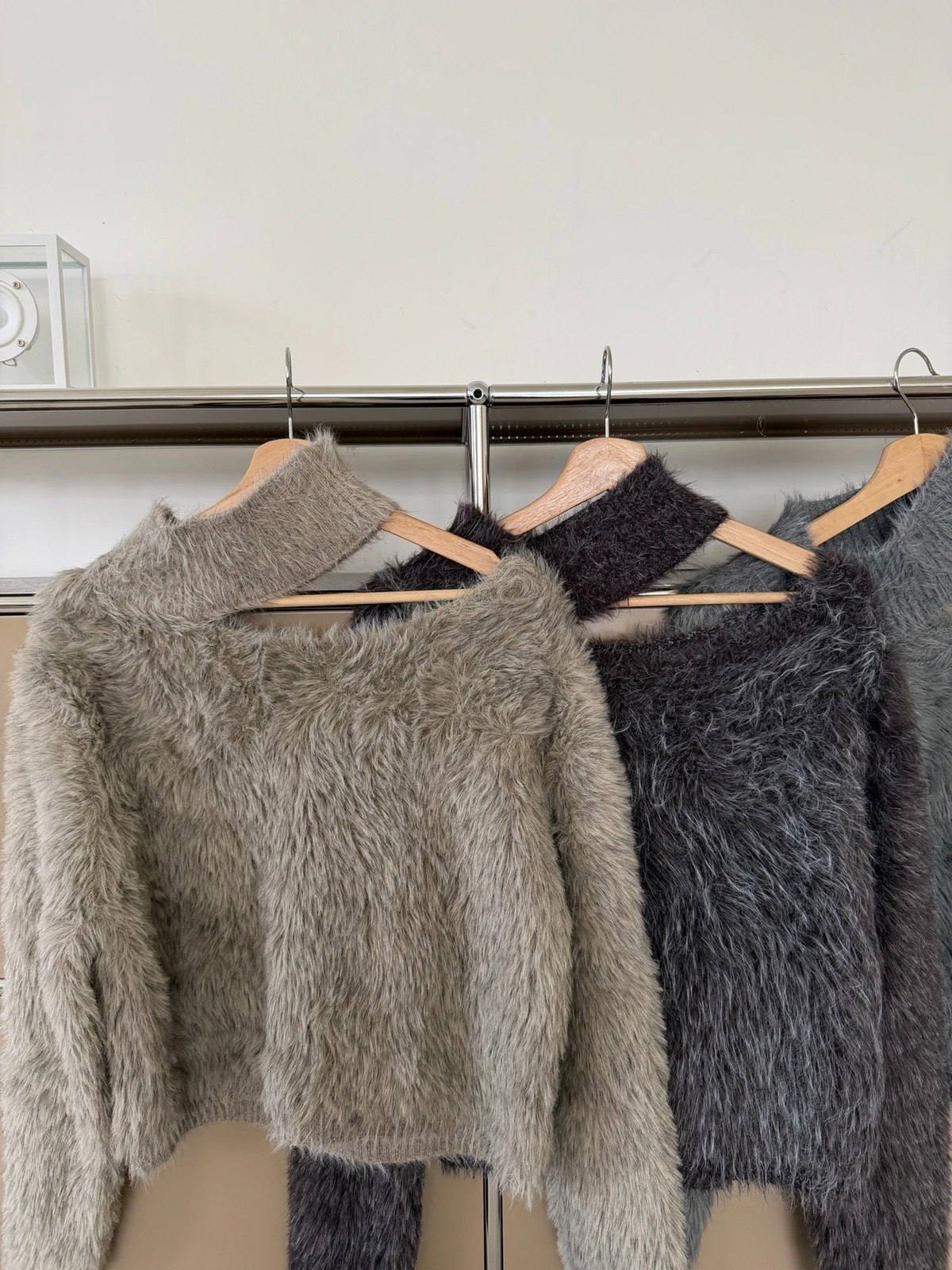 推薦!氛圍感露肩水貂毛上衣/3colors