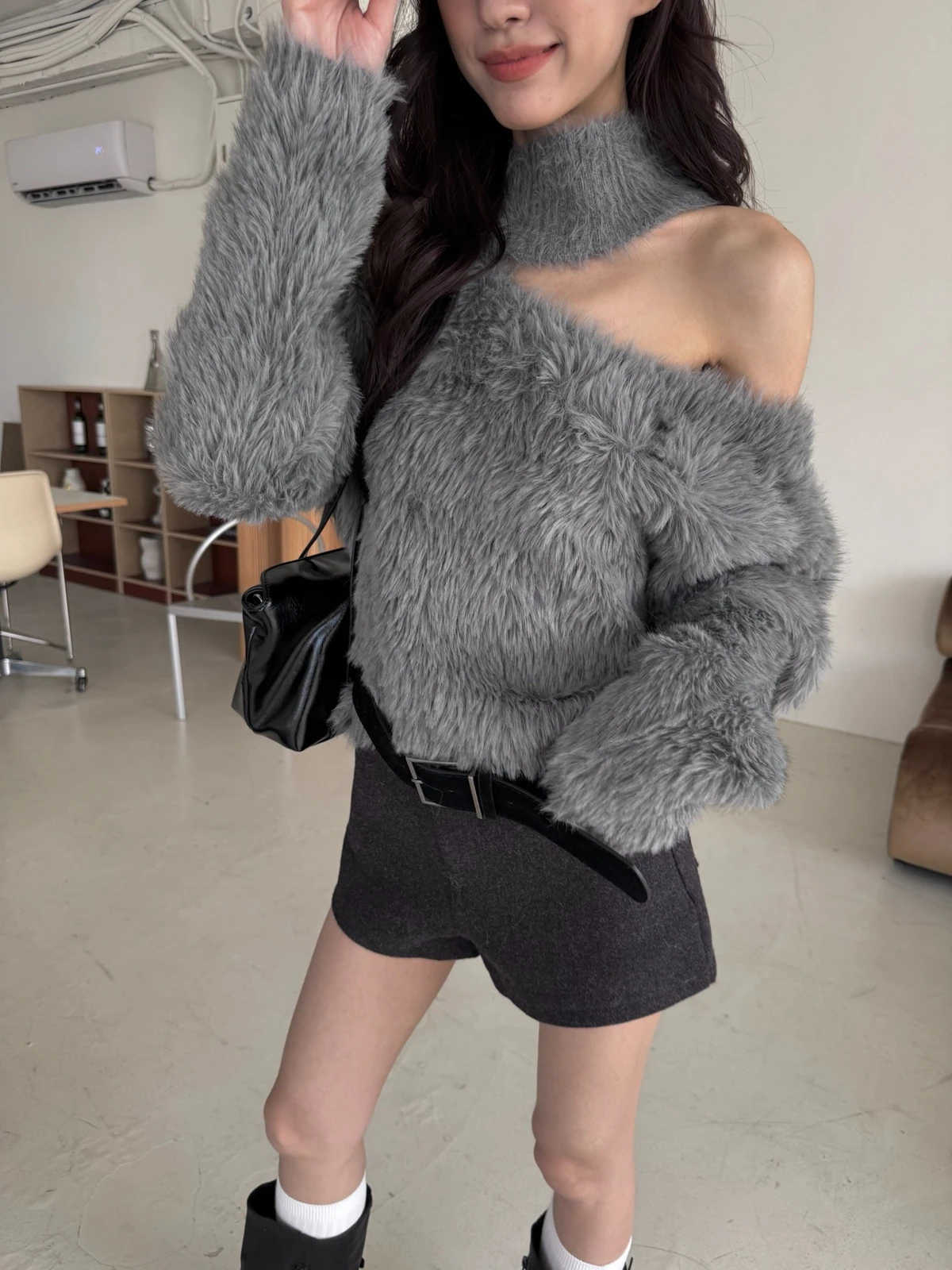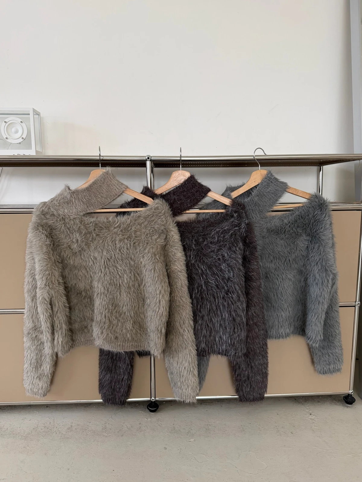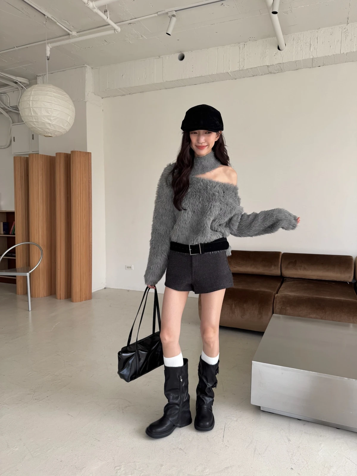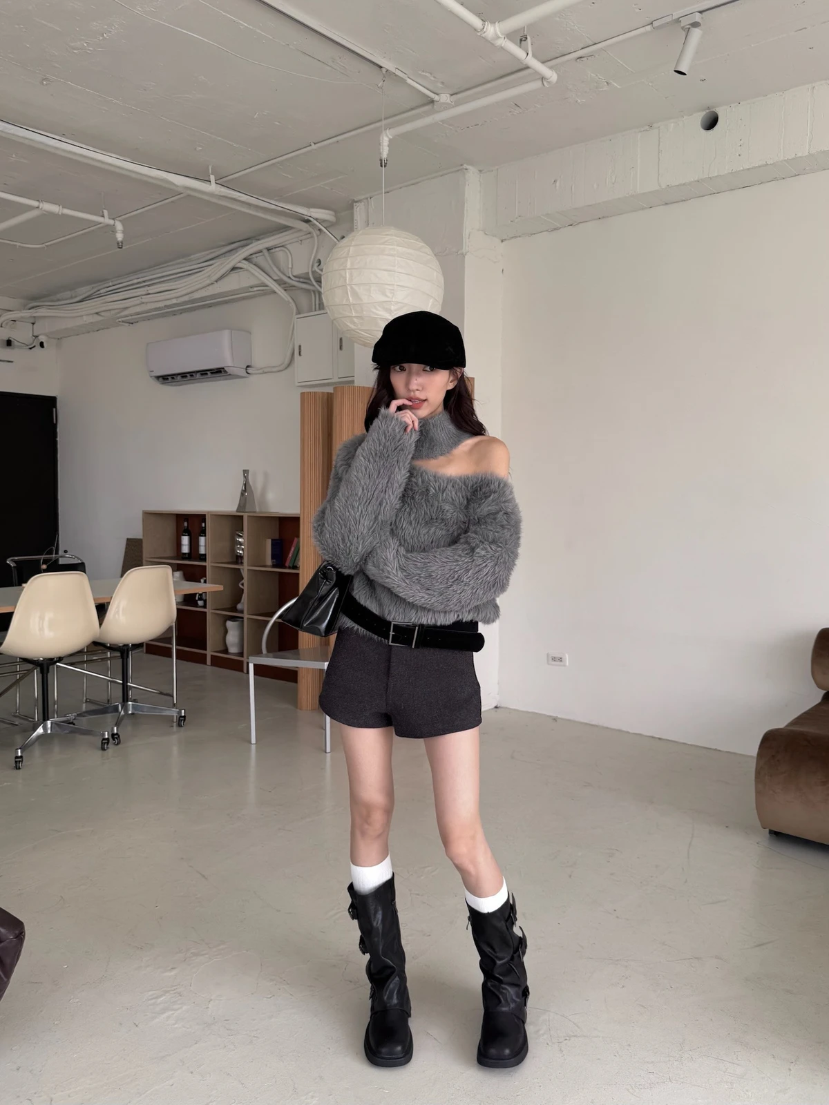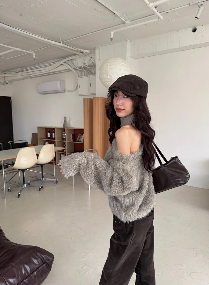 推薦!氛圍感露肩水貂毛上衣/3colors