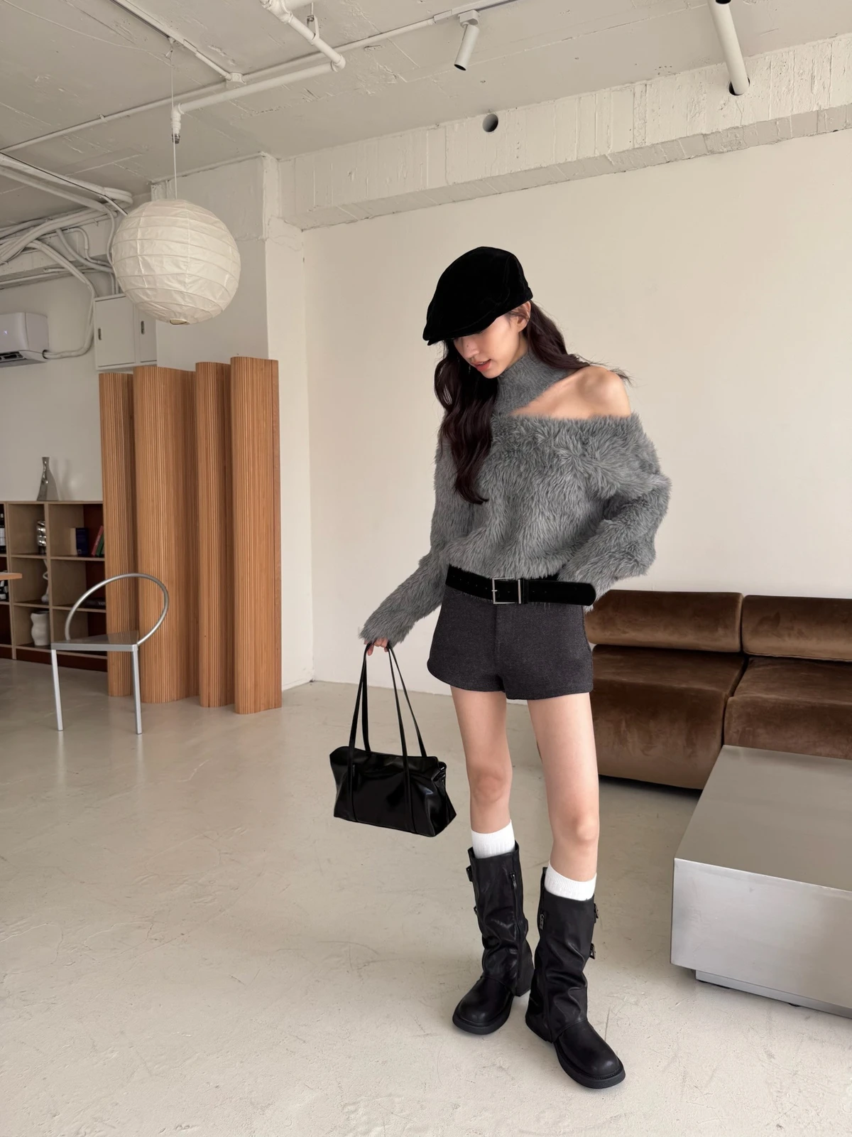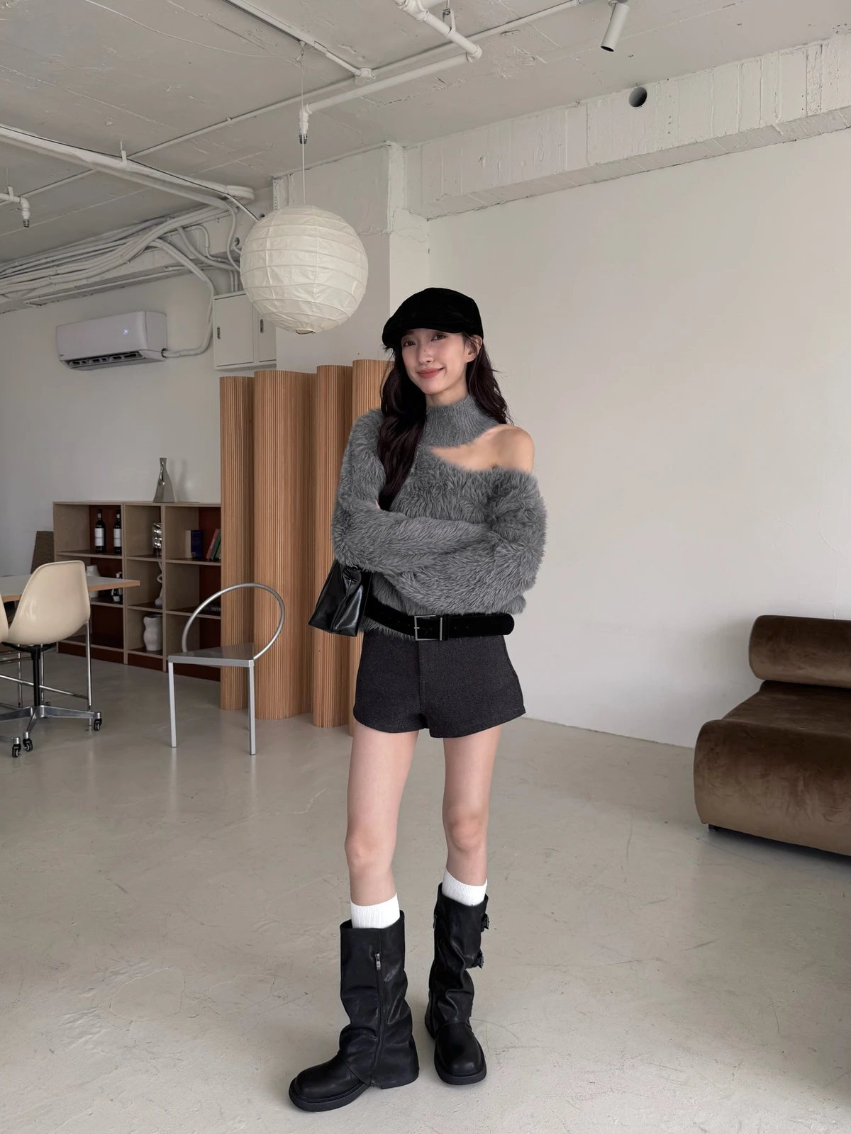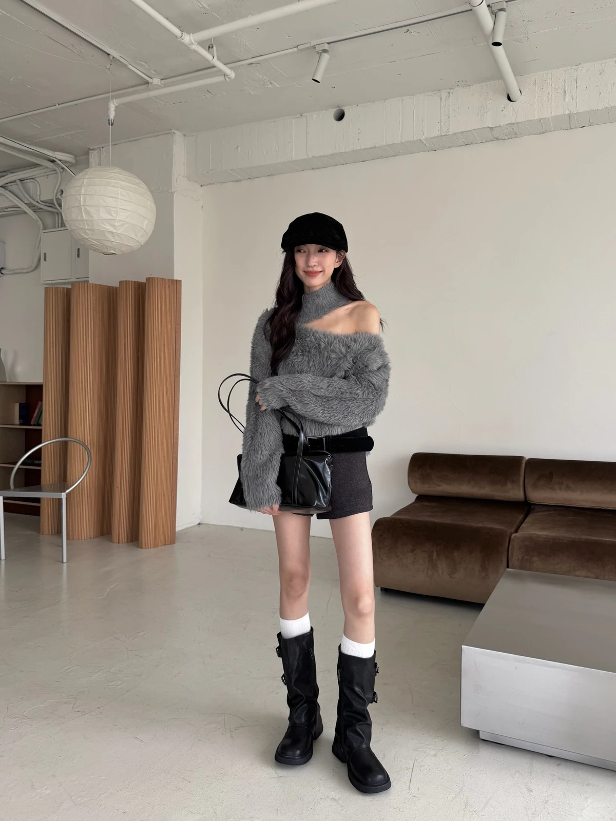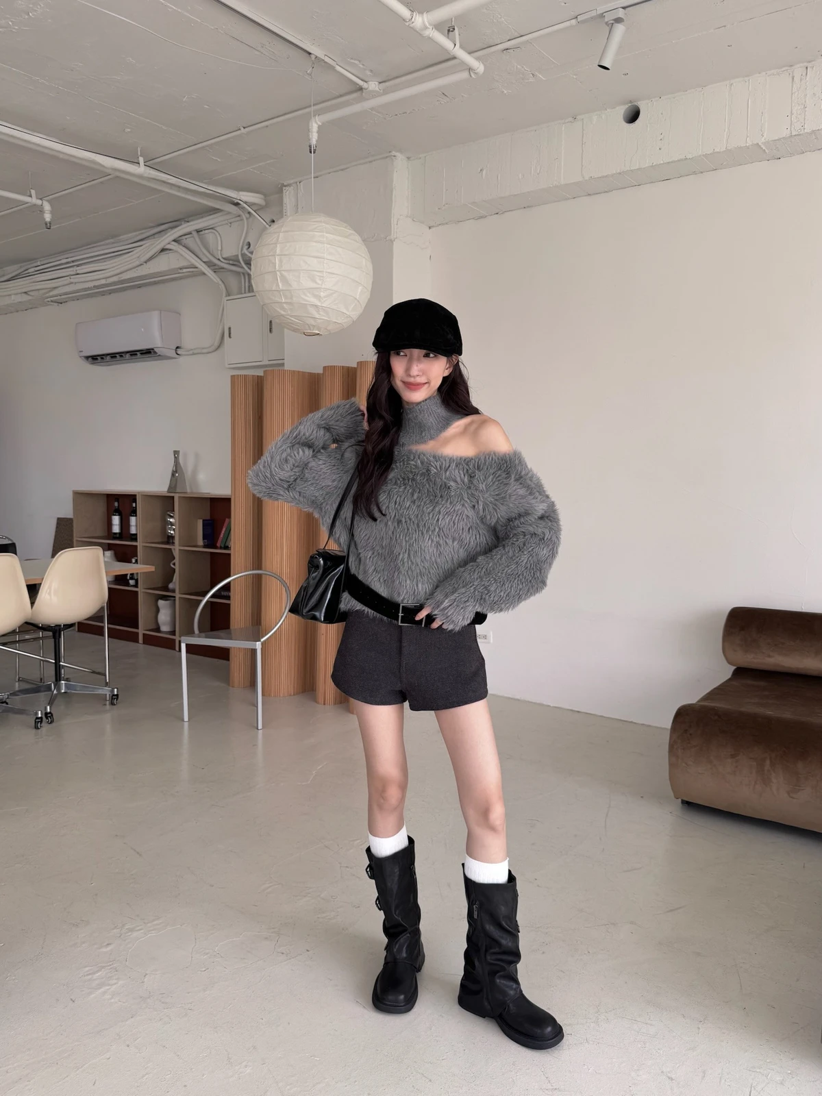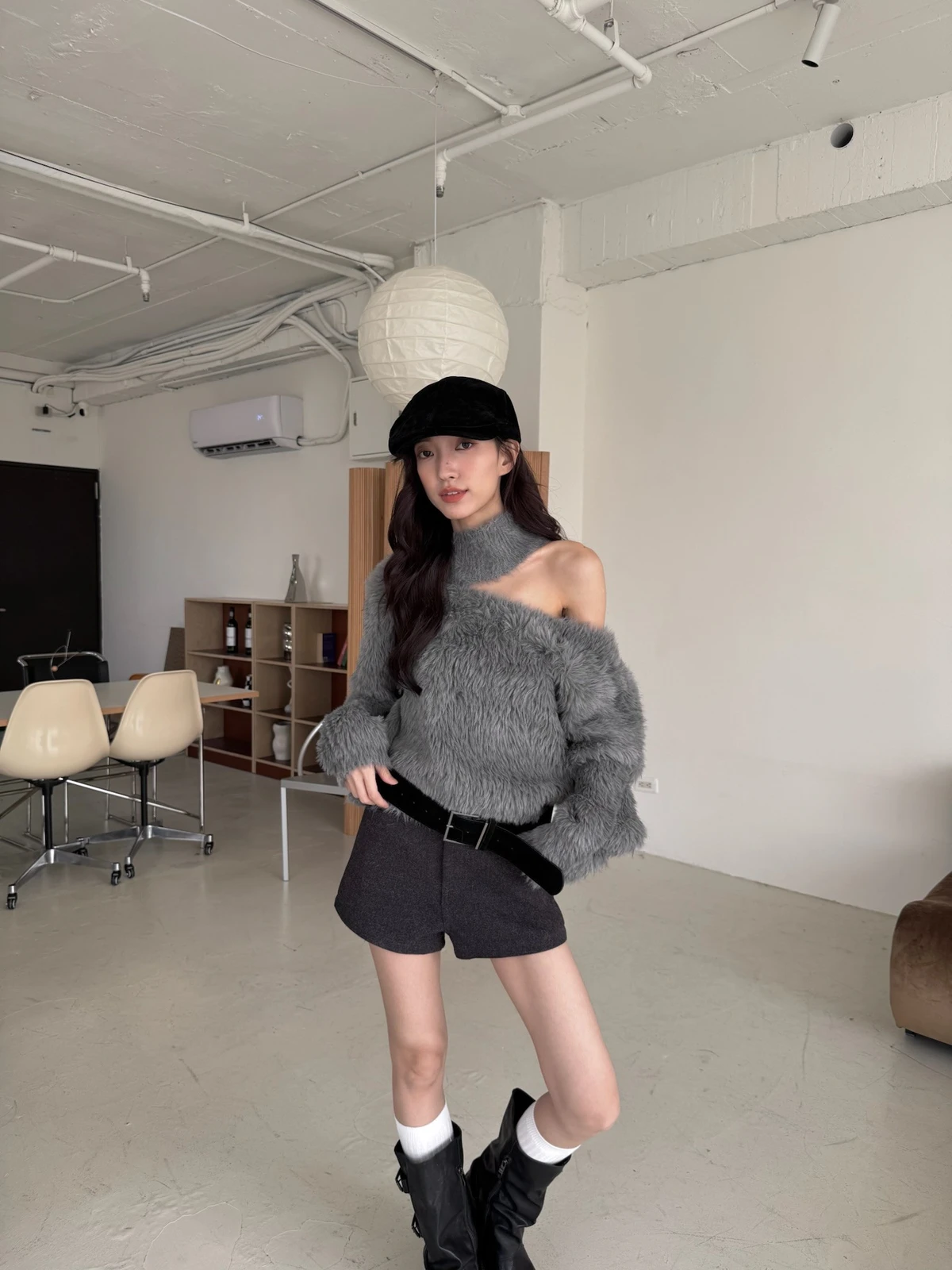 推薦!氛圍感露肩水貂毛上衣/3colors