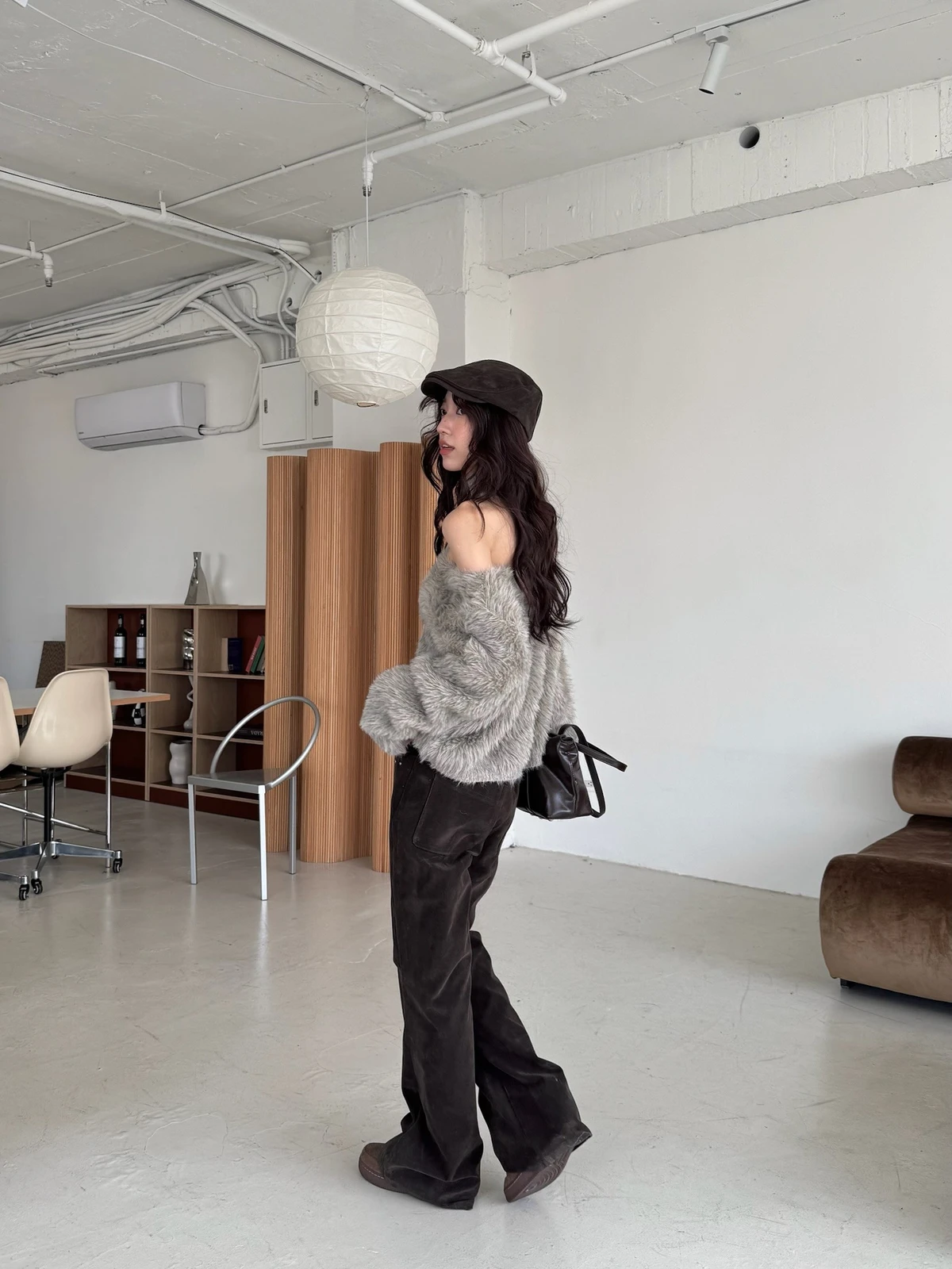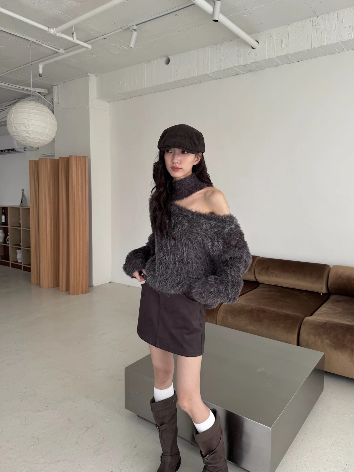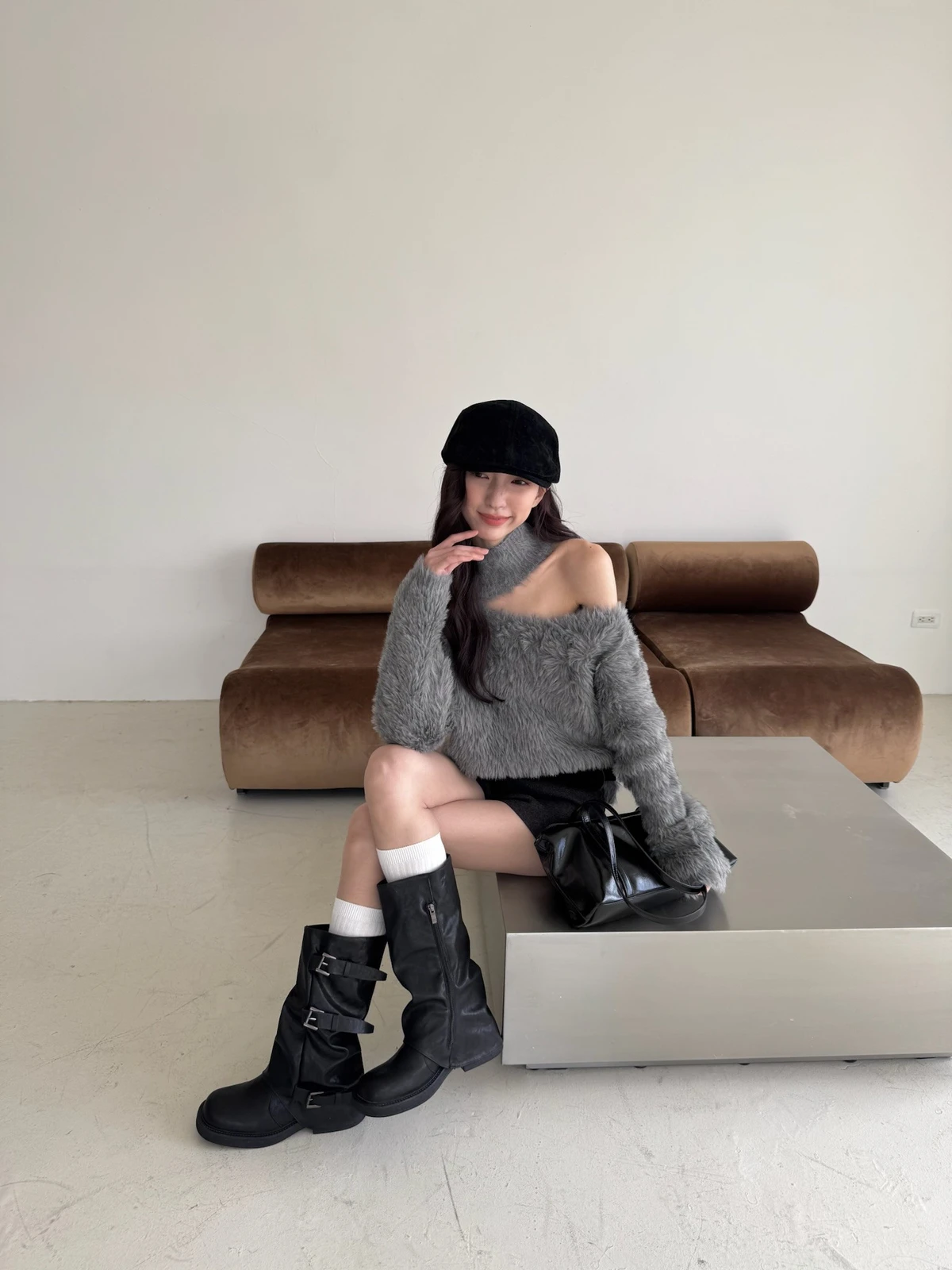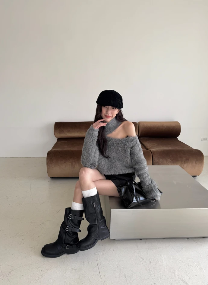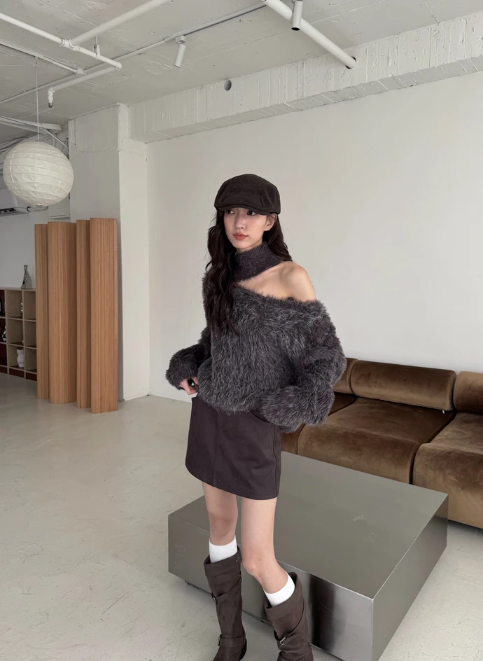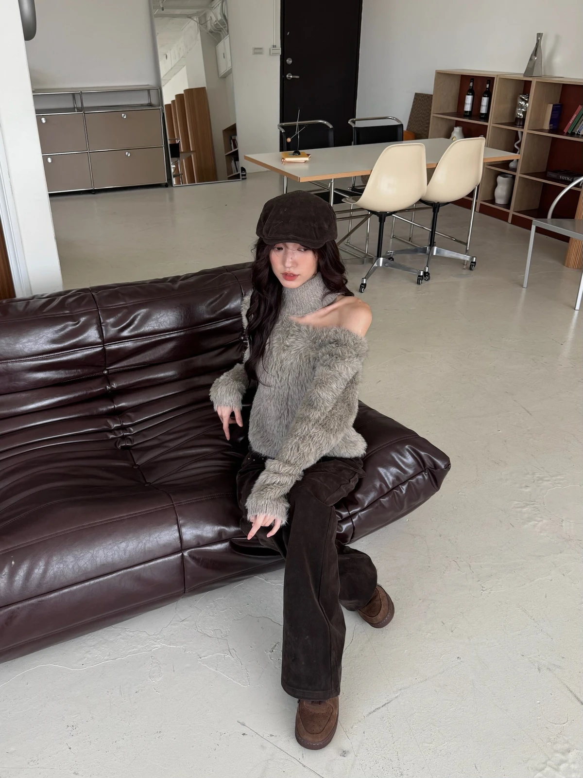 推薦!氛圍感露肩水貂毛上衣/3colors