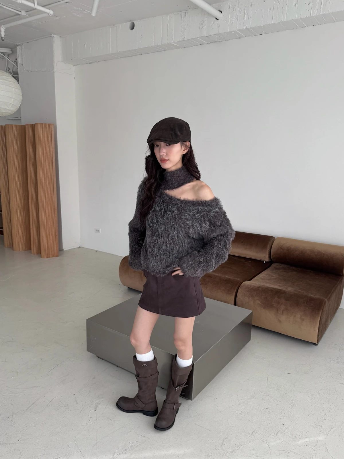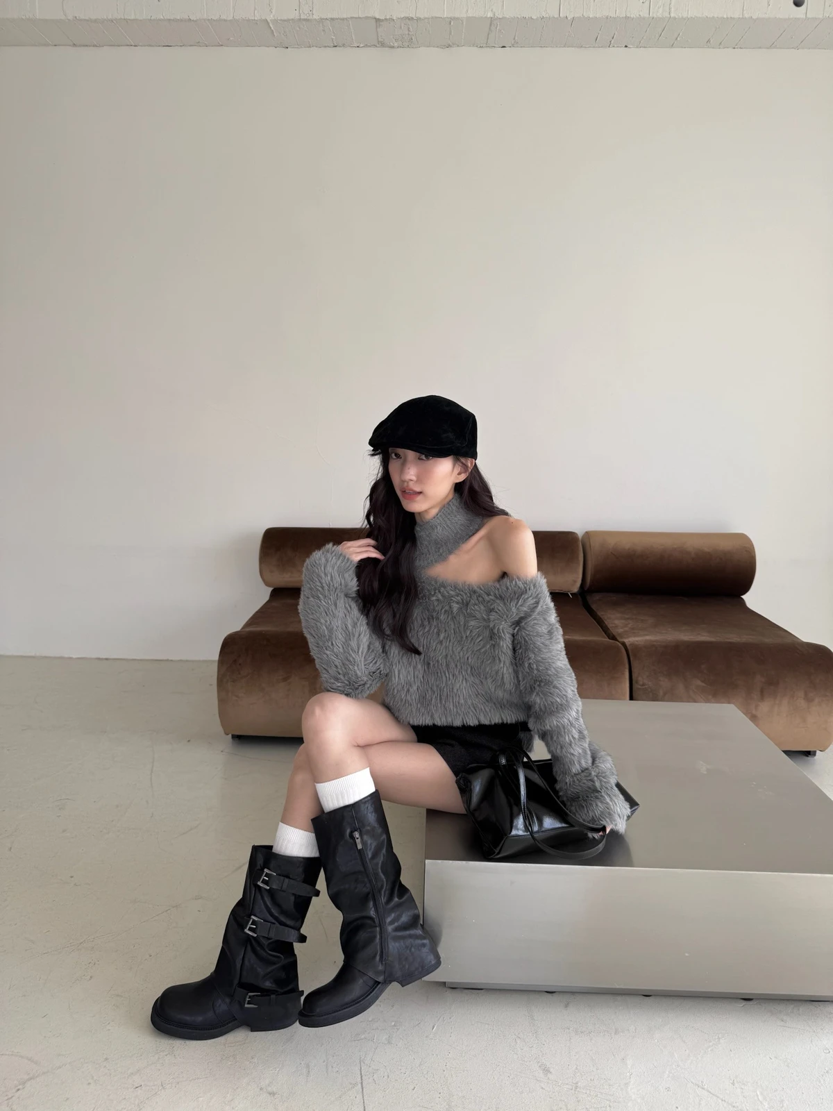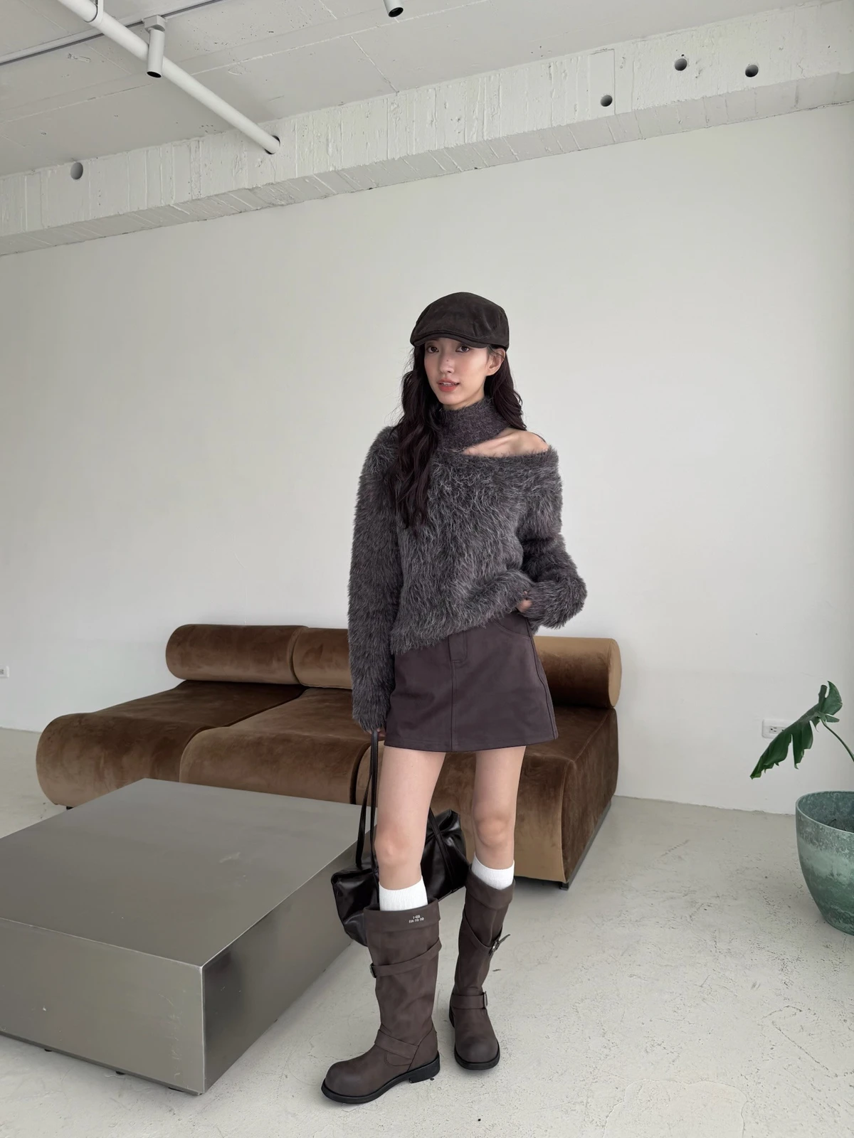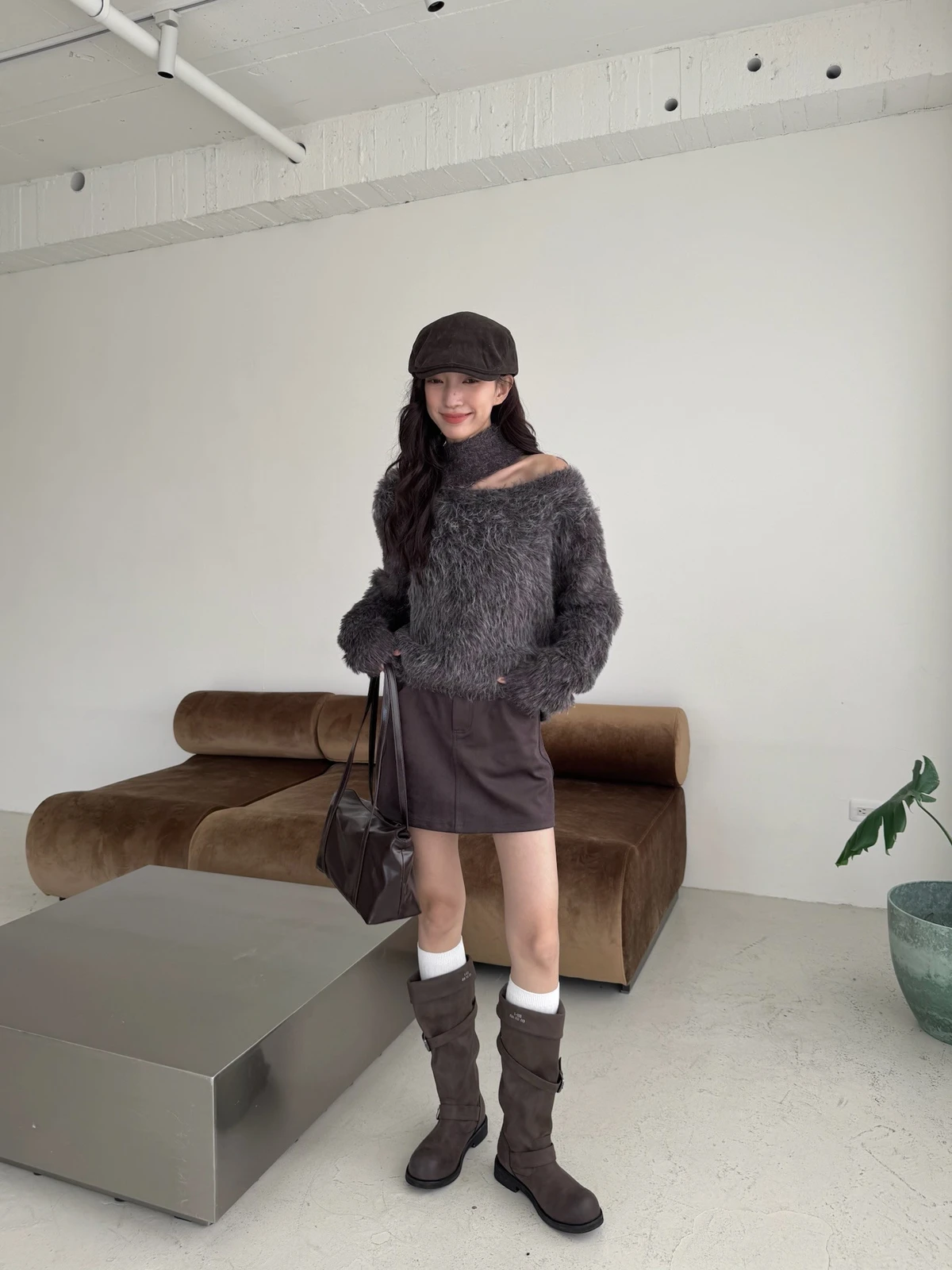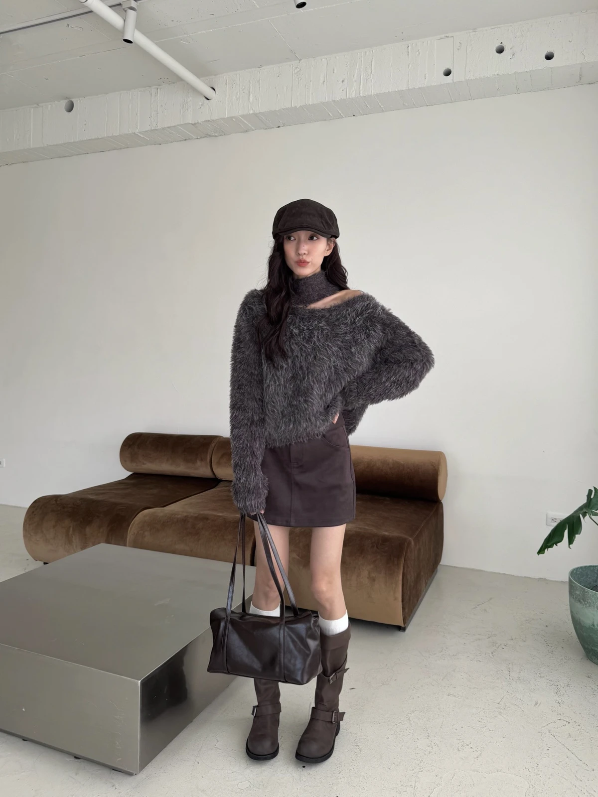 推薦!氛圍感露肩水貂毛上衣/3colors