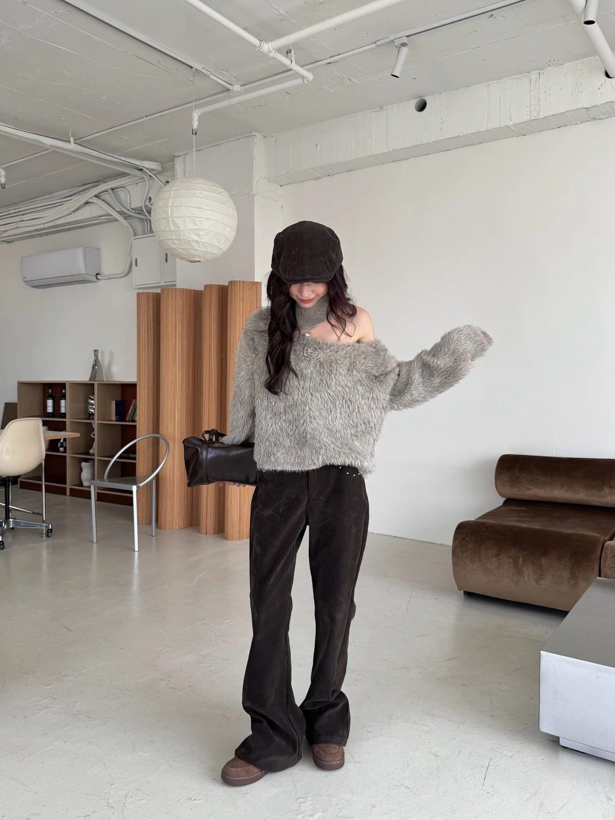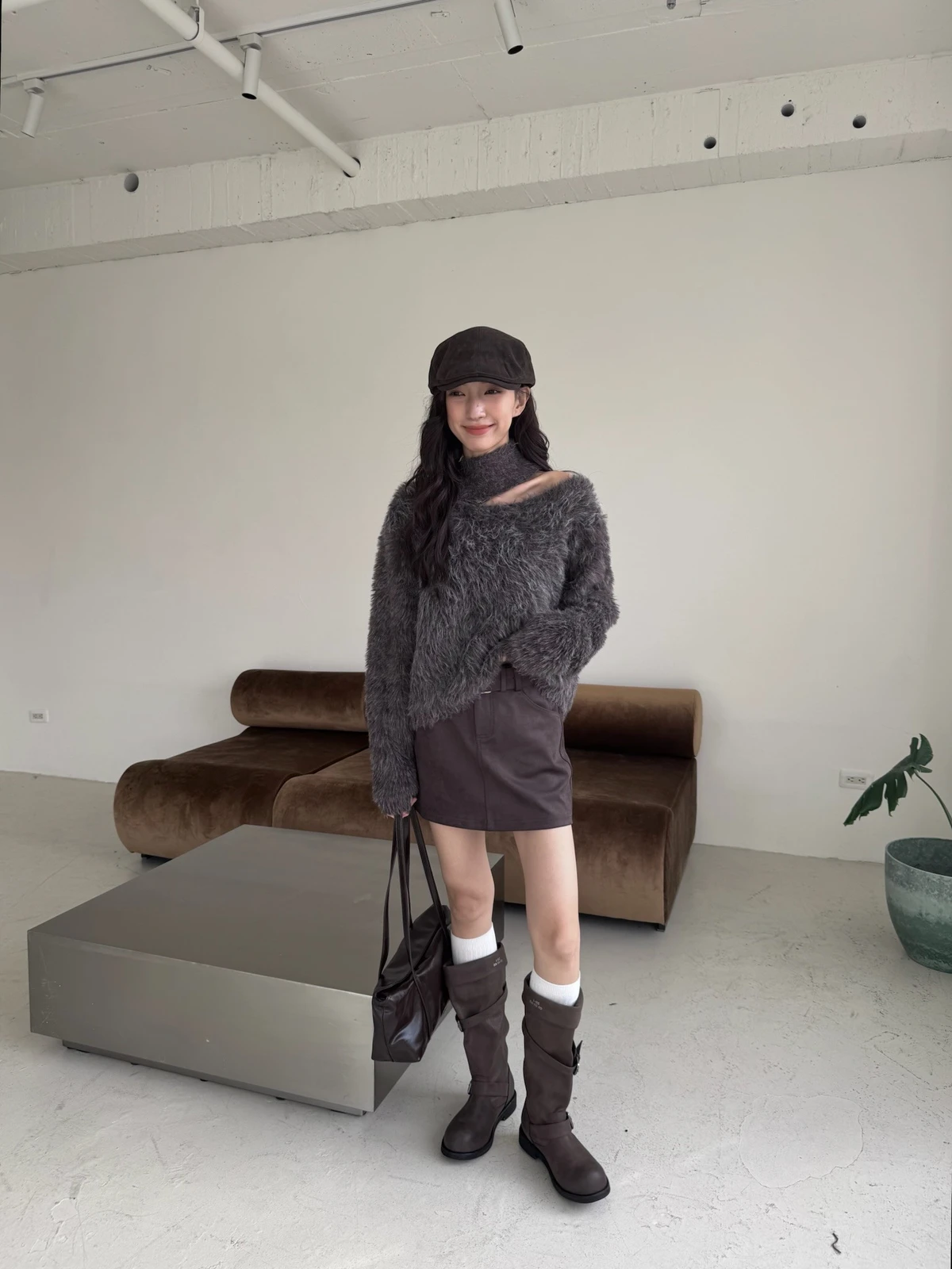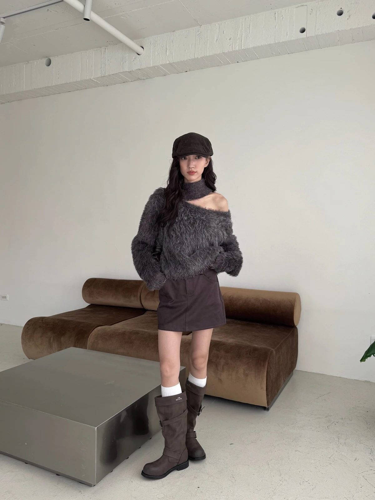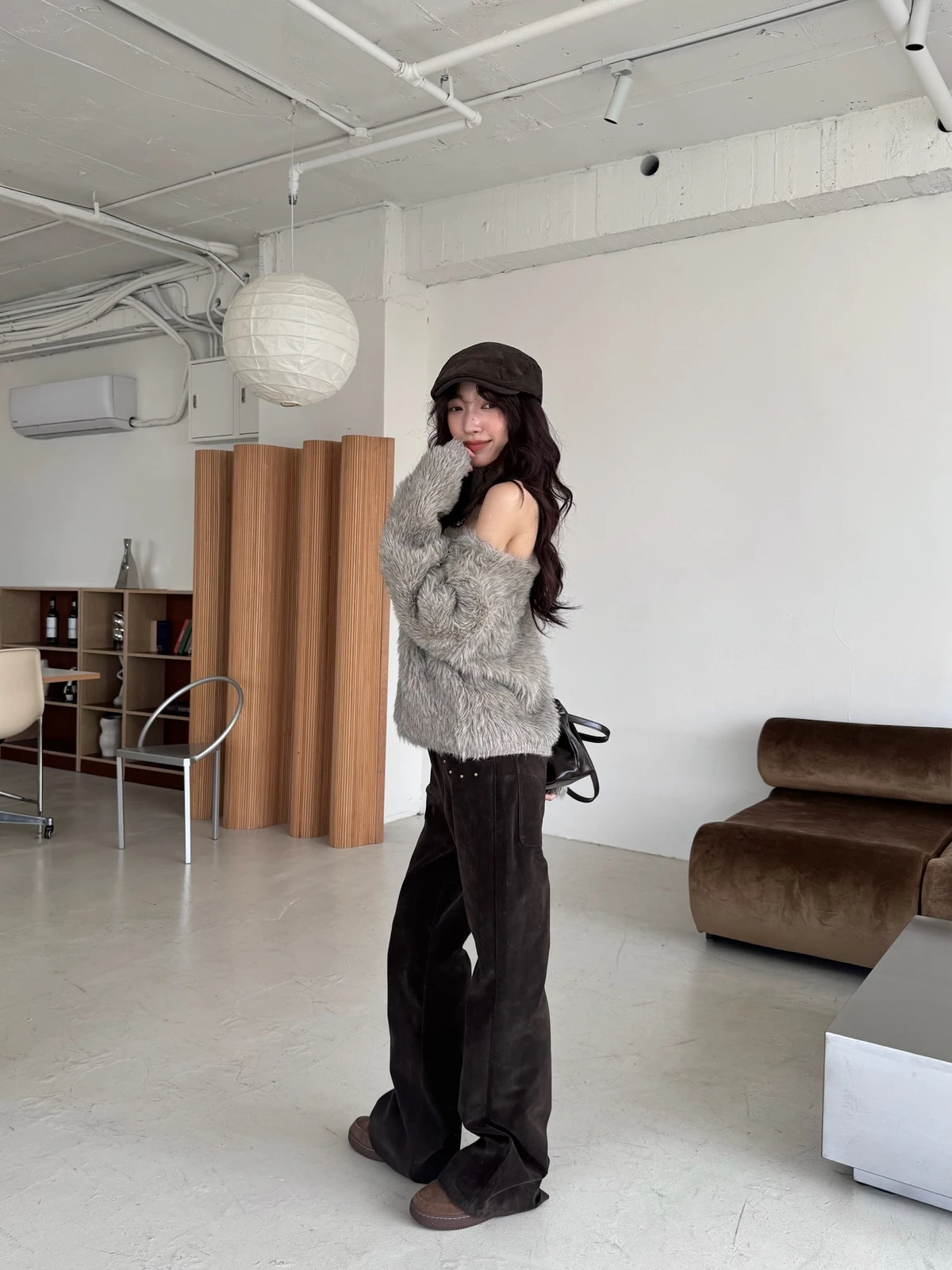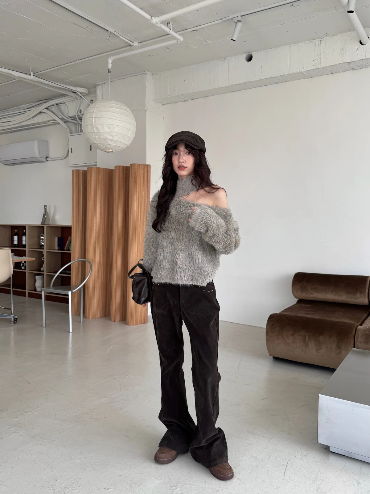 推薦!氛圍感露肩水貂毛上衣/3colors