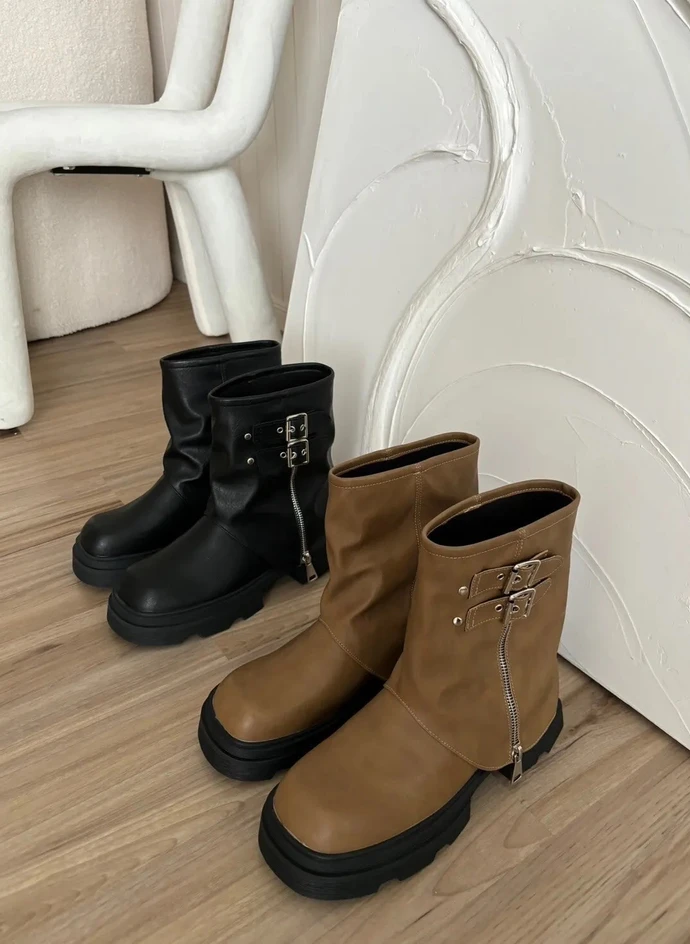 (請單獨下單)自留款推薦!秋季甜酷辣妹拉鍊騎士靴/2colors