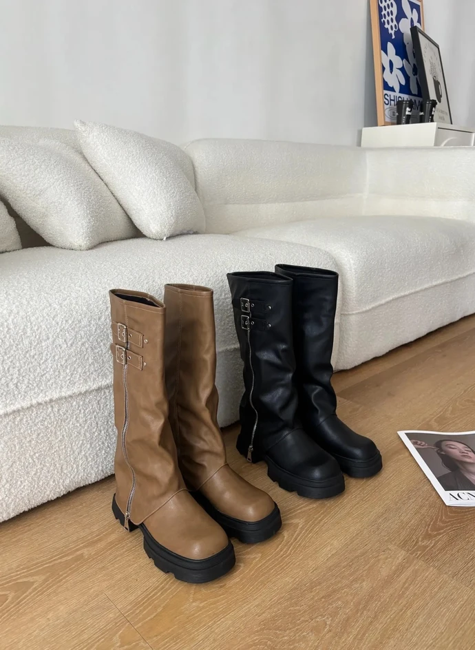 這雙是秋季甜酷辣妹拉鍊騎士靴的加長版